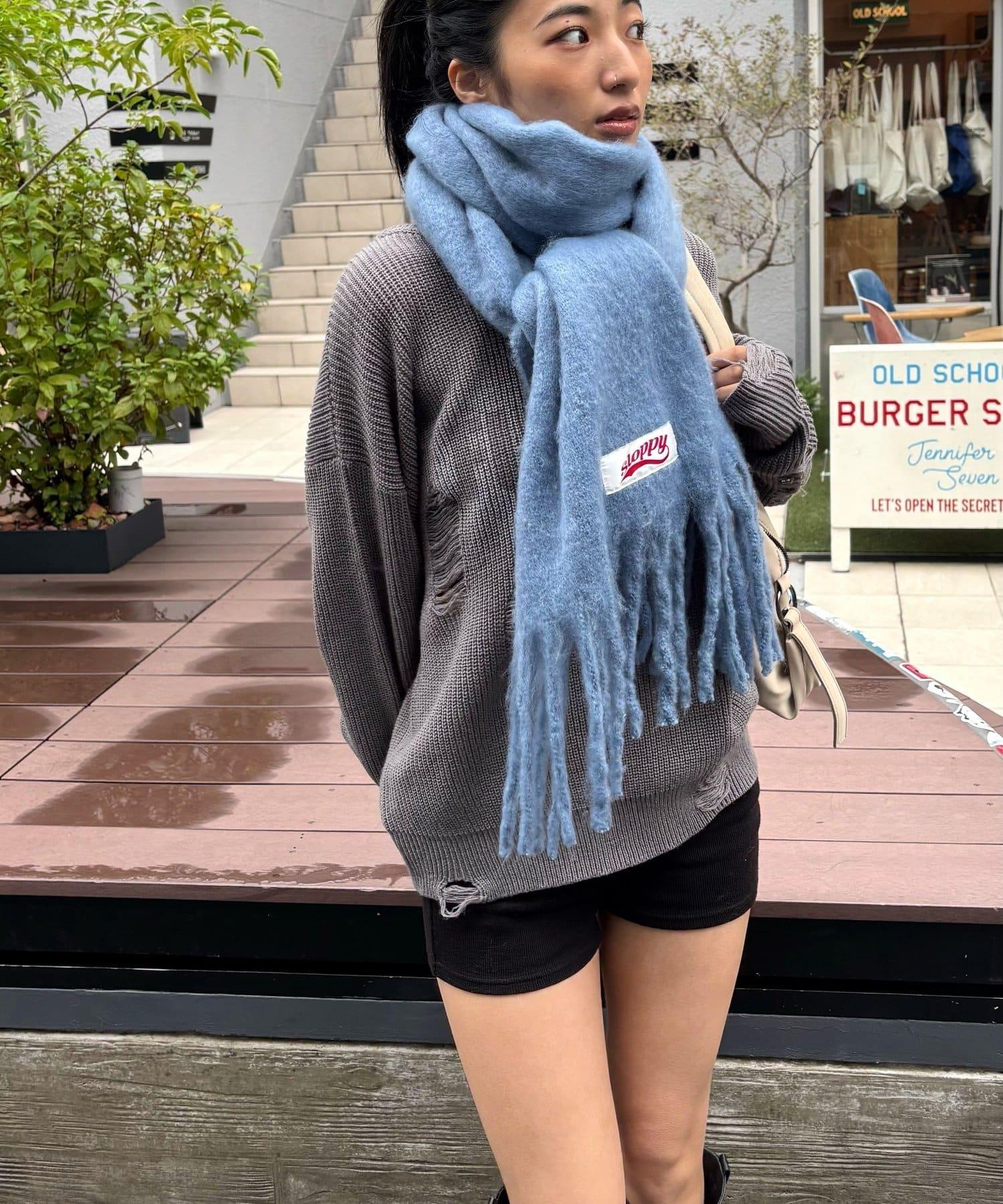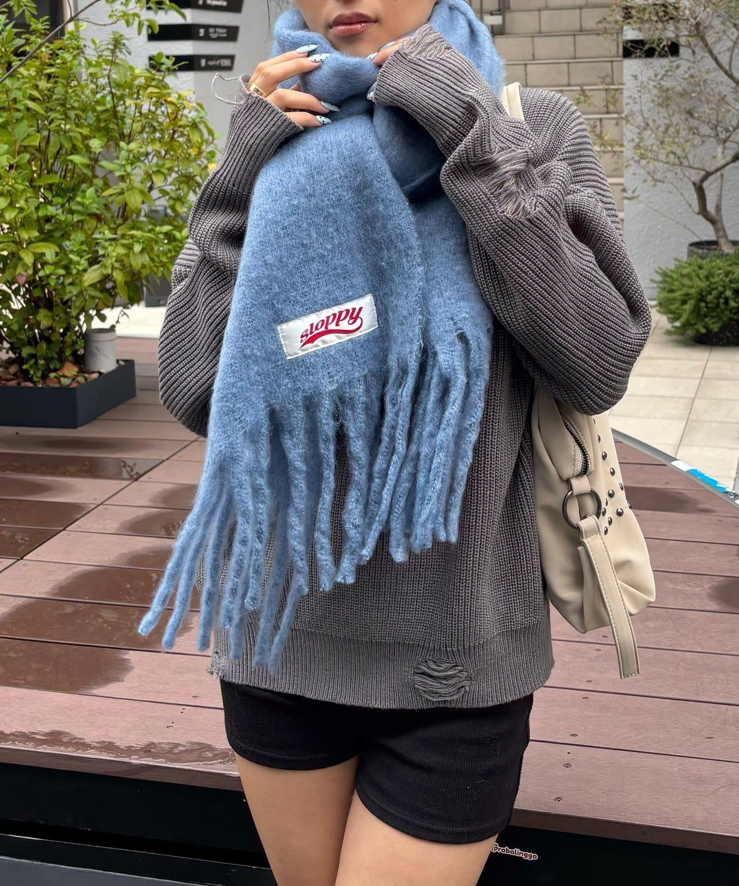 SLOPPY 的名稱標籤是這條圍巾上的點睛之筆。