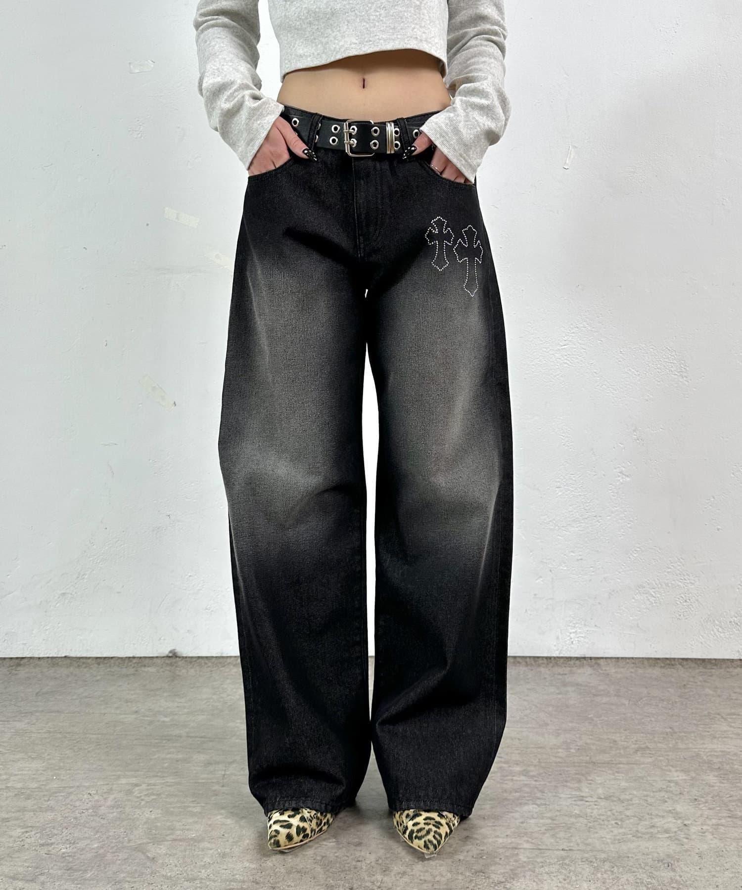 牛仔褲的正面和背面都鑲有水鑽,給人一種少女的感覺。