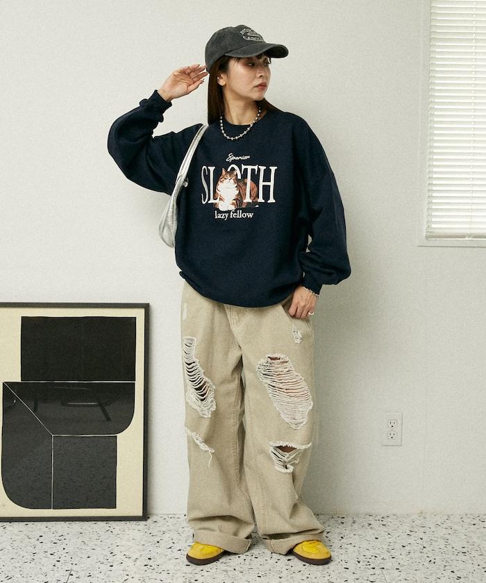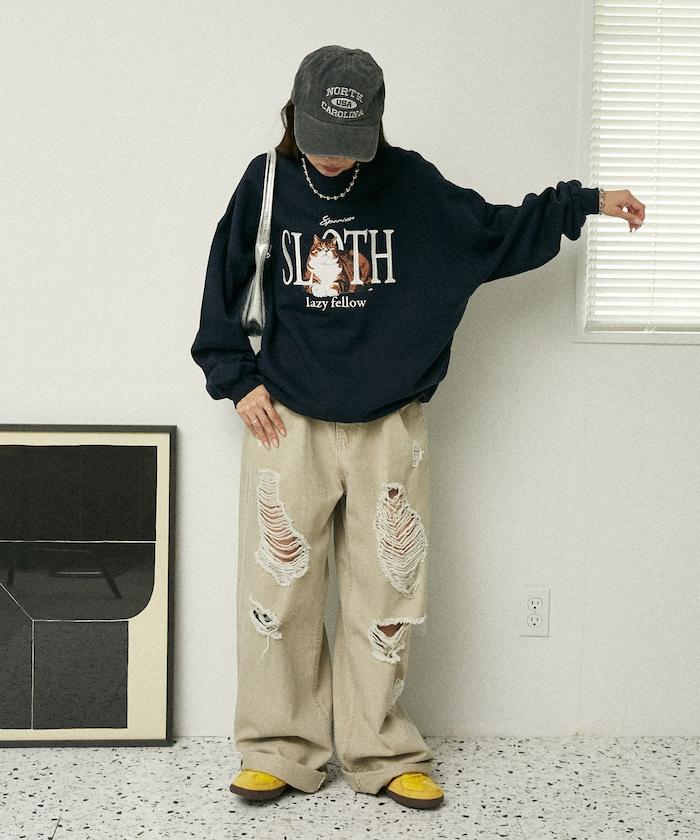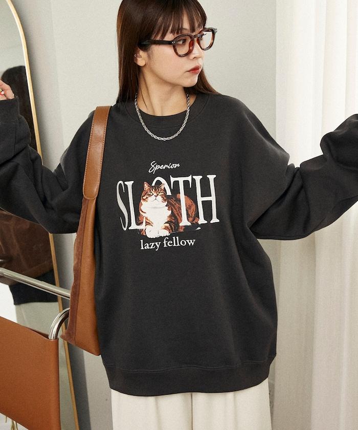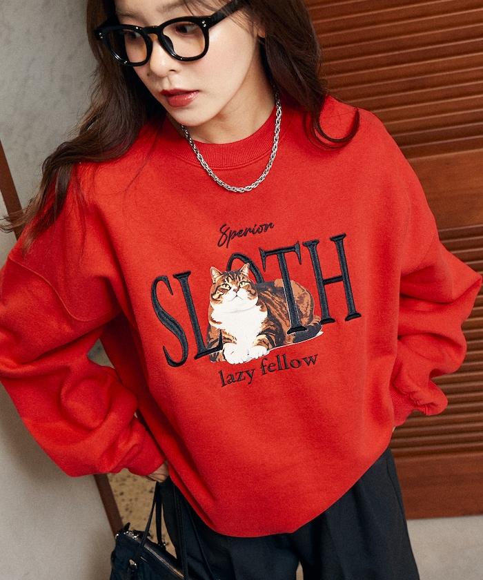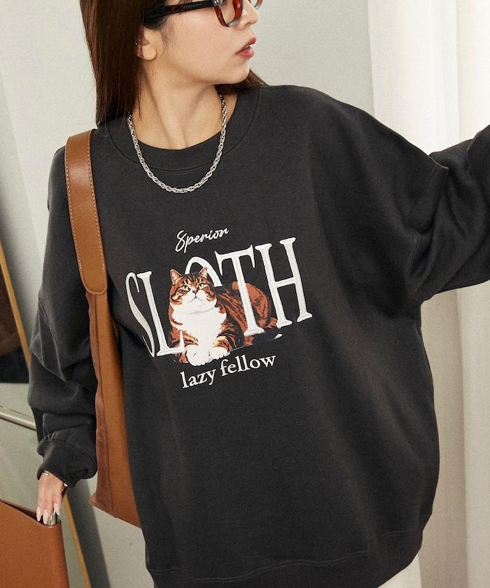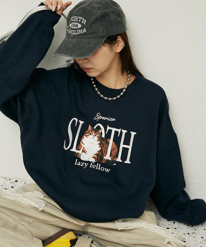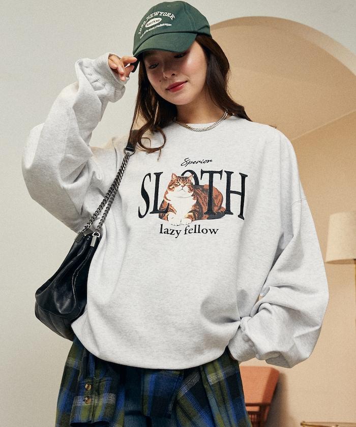 SLOTH 貓圖案加絨衛衣