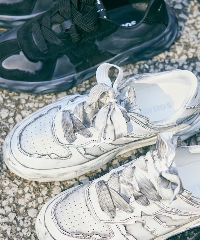 鞋面的獨特紋理是通過噴塗工藝模仿自然界的土壤和岩石表面而形成的。