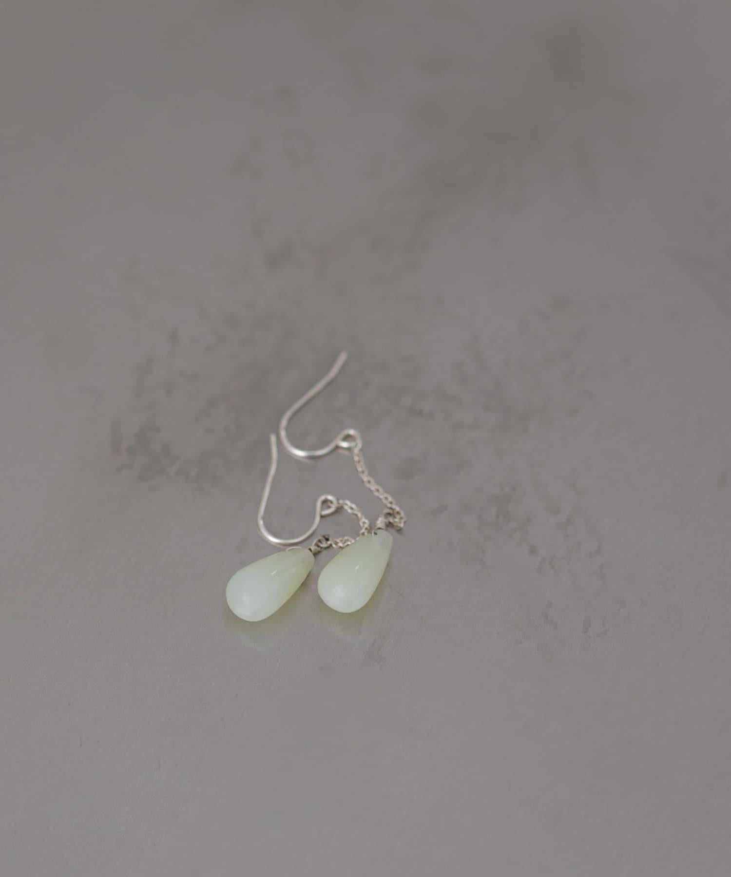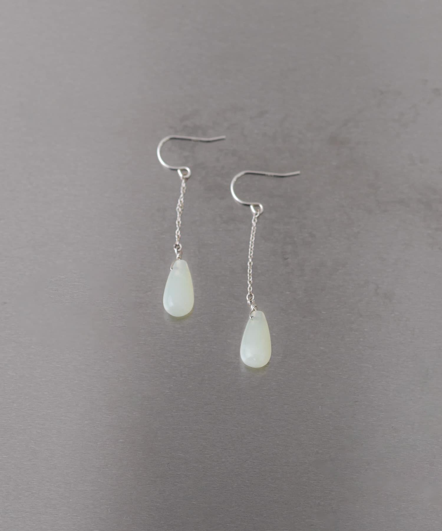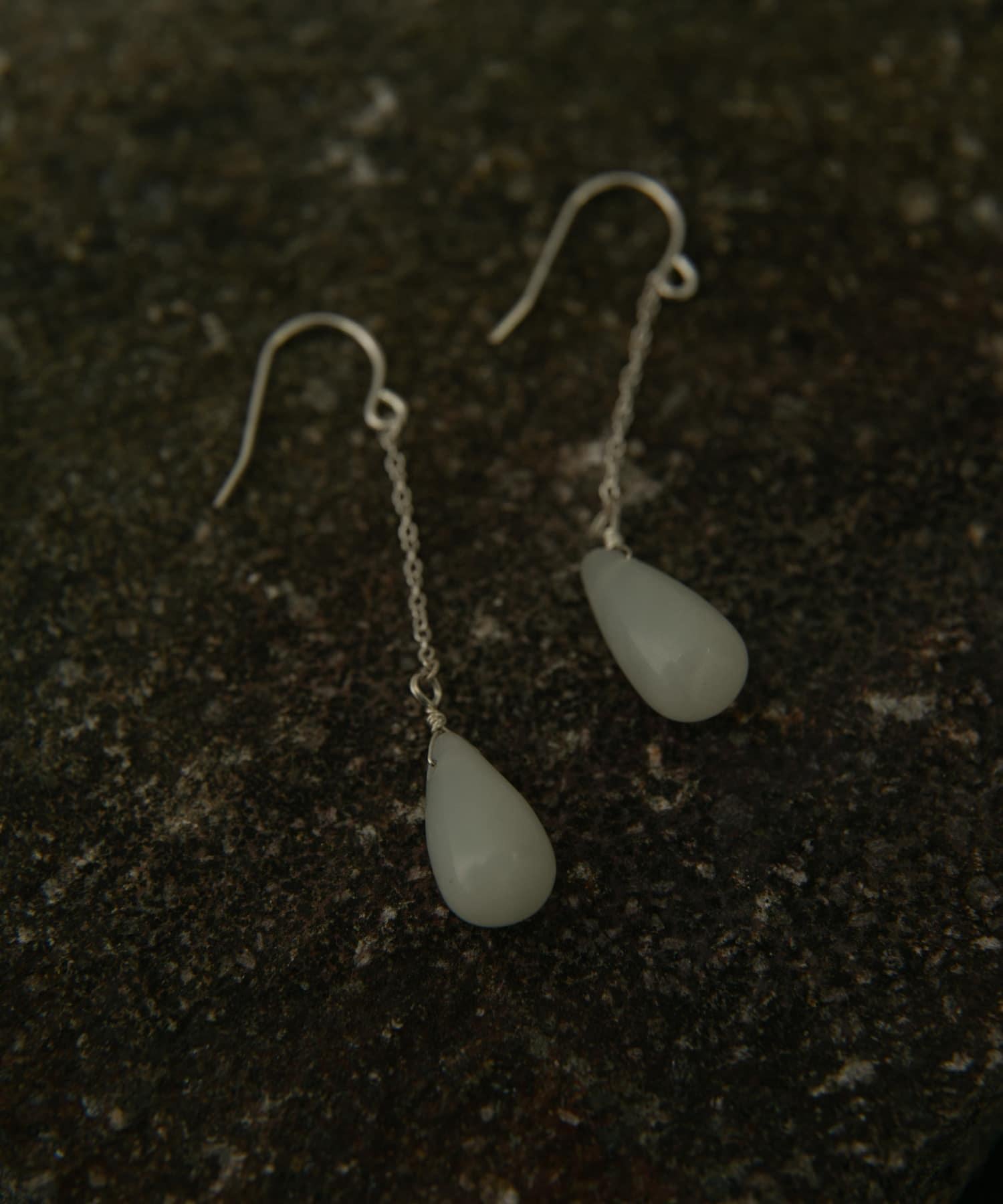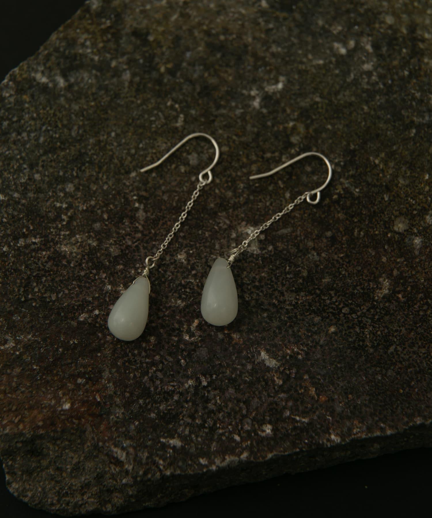 這款長耳環的特色是引人注目的水滴形新玉。
