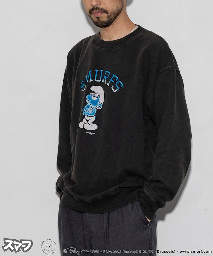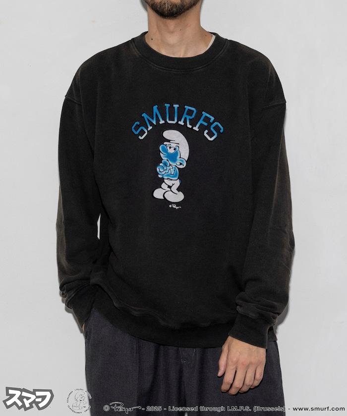 圓領運動衫,正面印有標誌性的藍精靈圖案。
