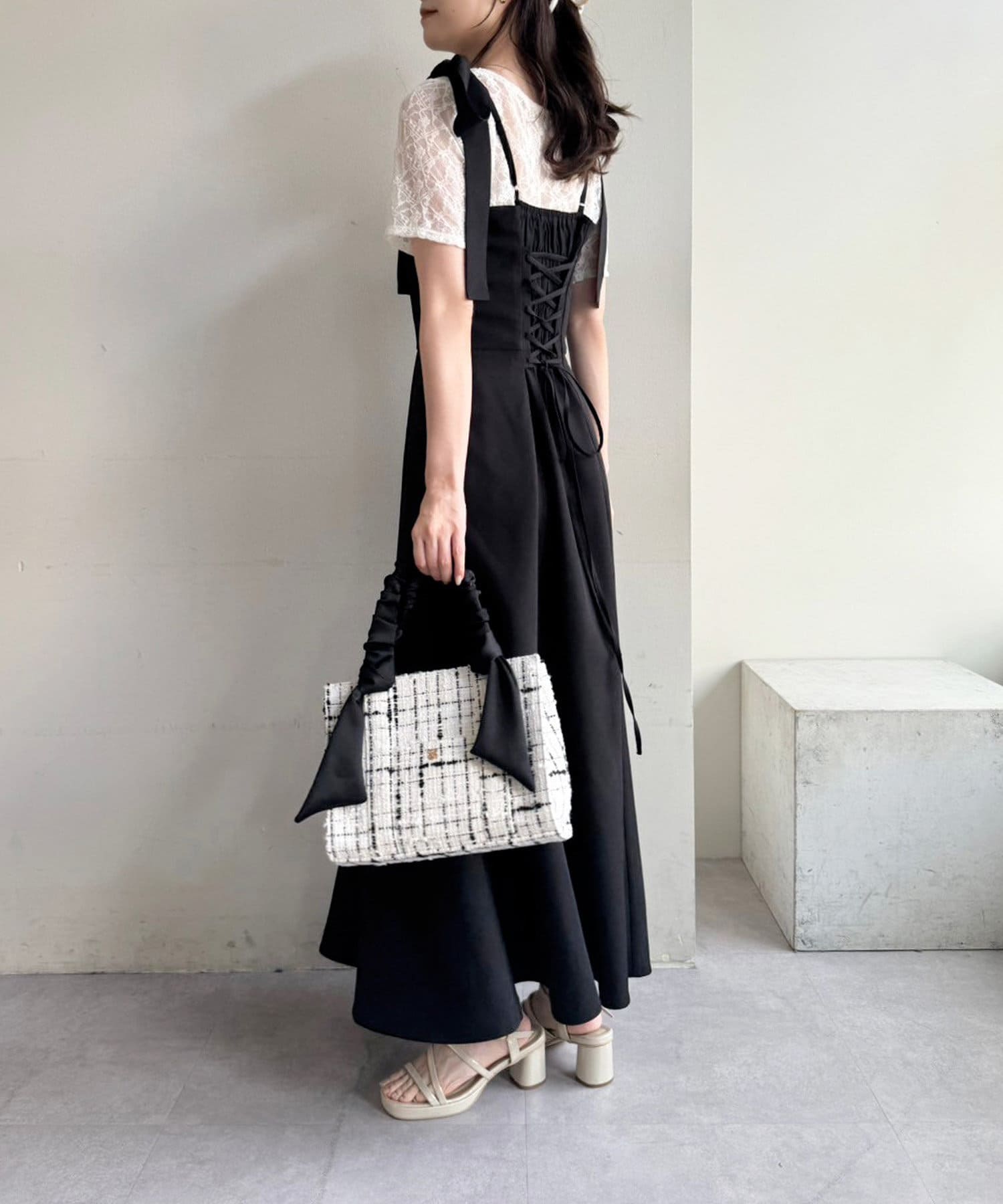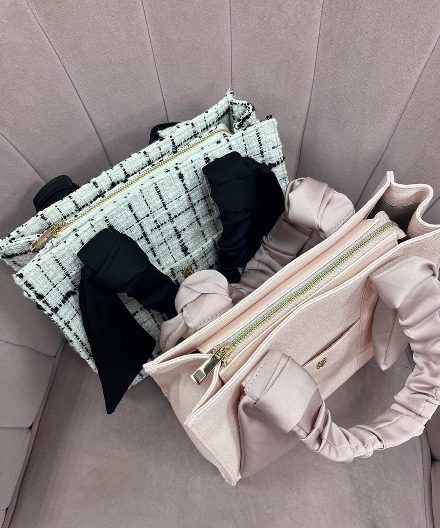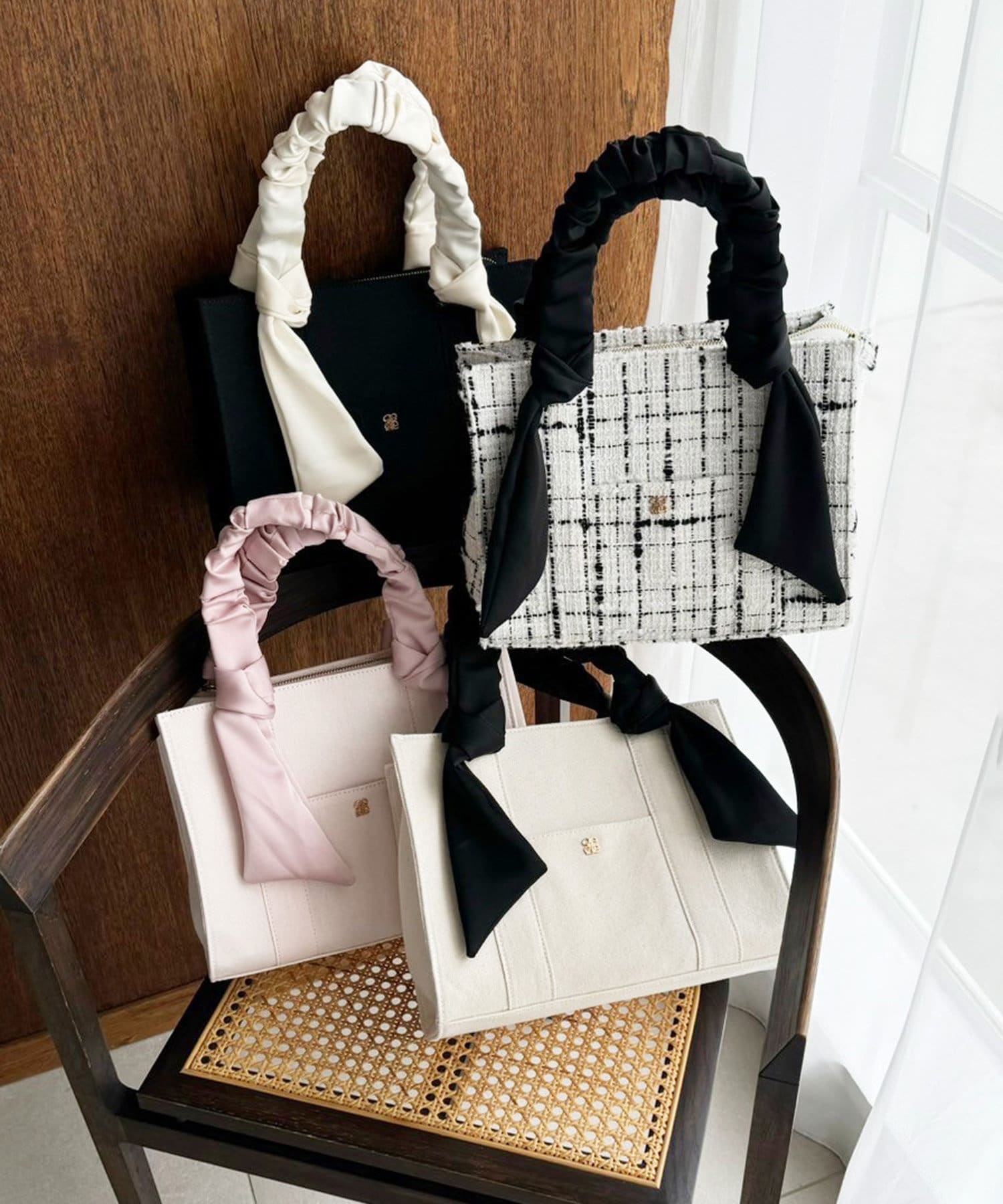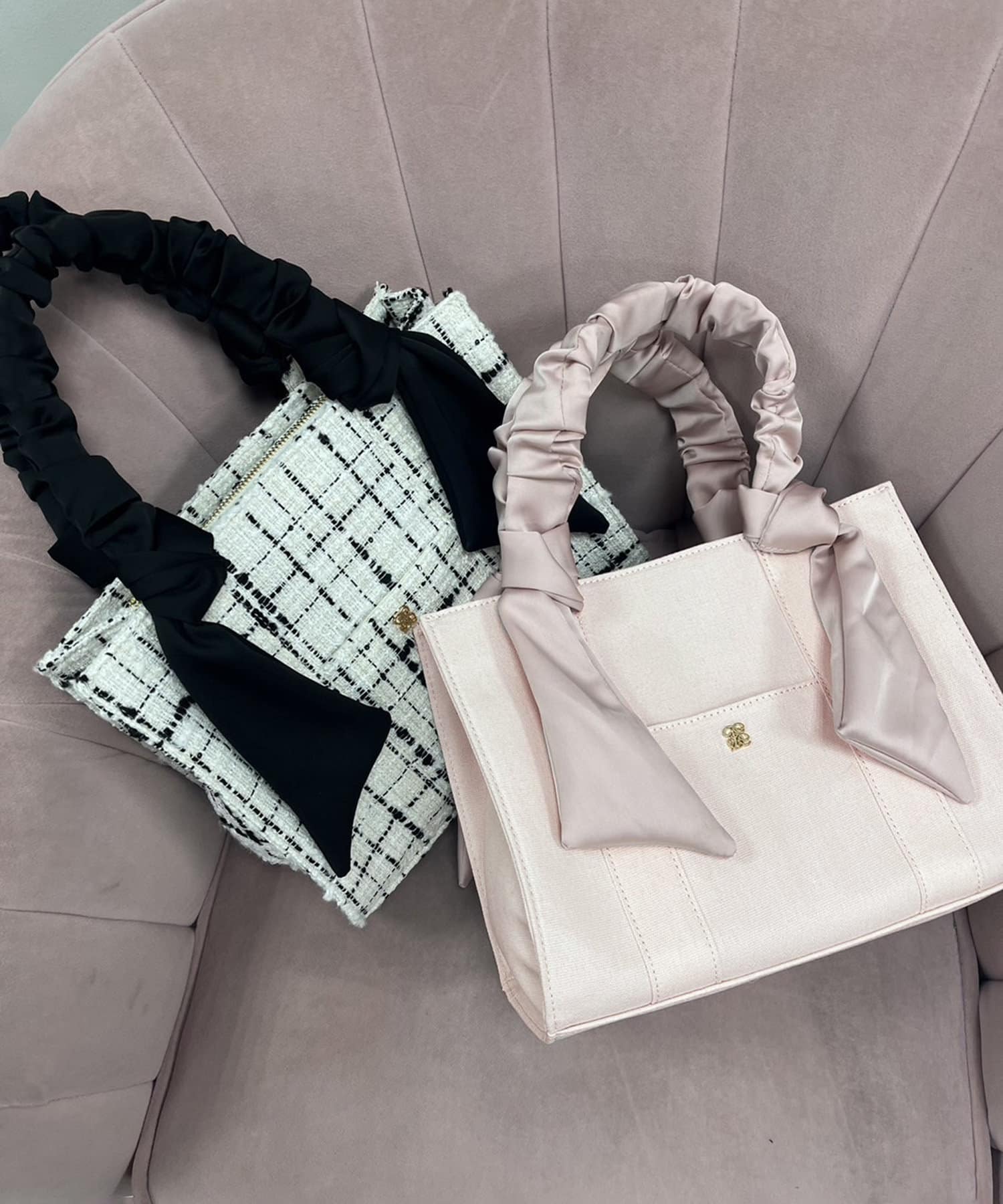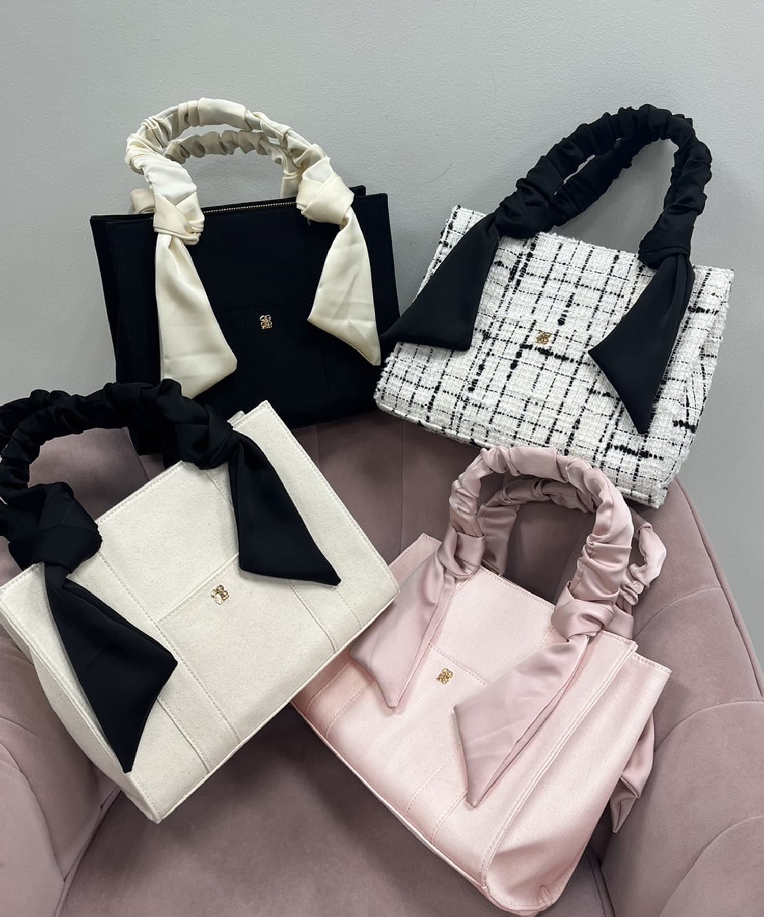 手提包,配有聚攏手柄和大絲帶。
