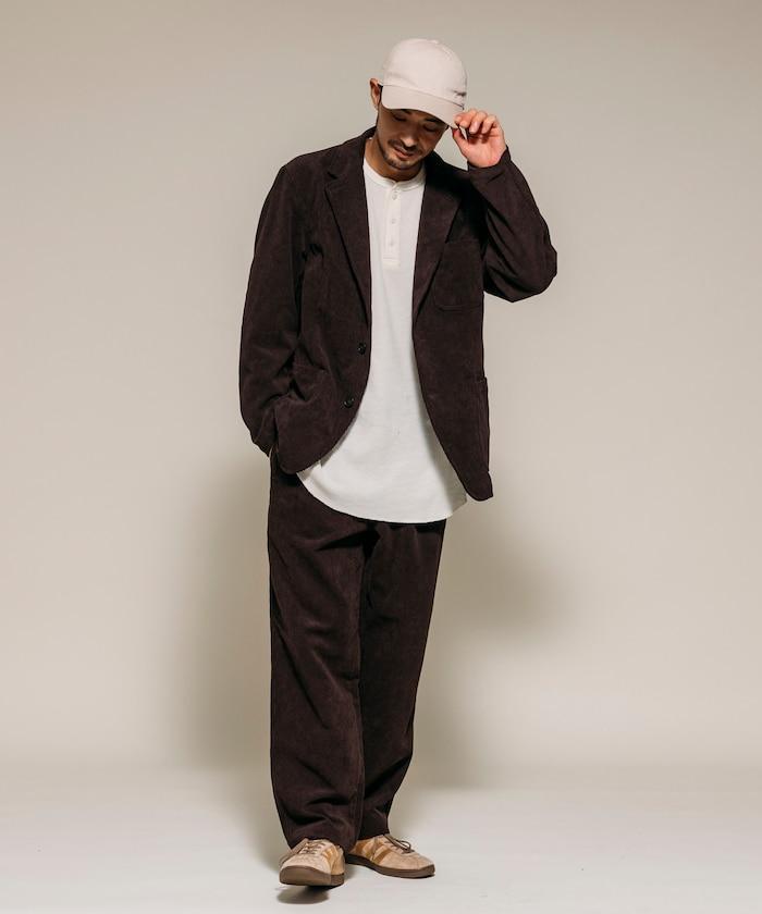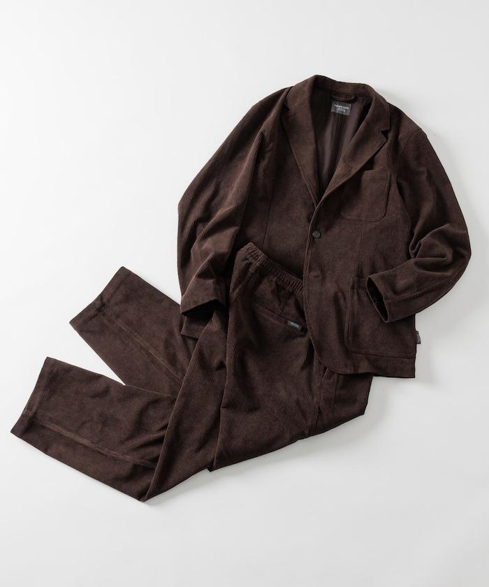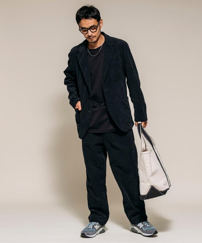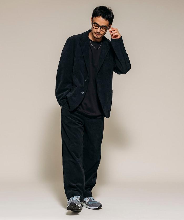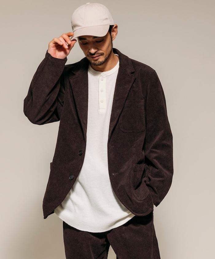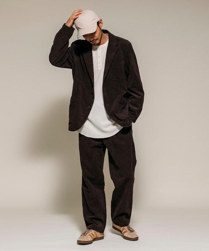 由 2B 夾克和燈芯絨長褲組成,基本款式,剪裁簡潔。