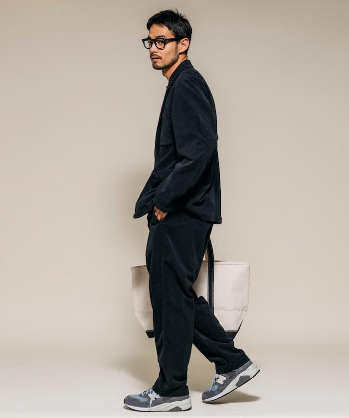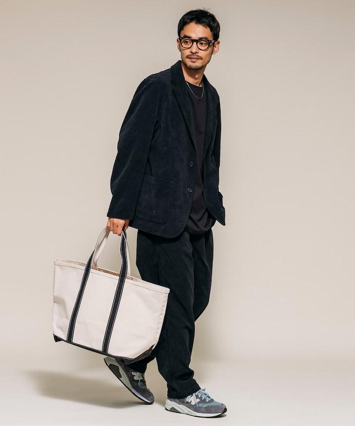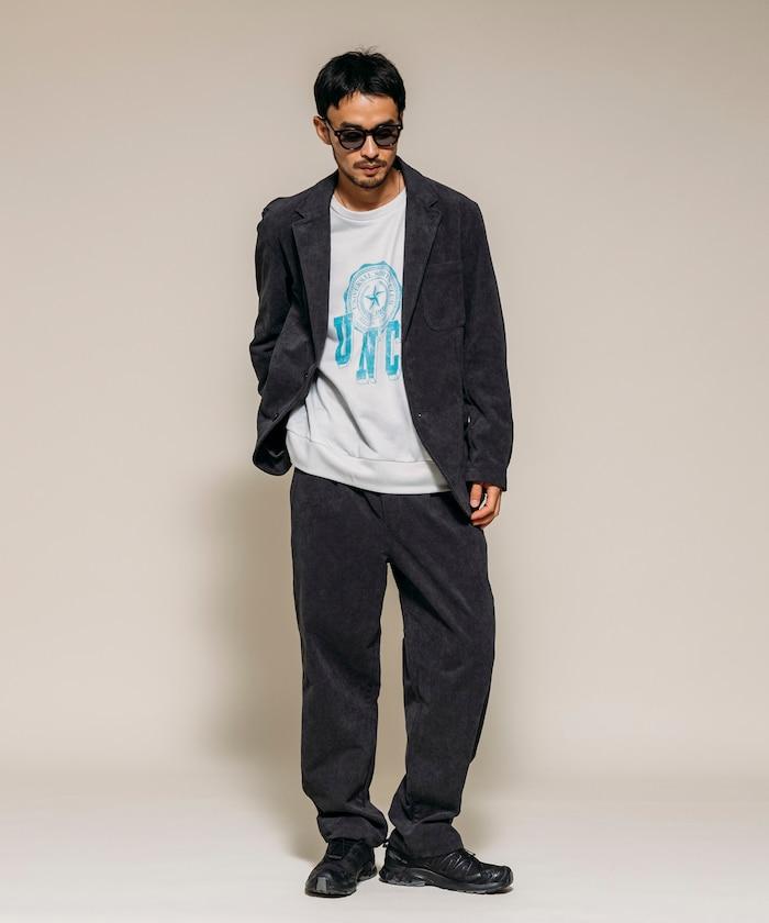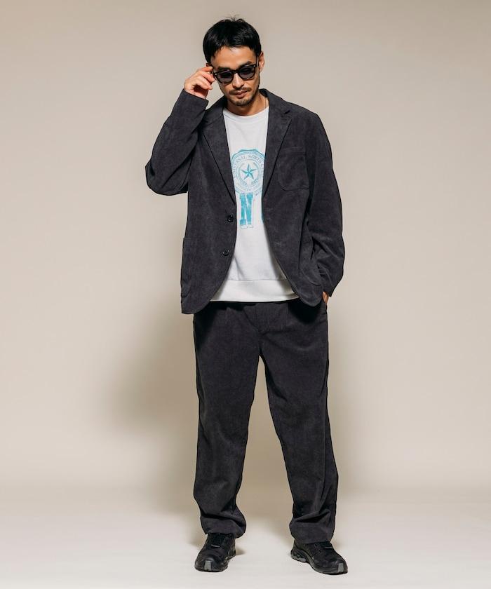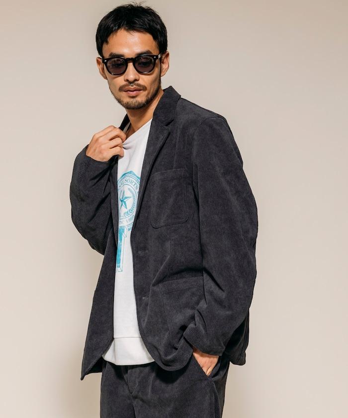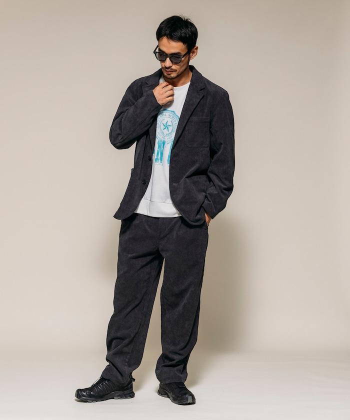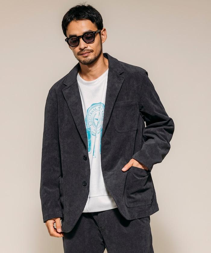 由 2B 夾克和燈芯絨長褲組成,基本款式,剪裁簡潔。