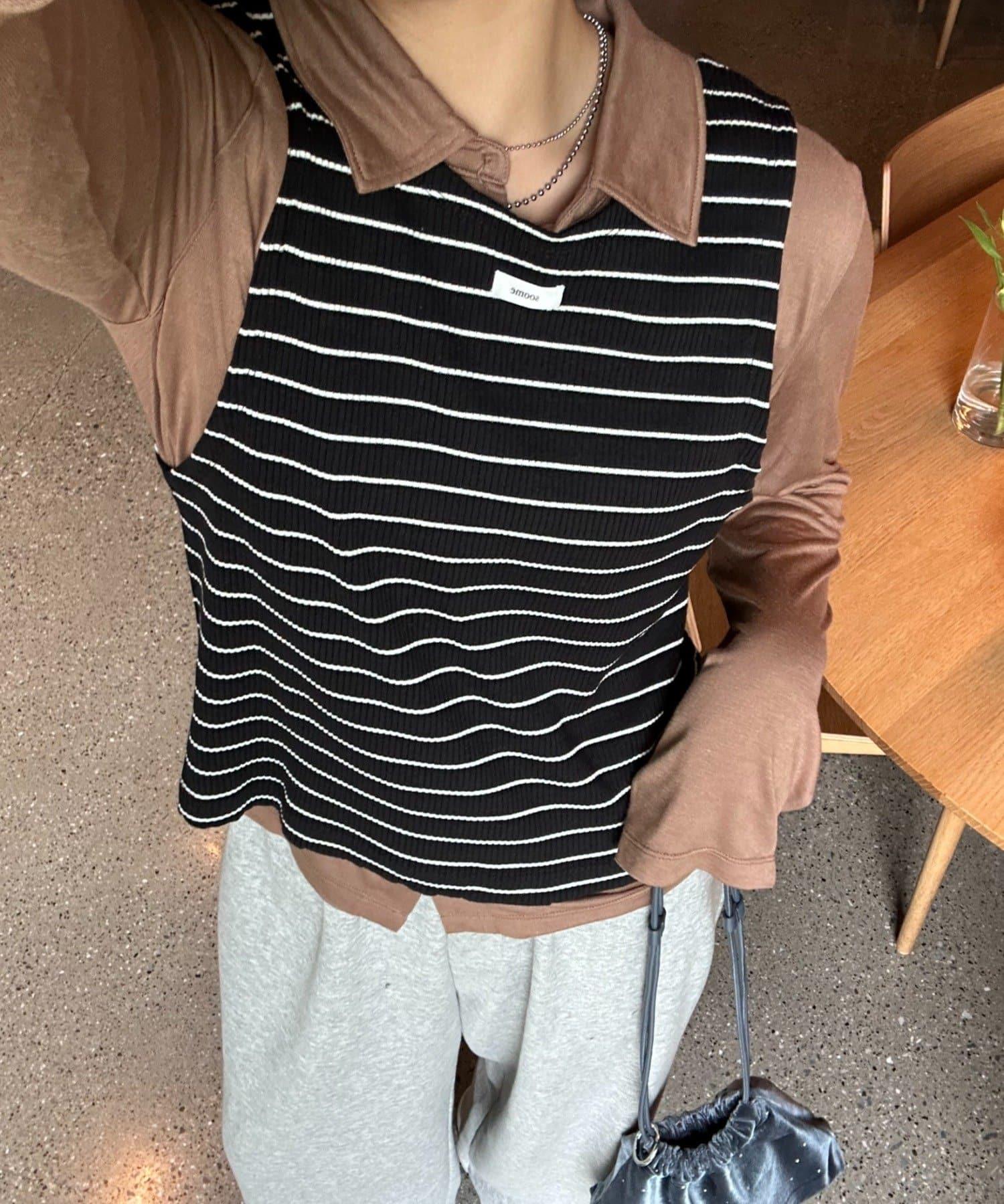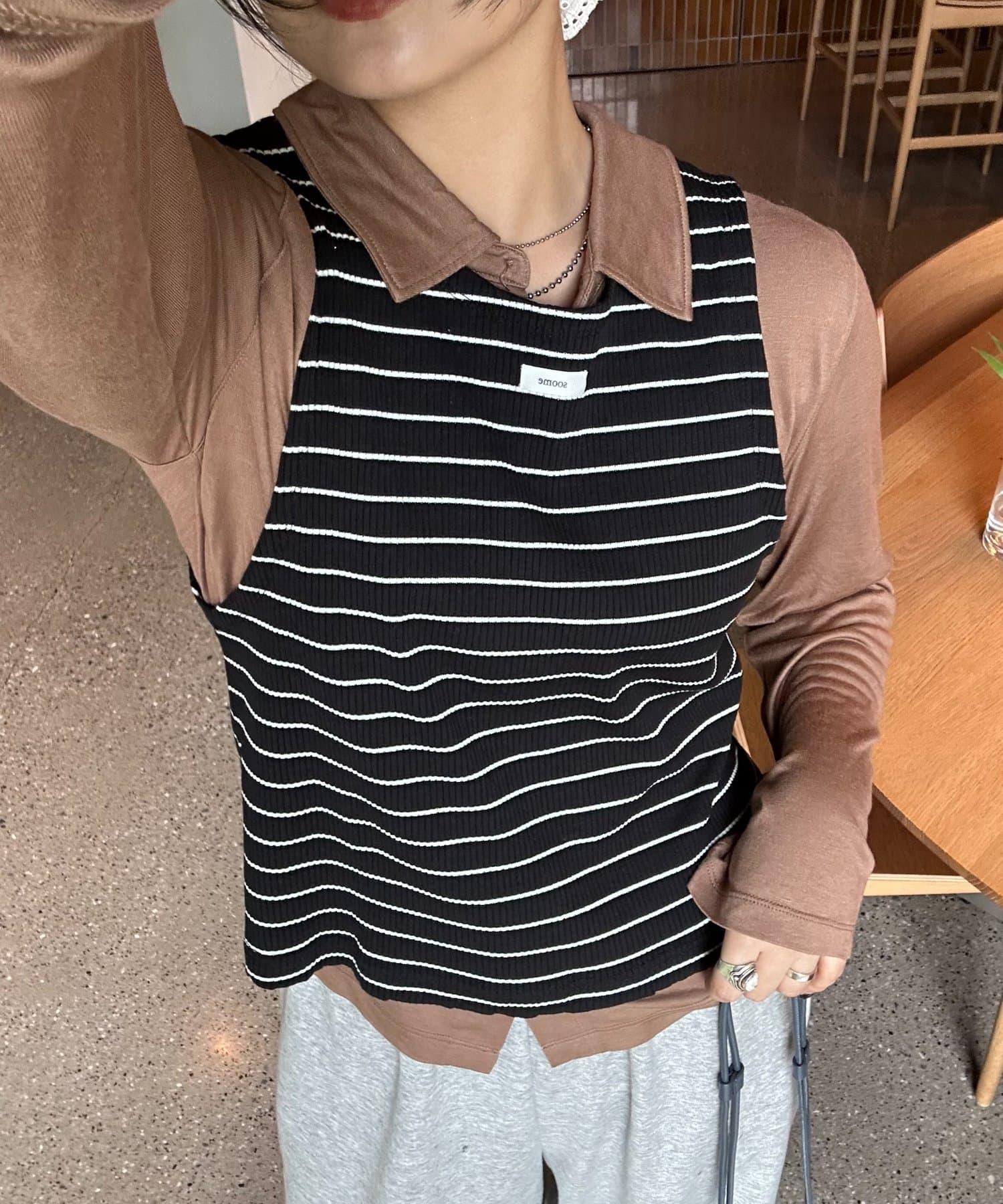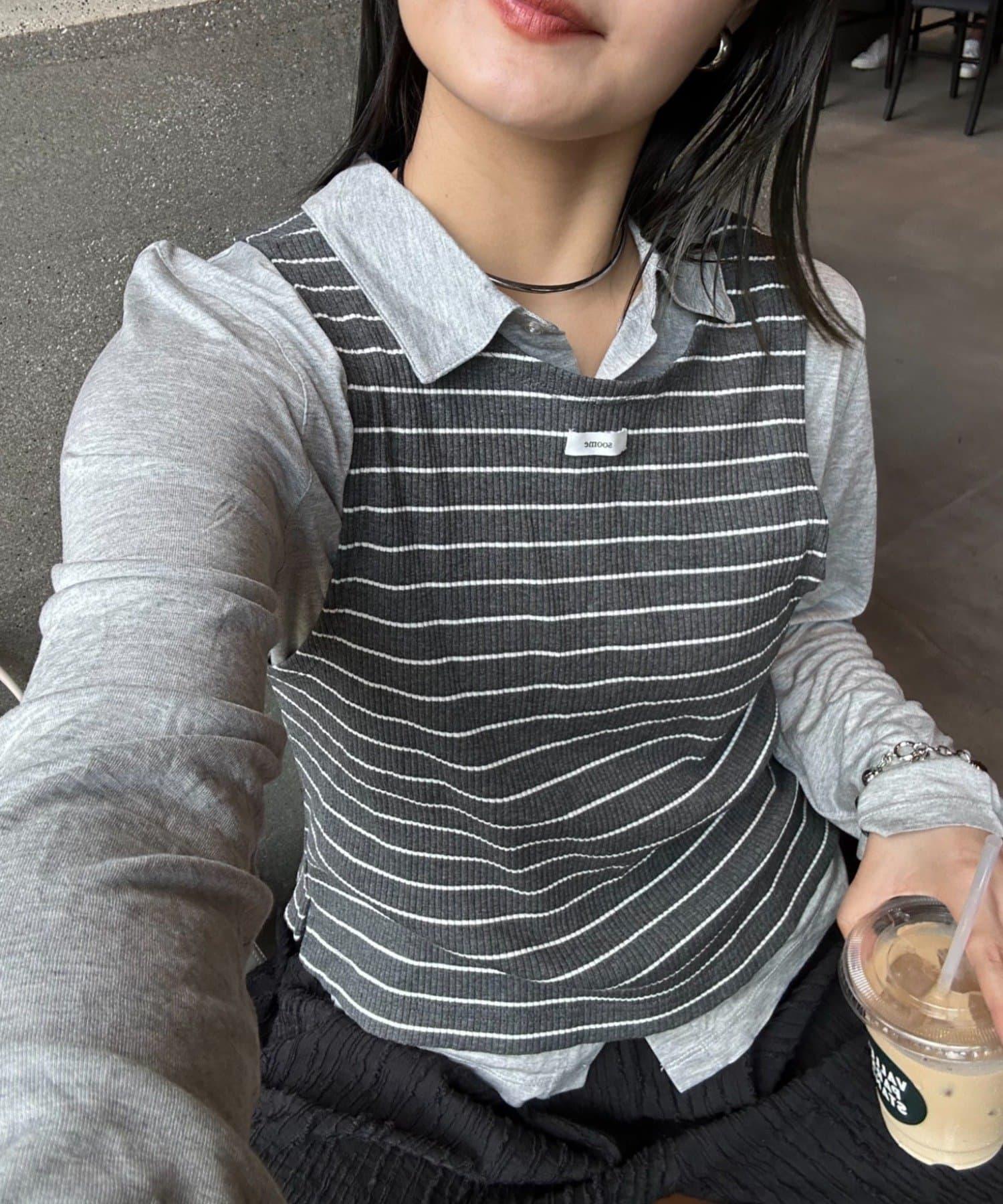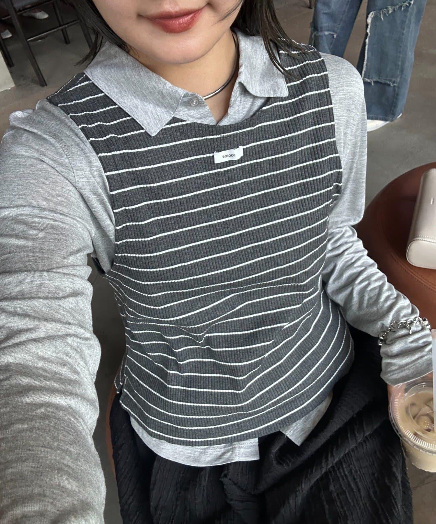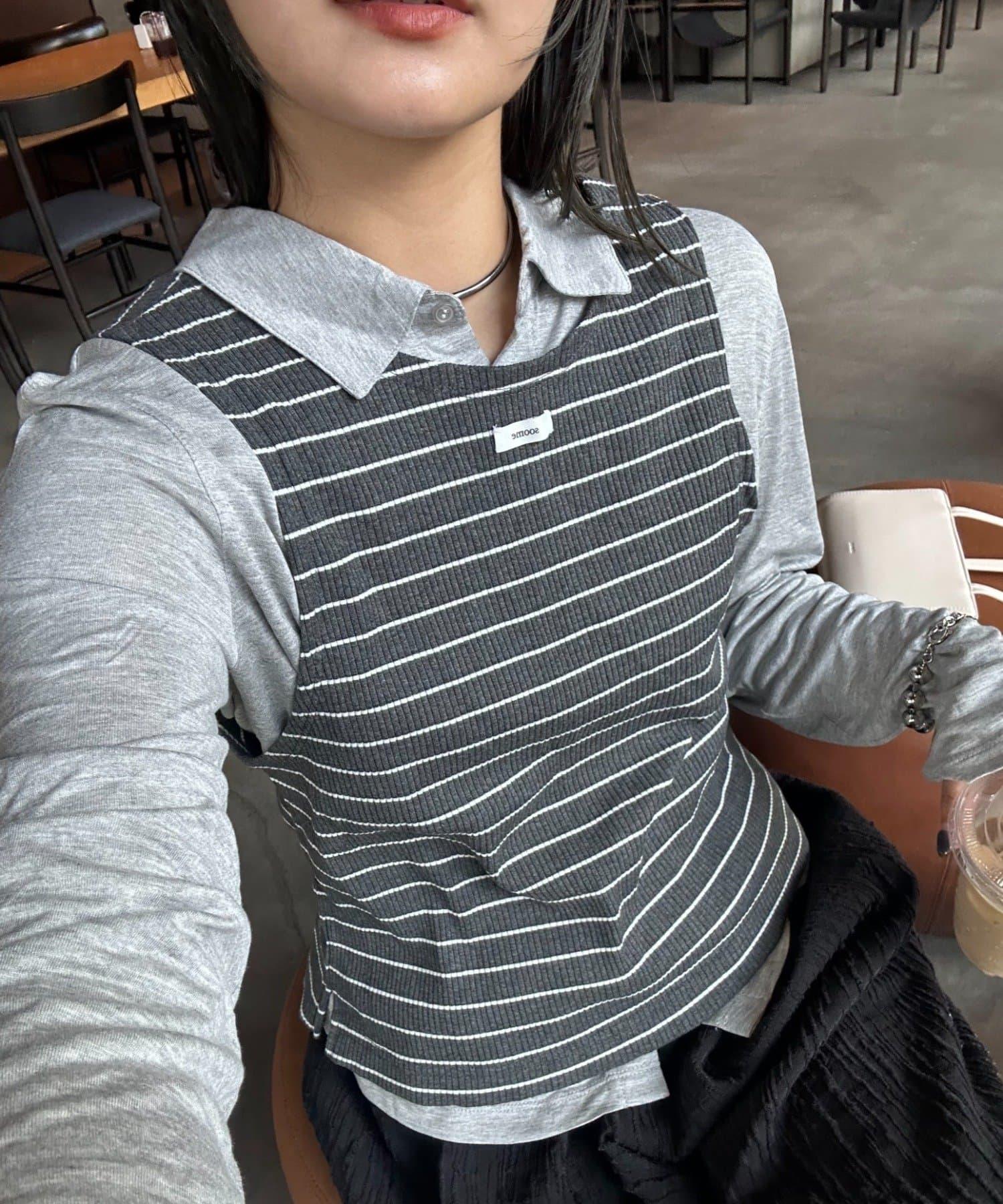 【soome韓國企劃】條紋層疊領口透視剪裁襯衫