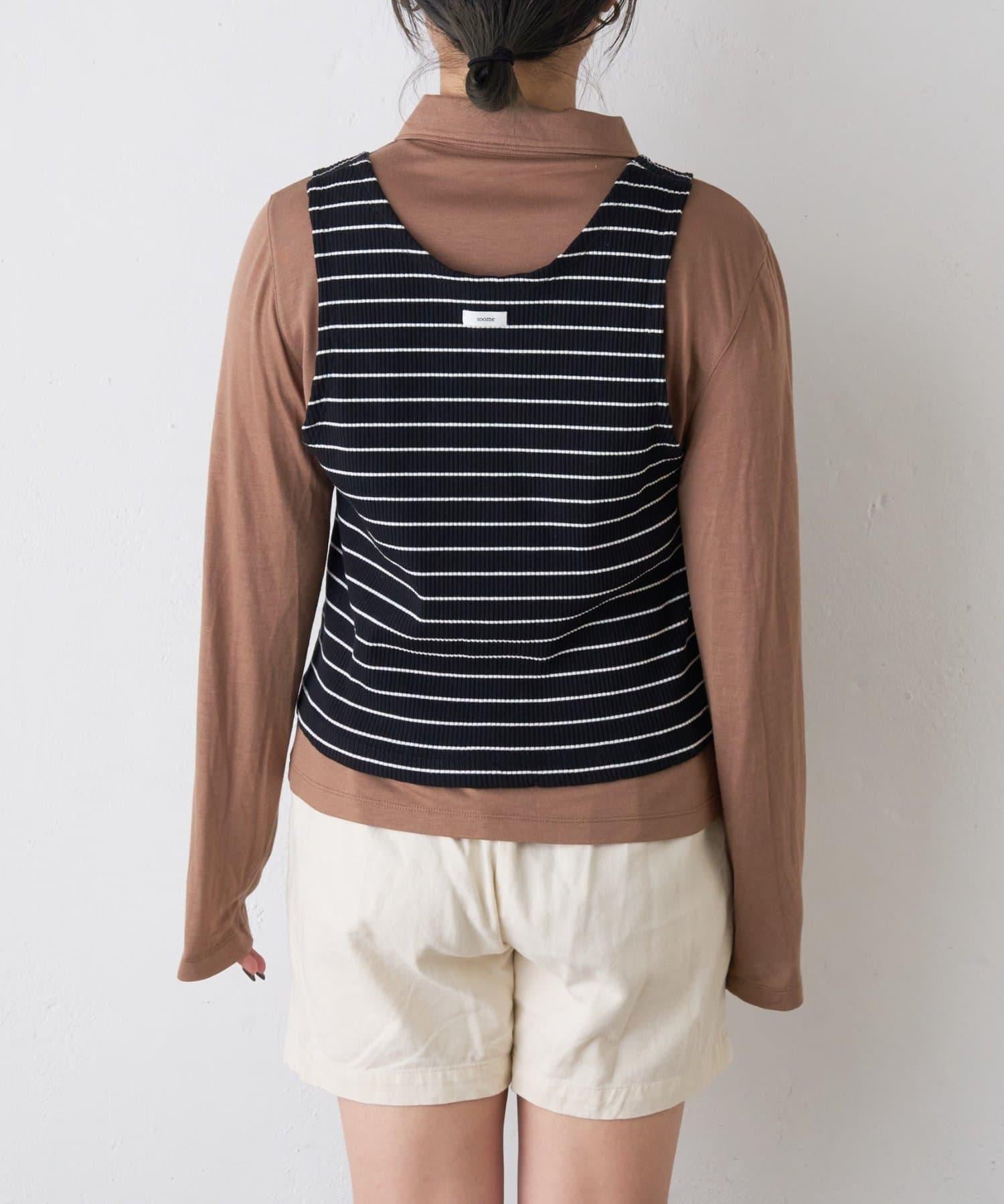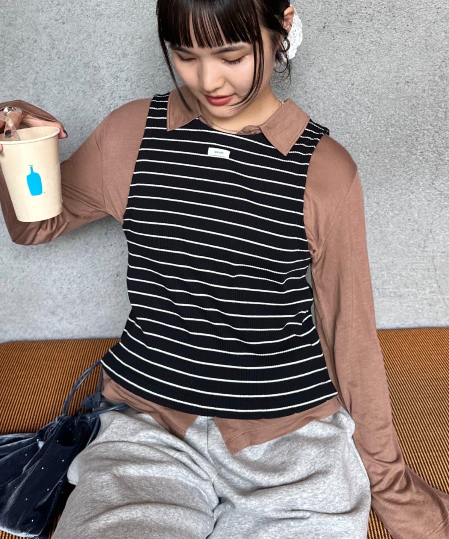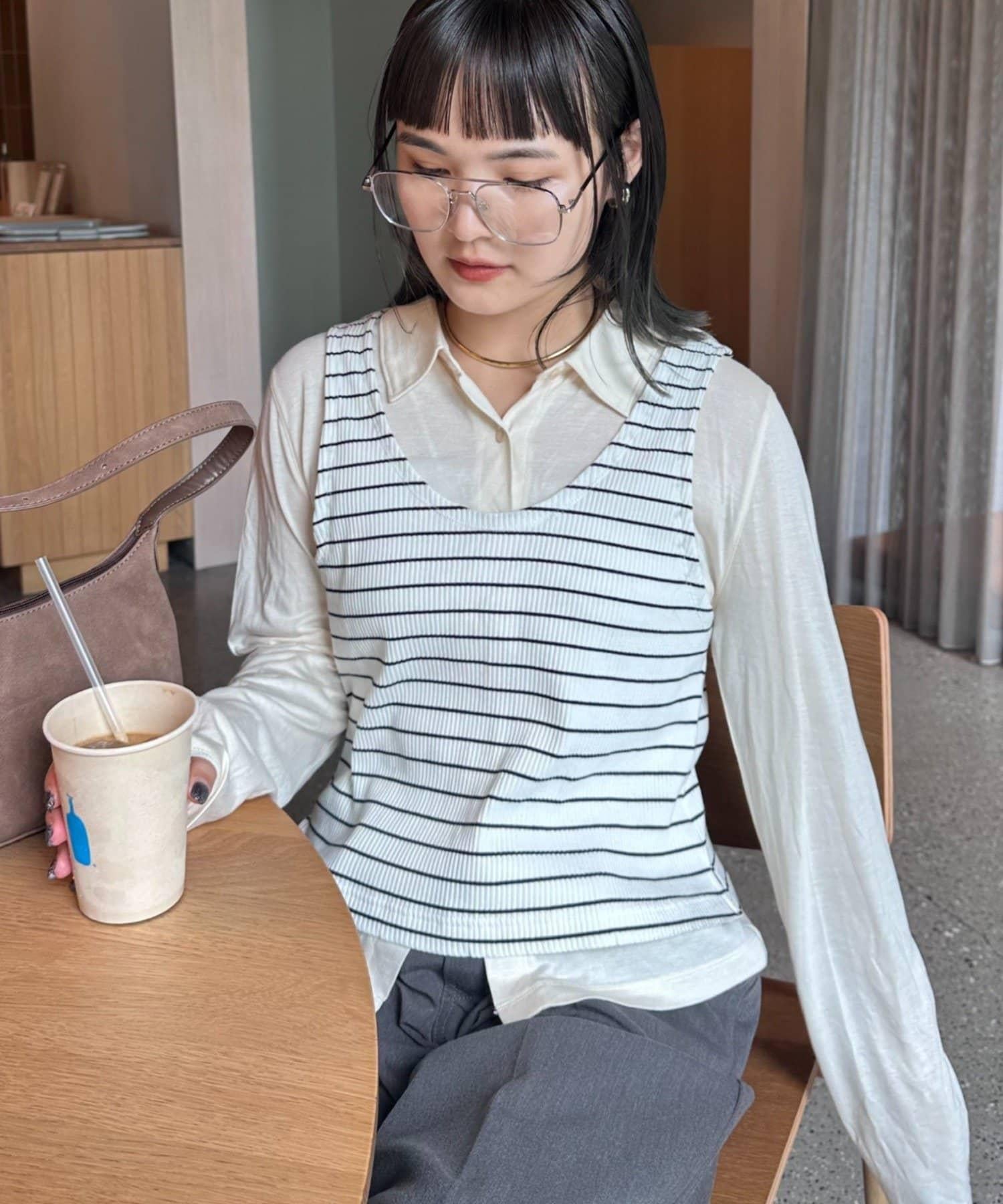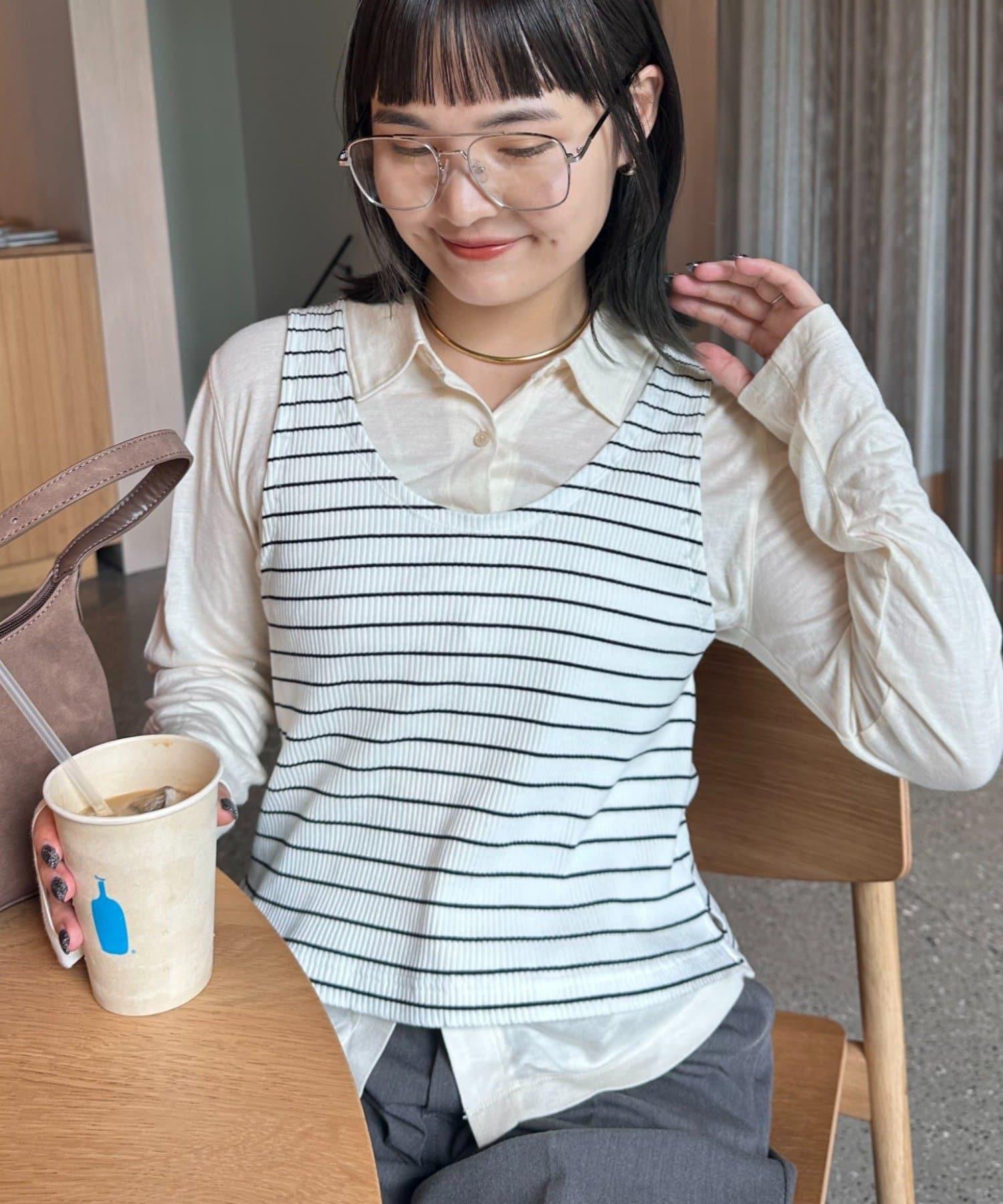 【soome韓國企劃】條紋層疊領口透視剪裁襯衫