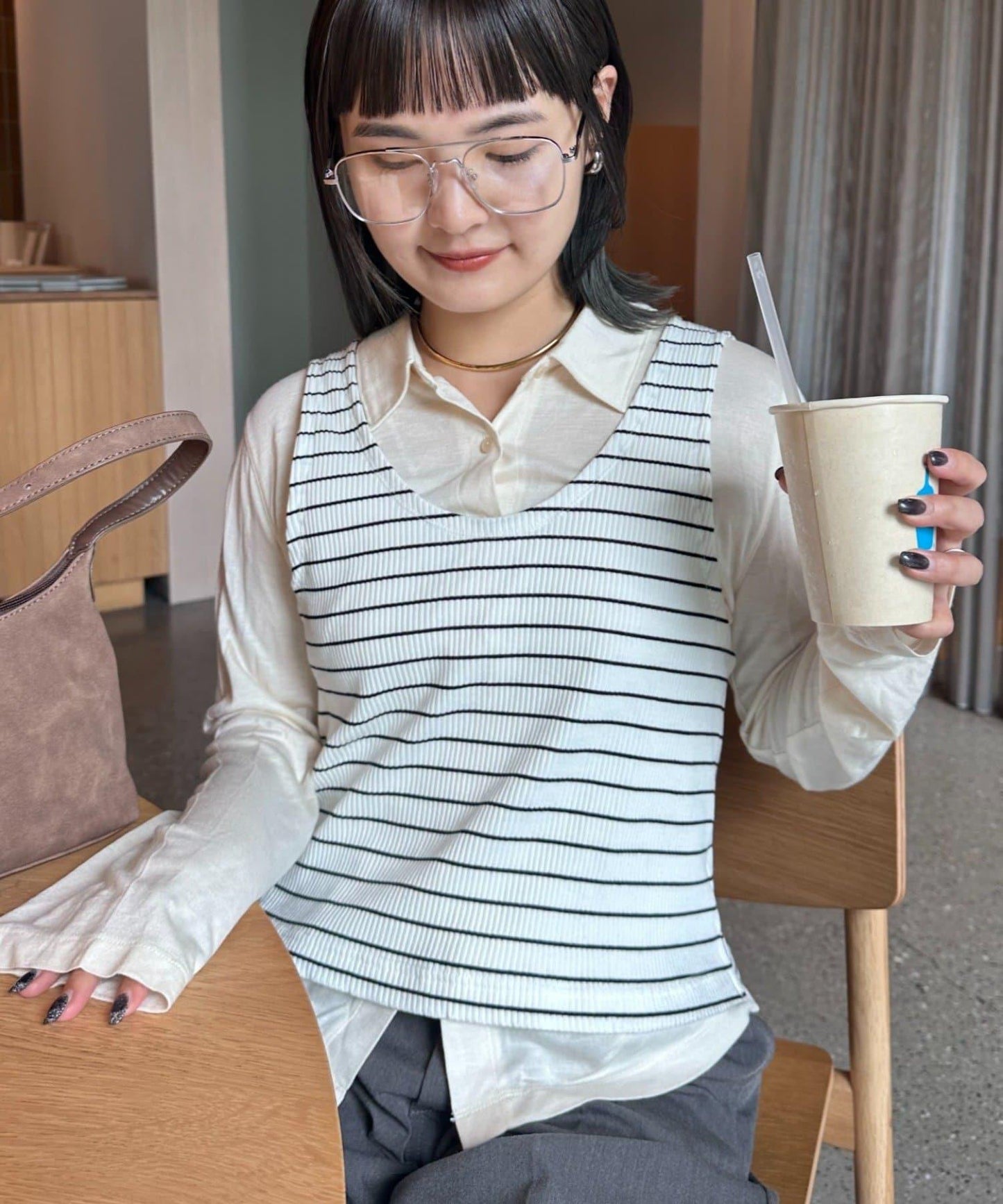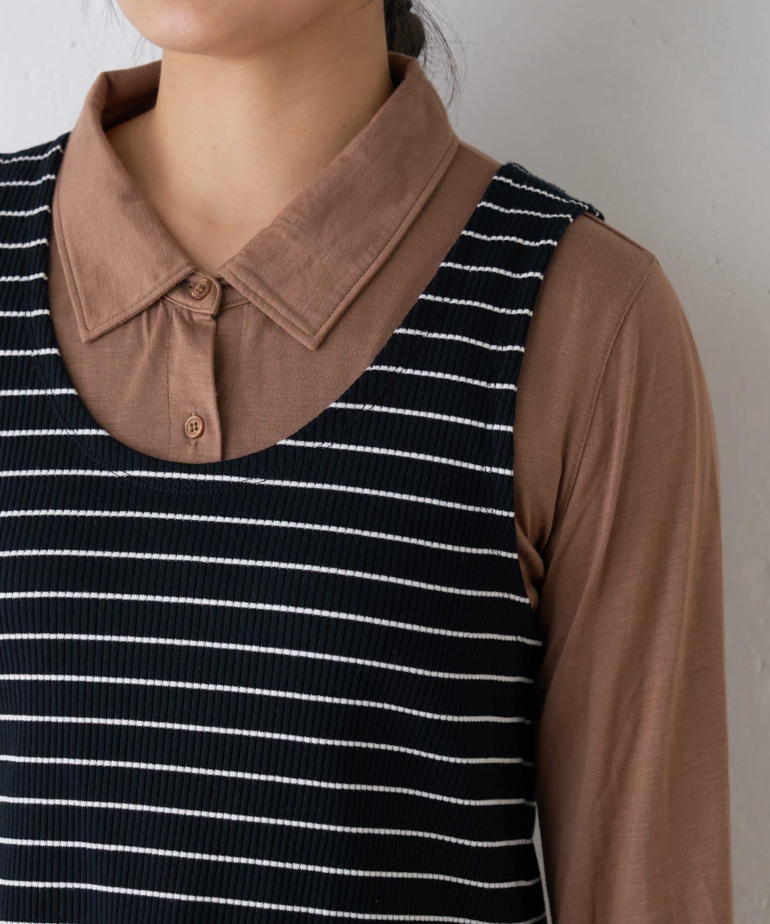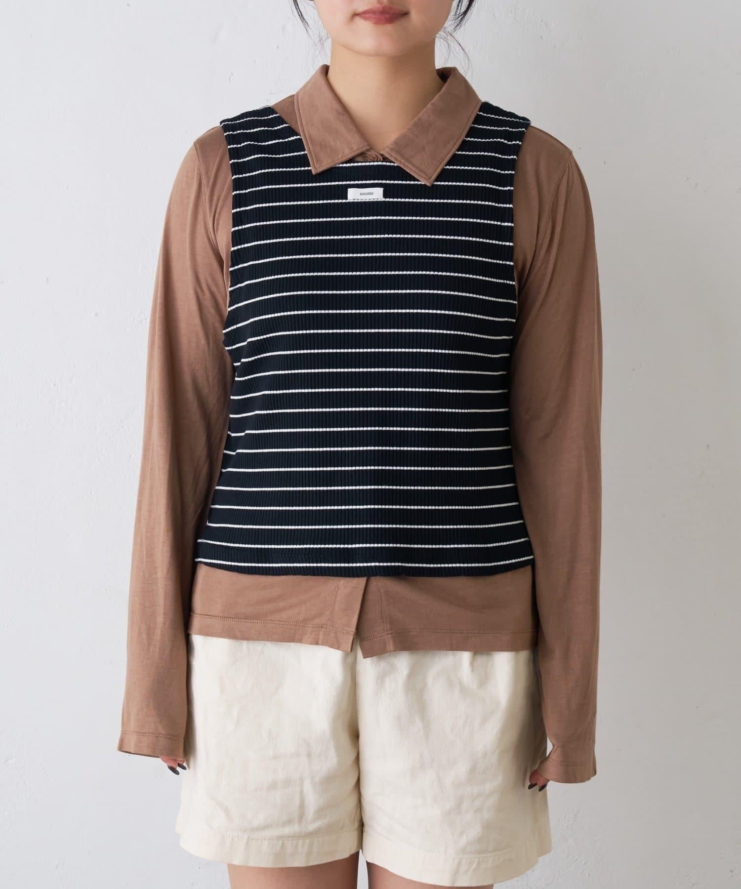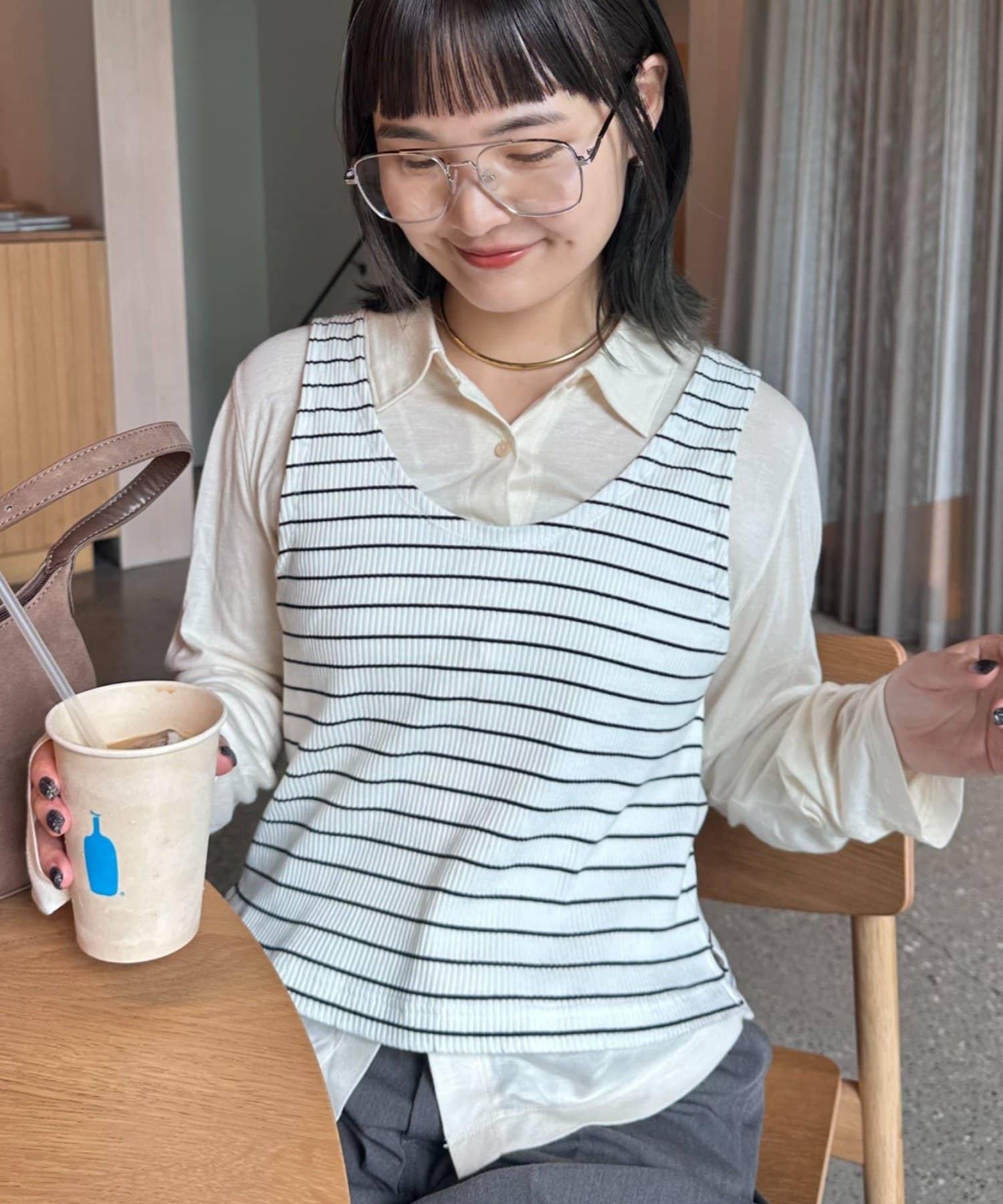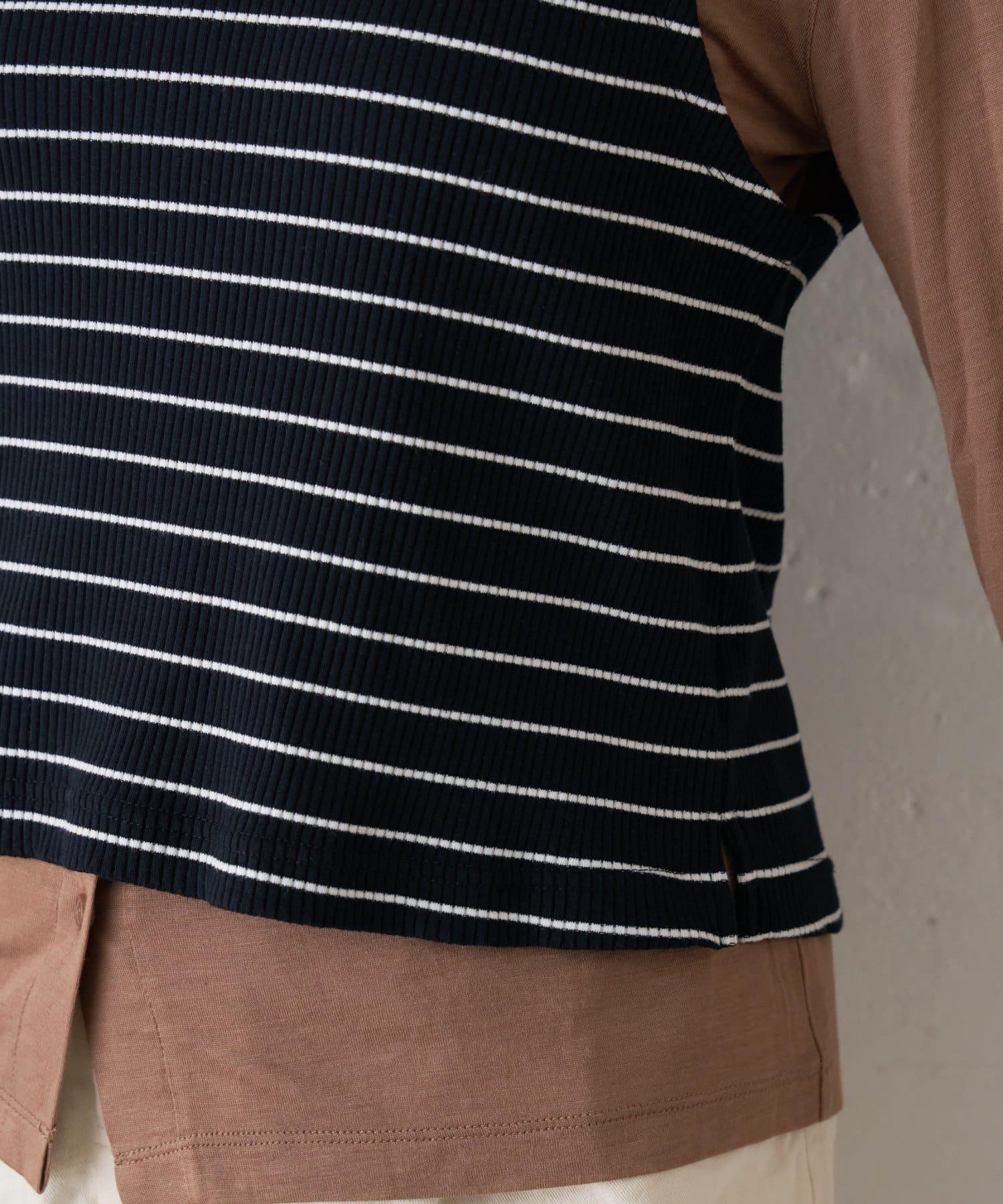 【soome韓國企劃】條紋層疊領口透視剪裁襯衫