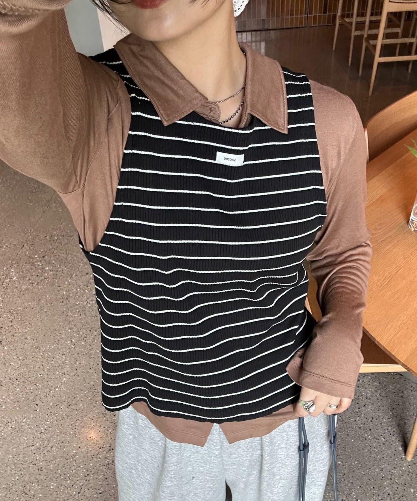這款背心既可以作為套裝穿,也可以與其他單品疊穿,享受多種穿法。