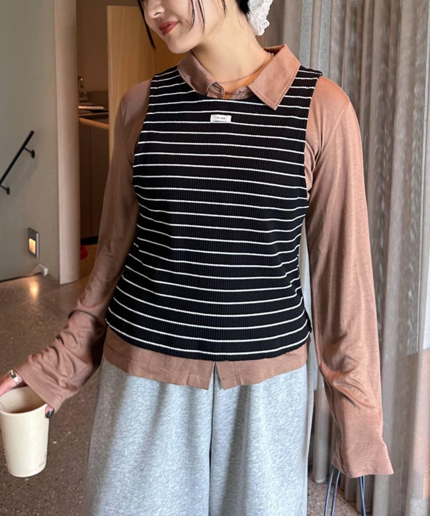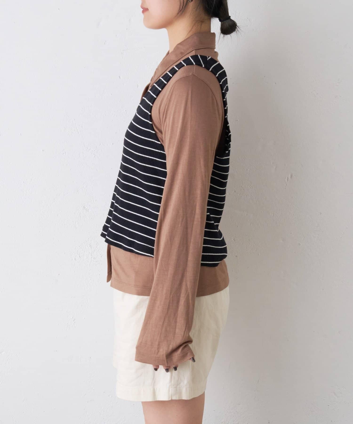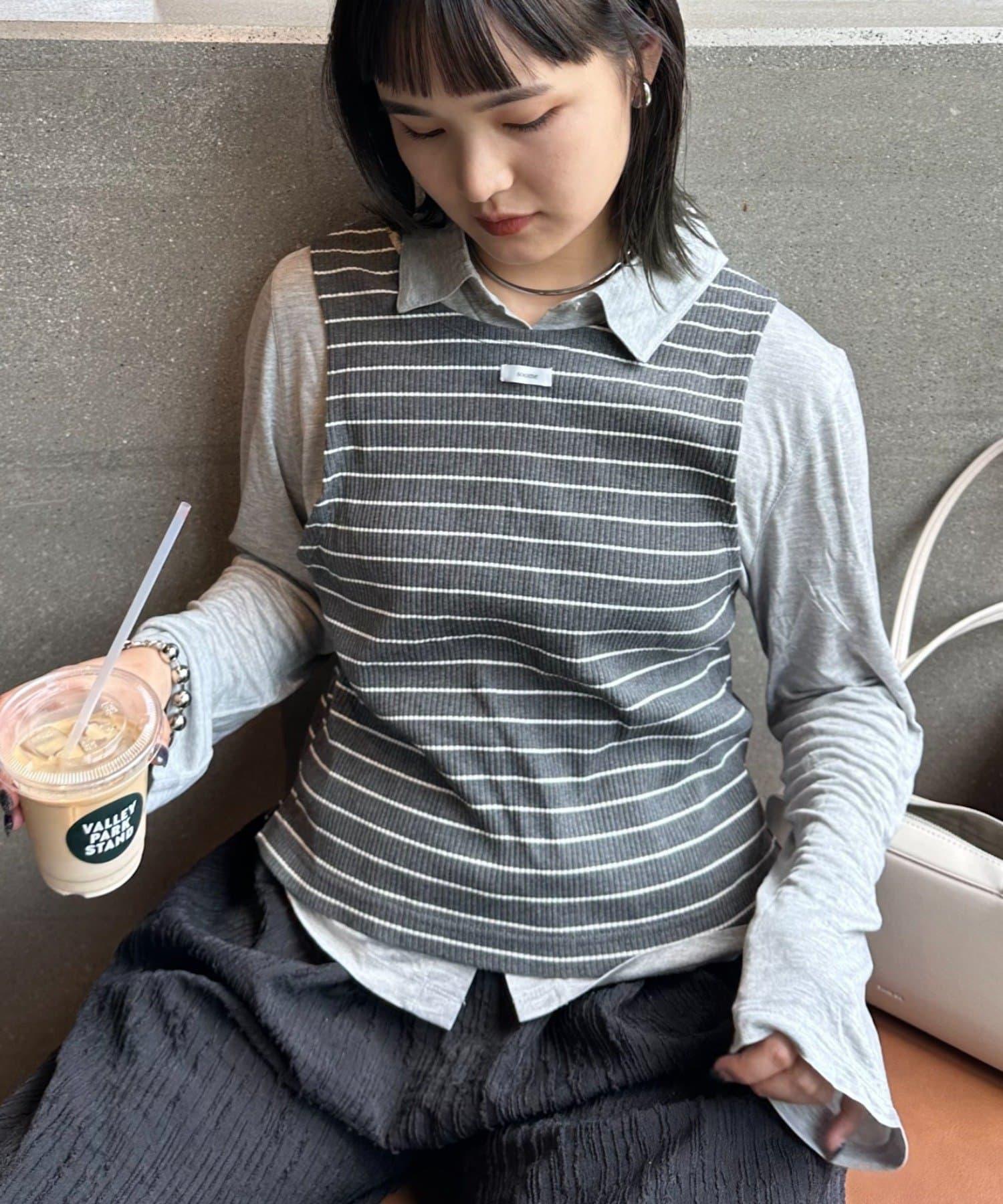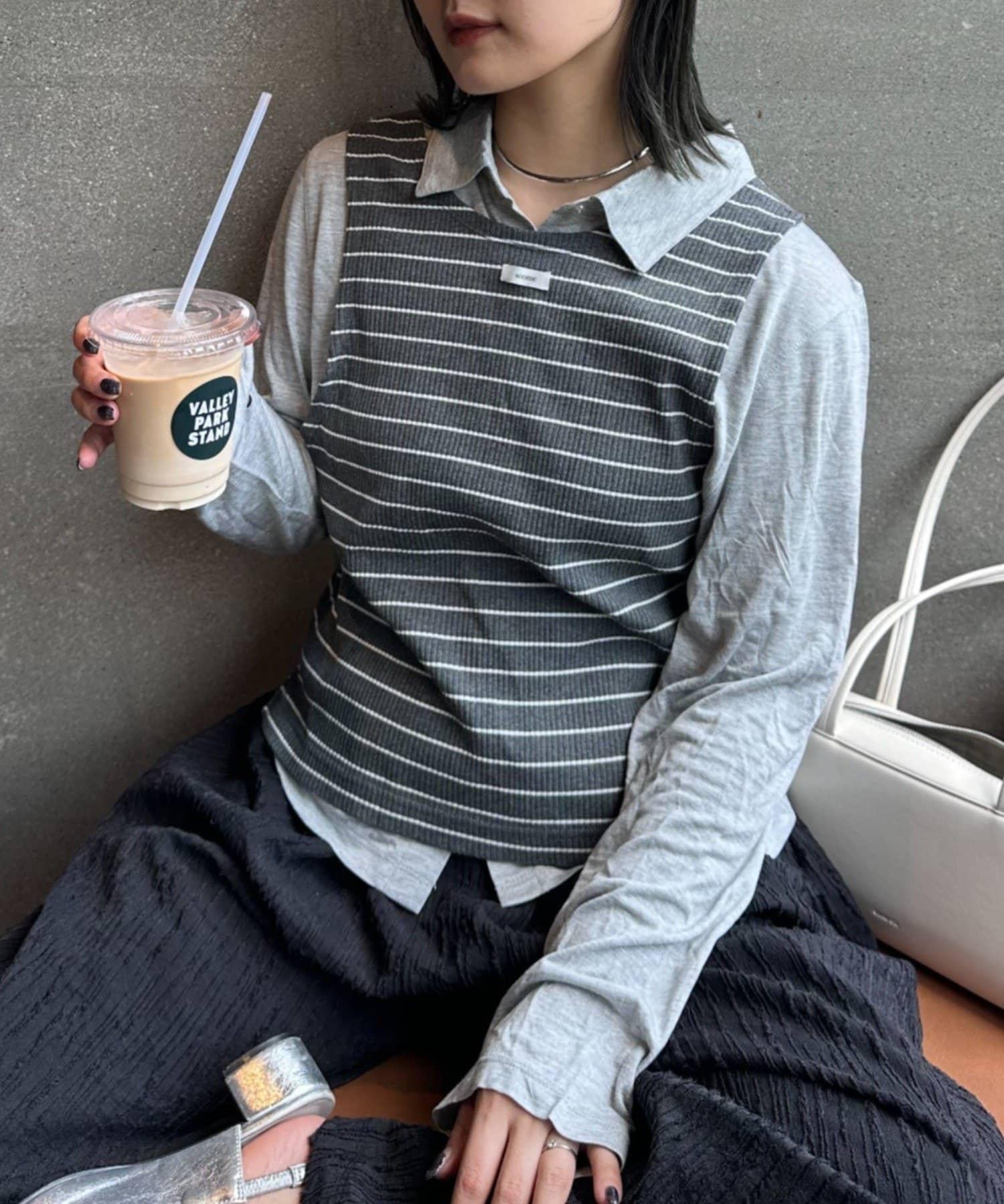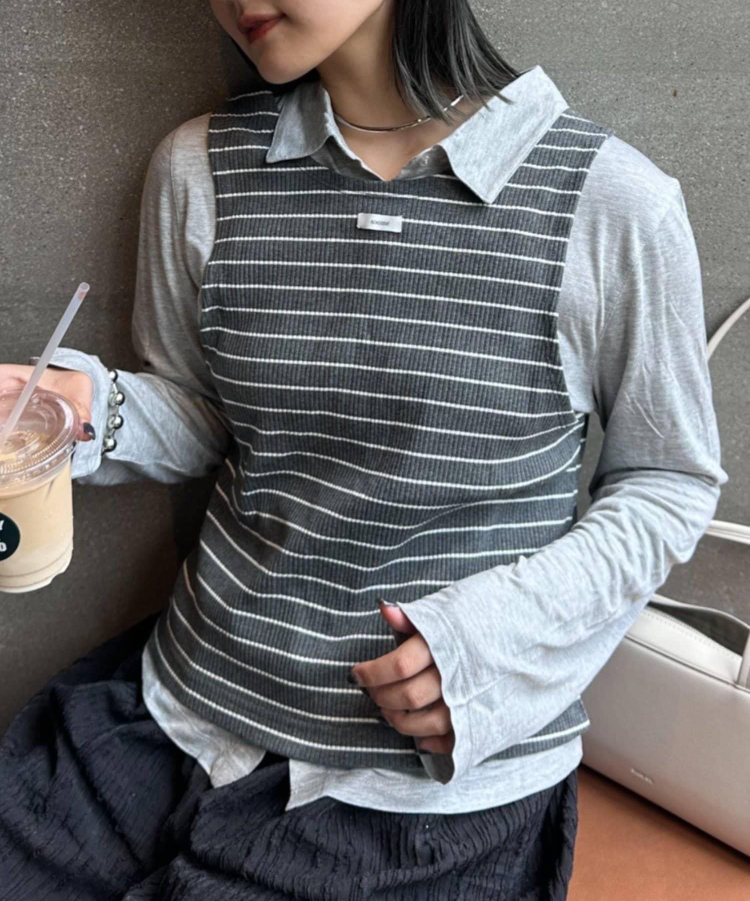 由鑲邊背心和透視襯衫組成的套裝單品,可前後兩用。