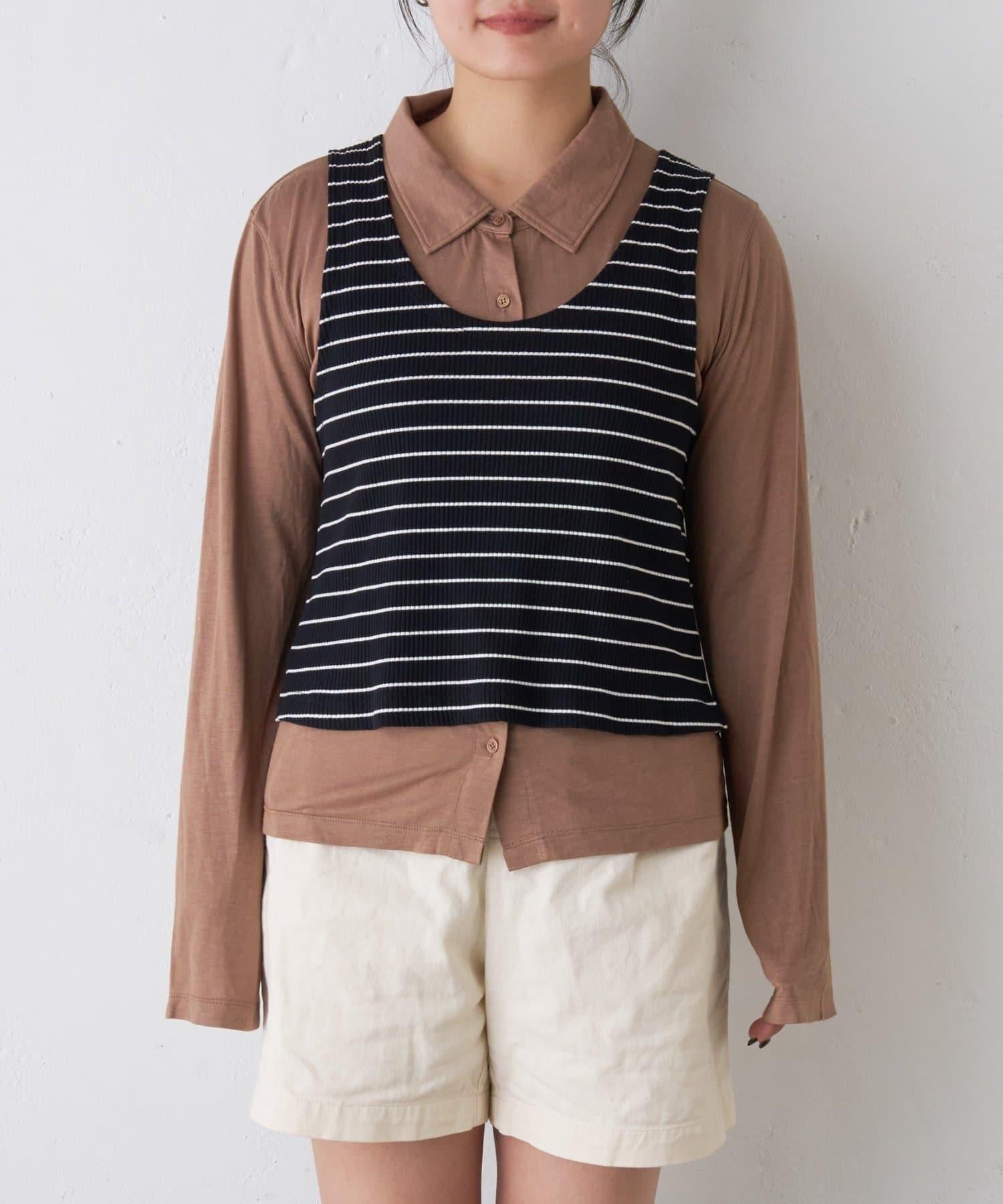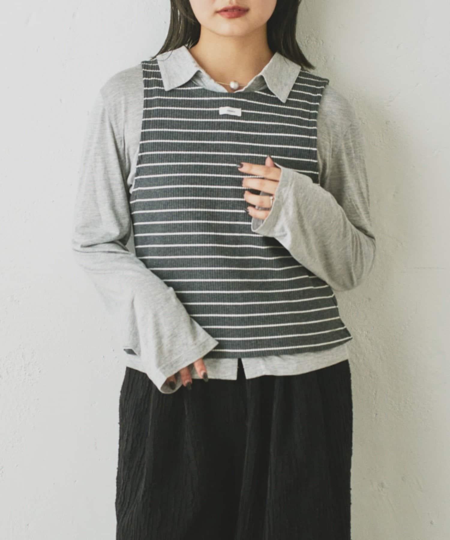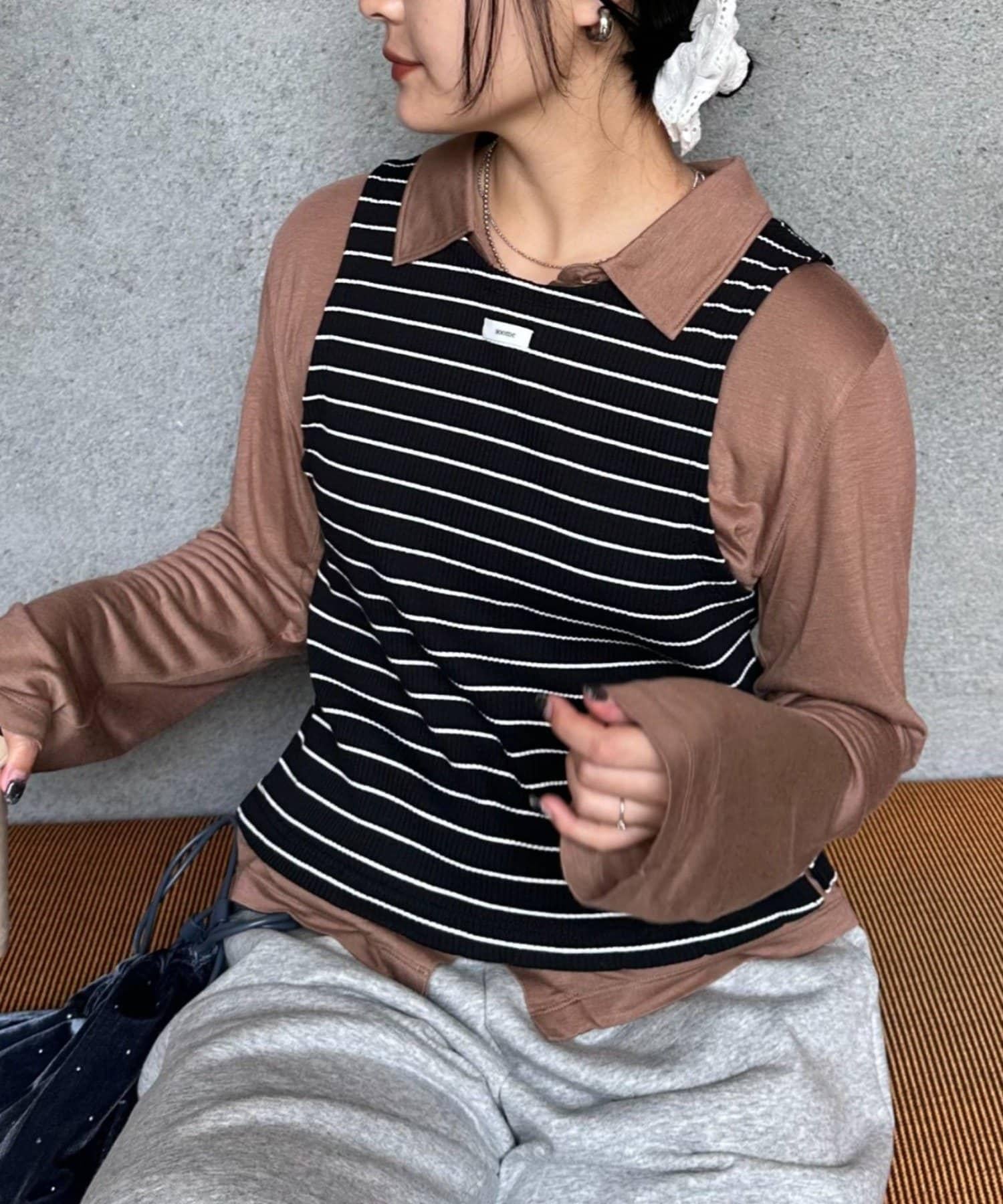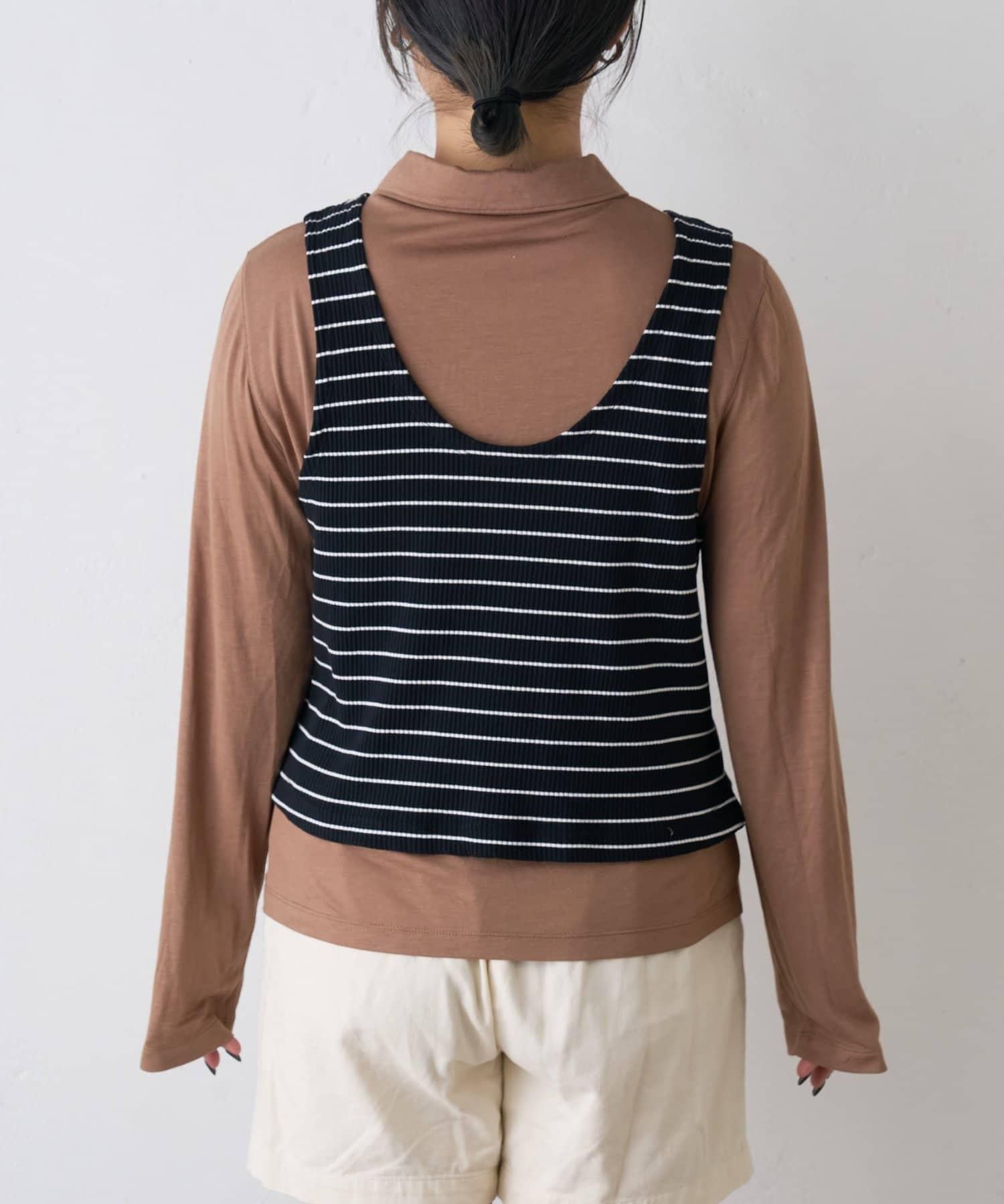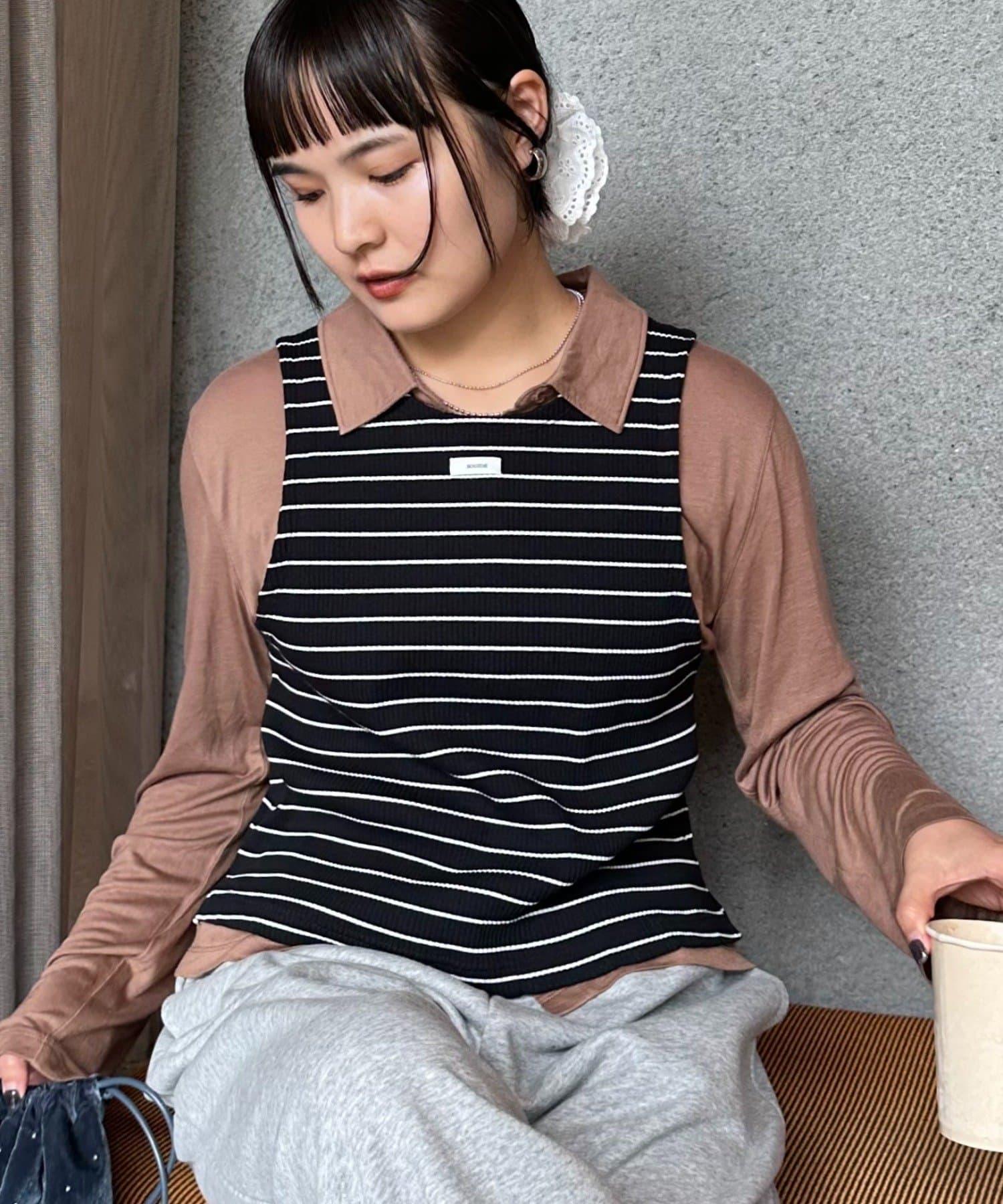 由鑲邊背心和透視襯衫組成的套裝單品,可前後兩用。