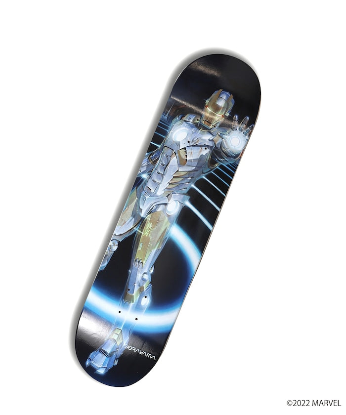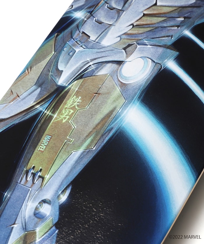 這款滑板印有世界👍的日本當代藝術家 Motoi Sorayama 筆下的鋼鐵俠形象,鋼鐵俠是漫威工作室👍👍的英雄之一。