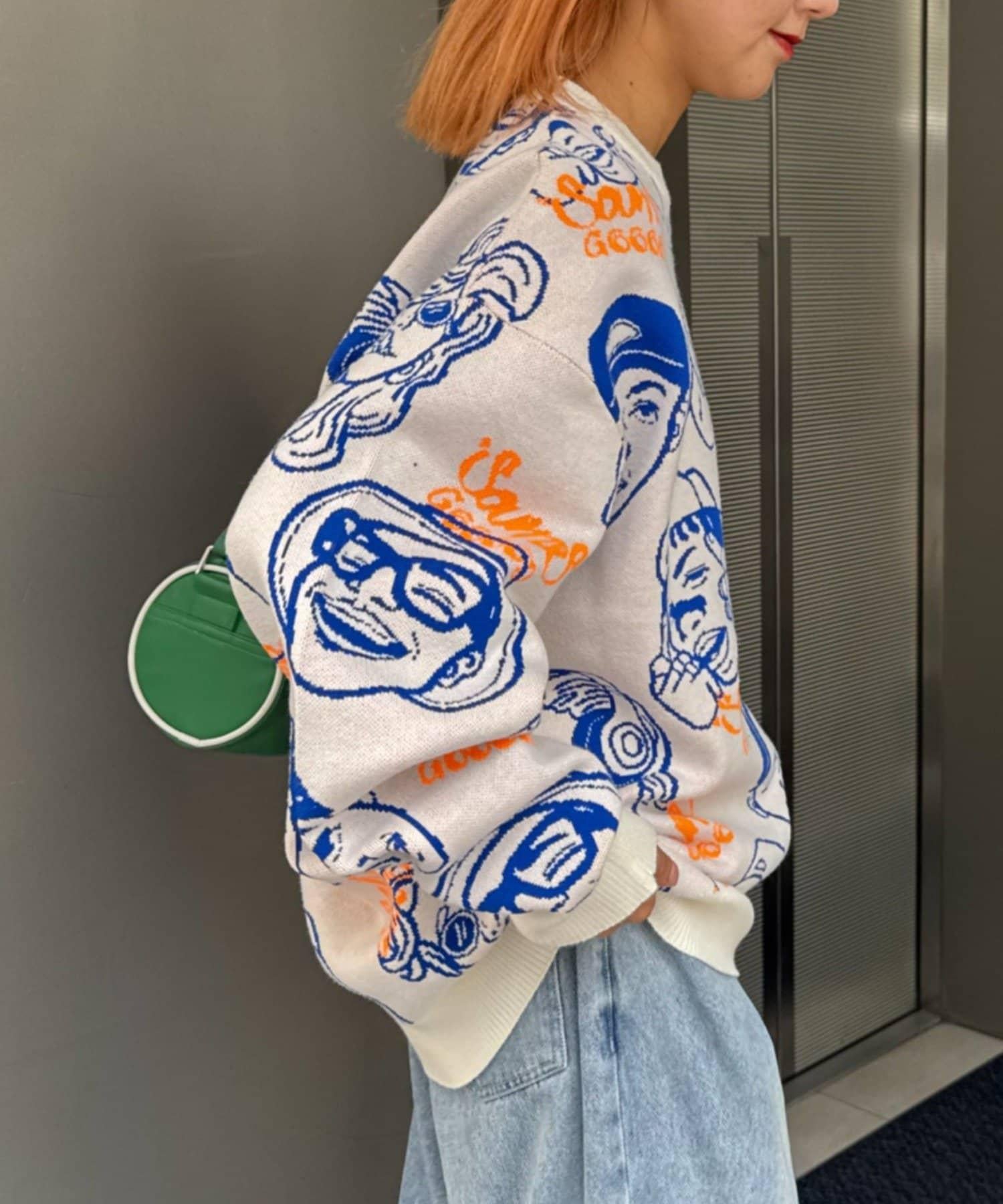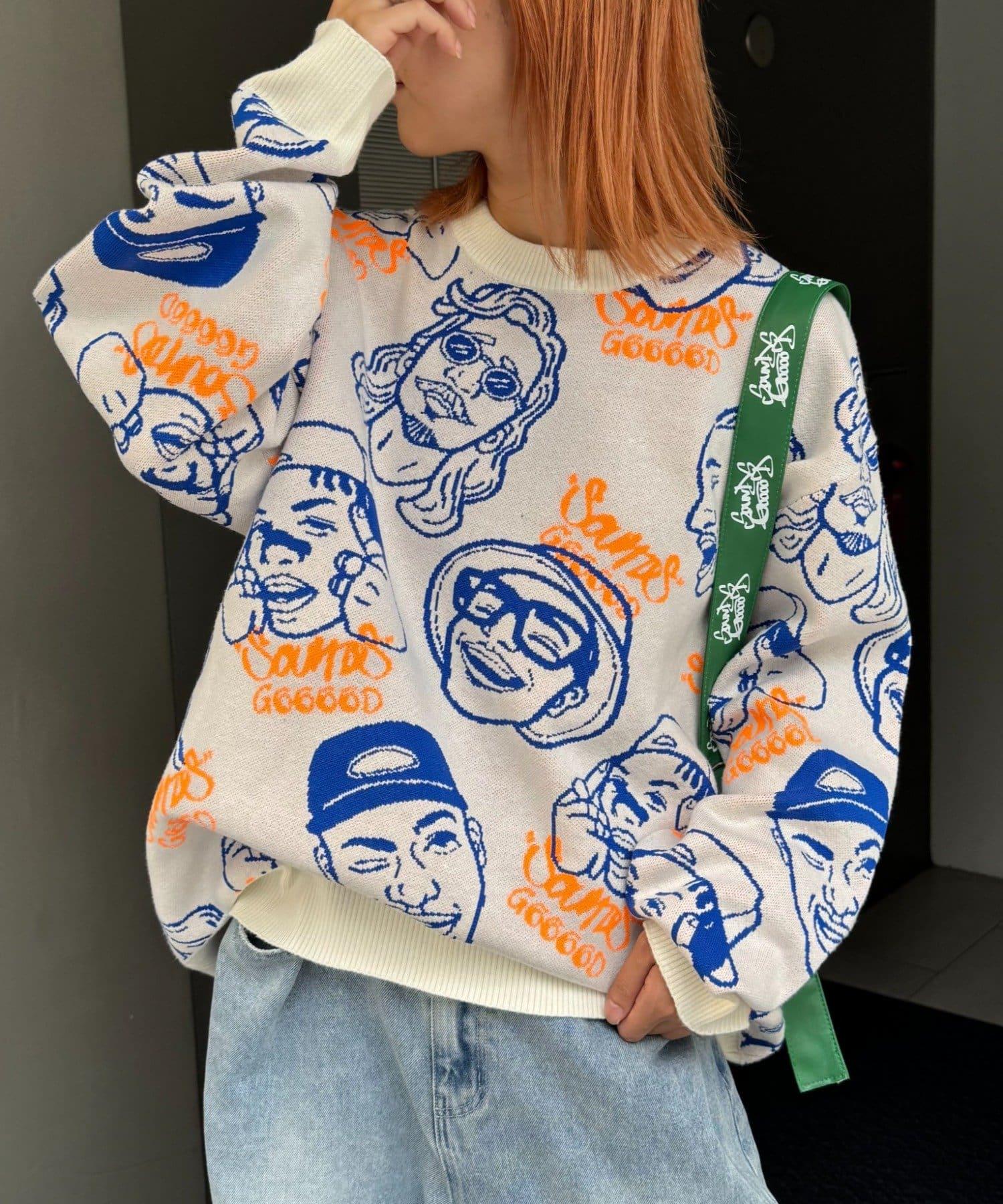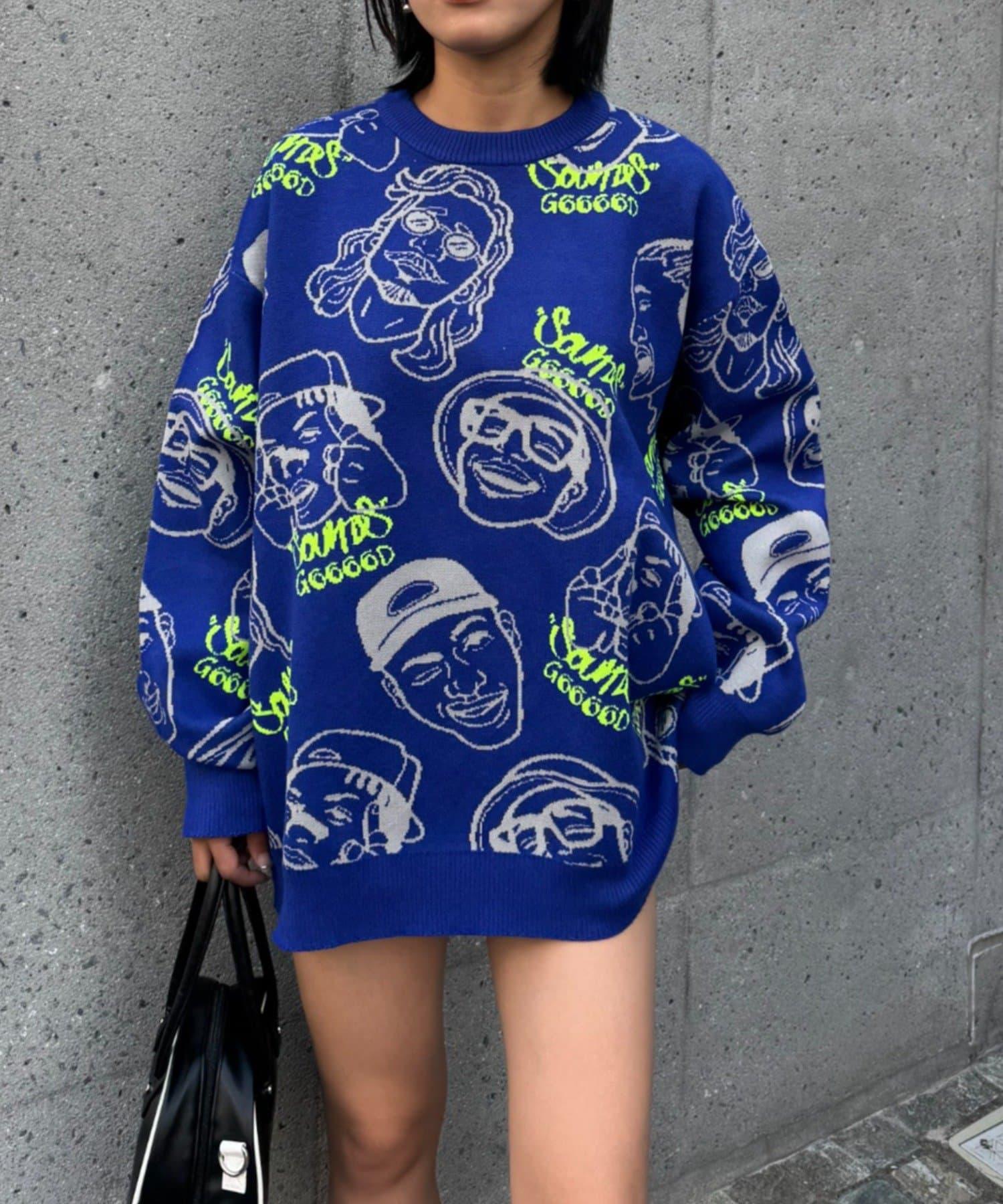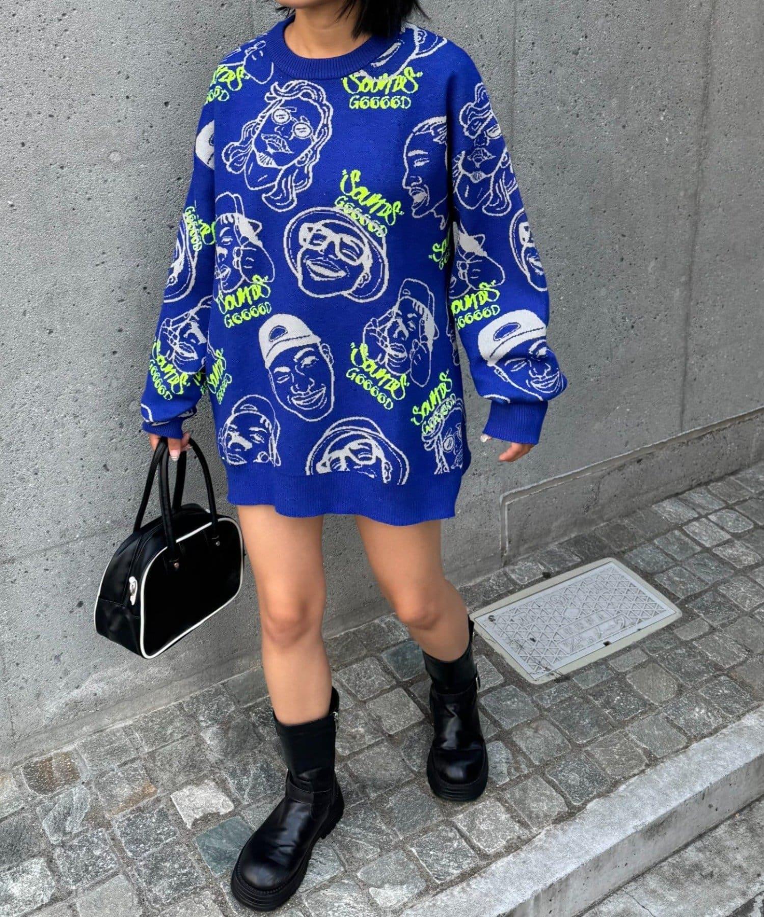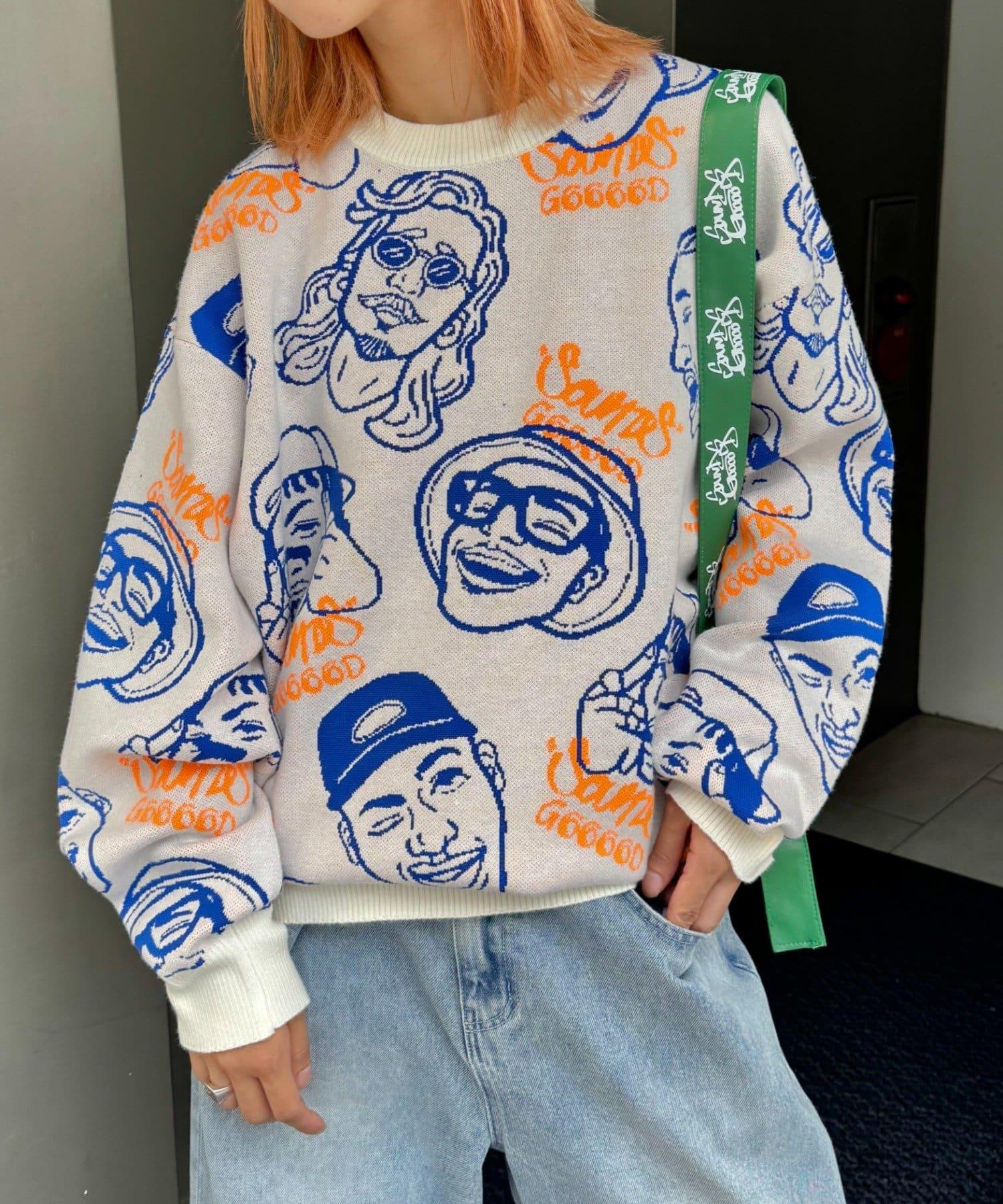 預約商品【SOUNDS GOOOOD】拼色臉部圖案針織衫