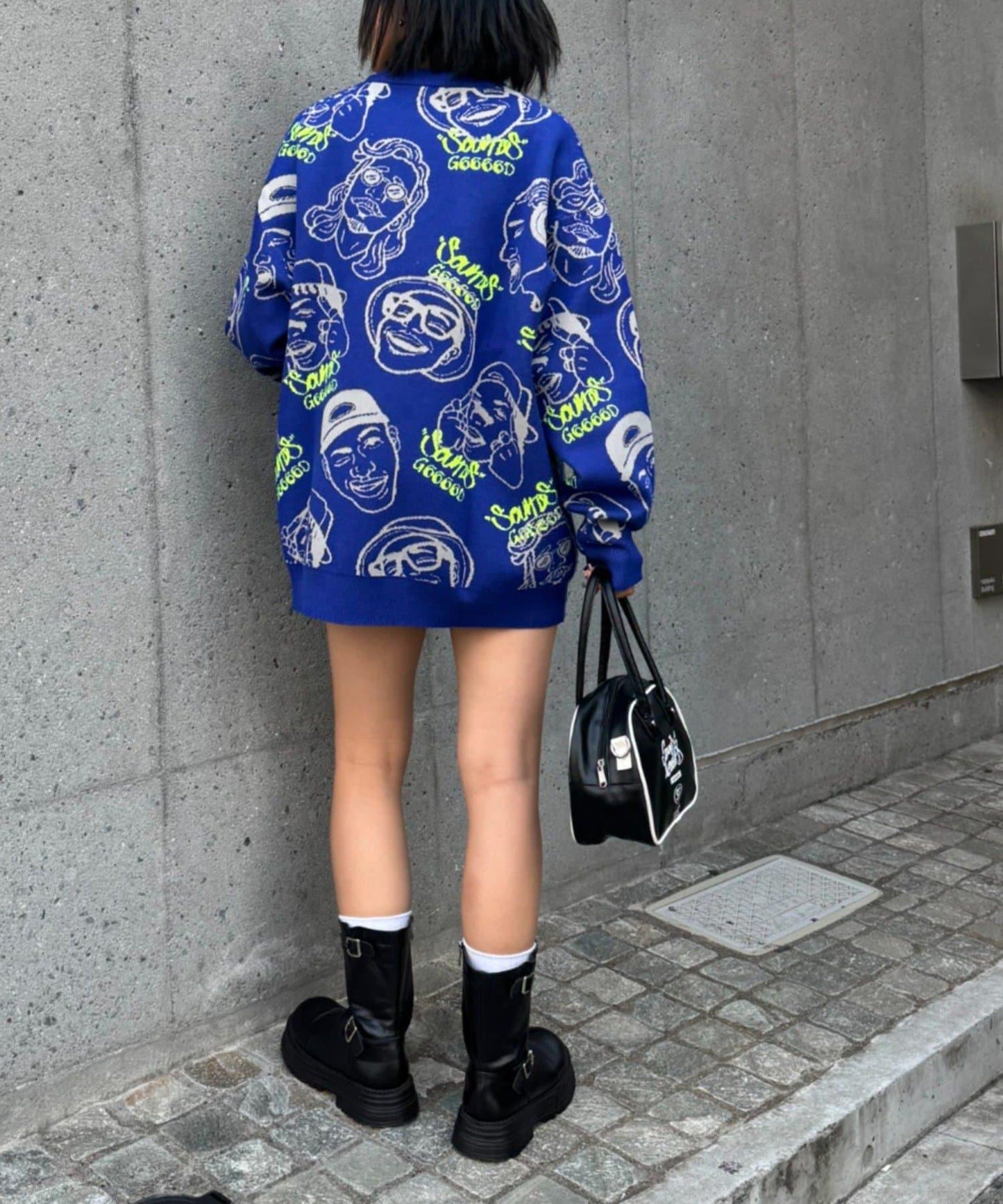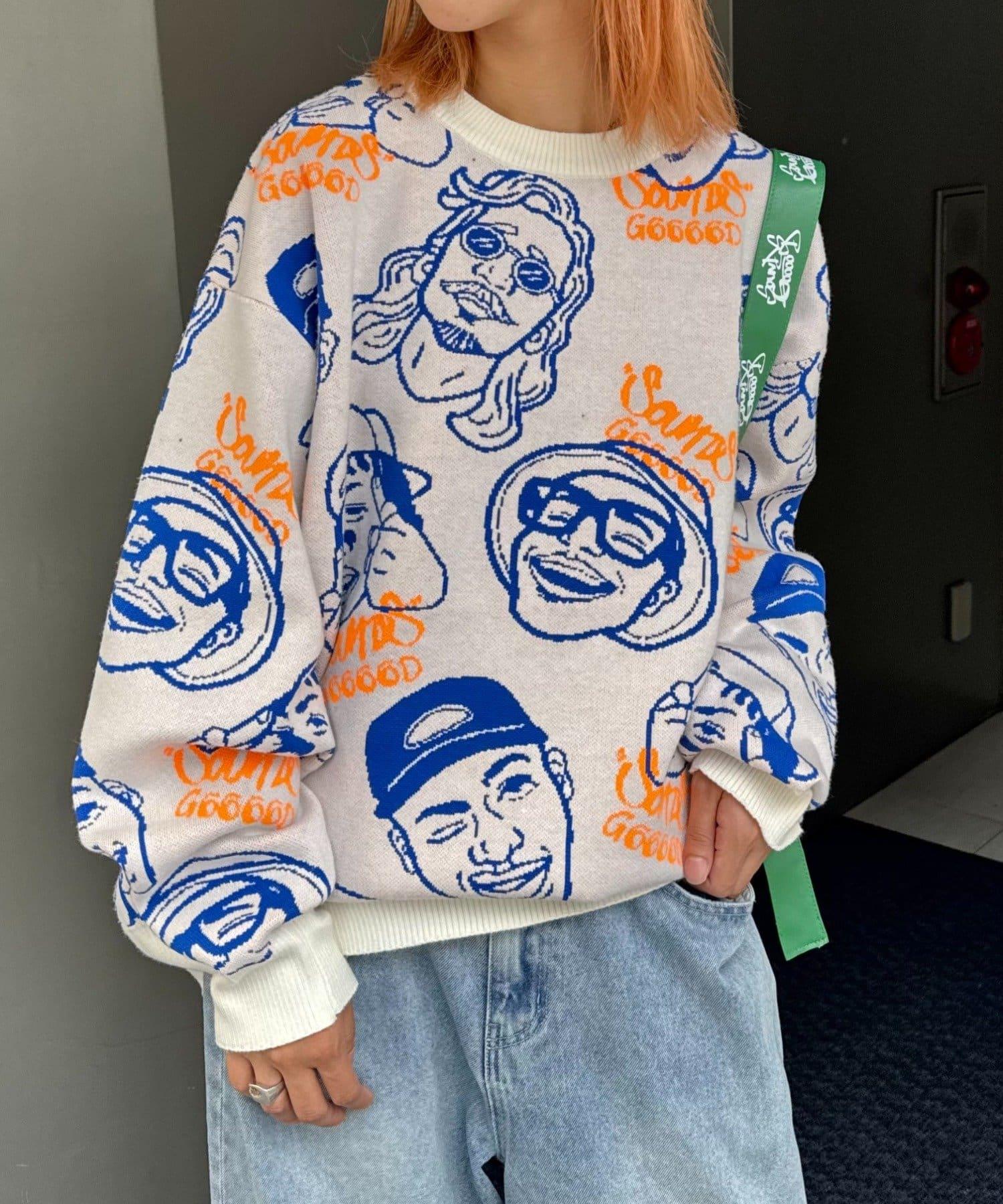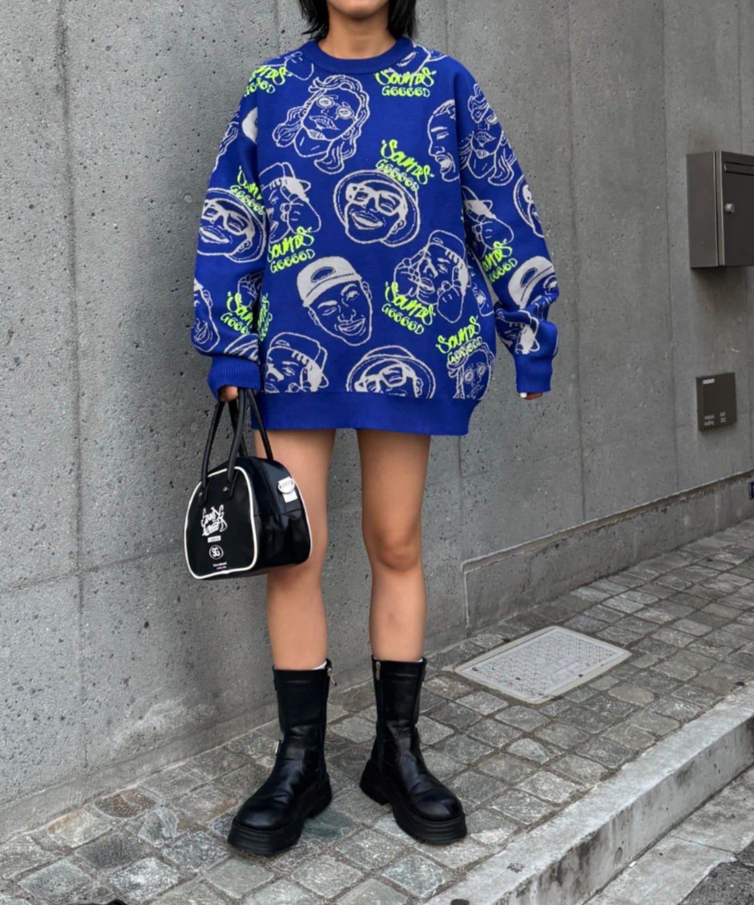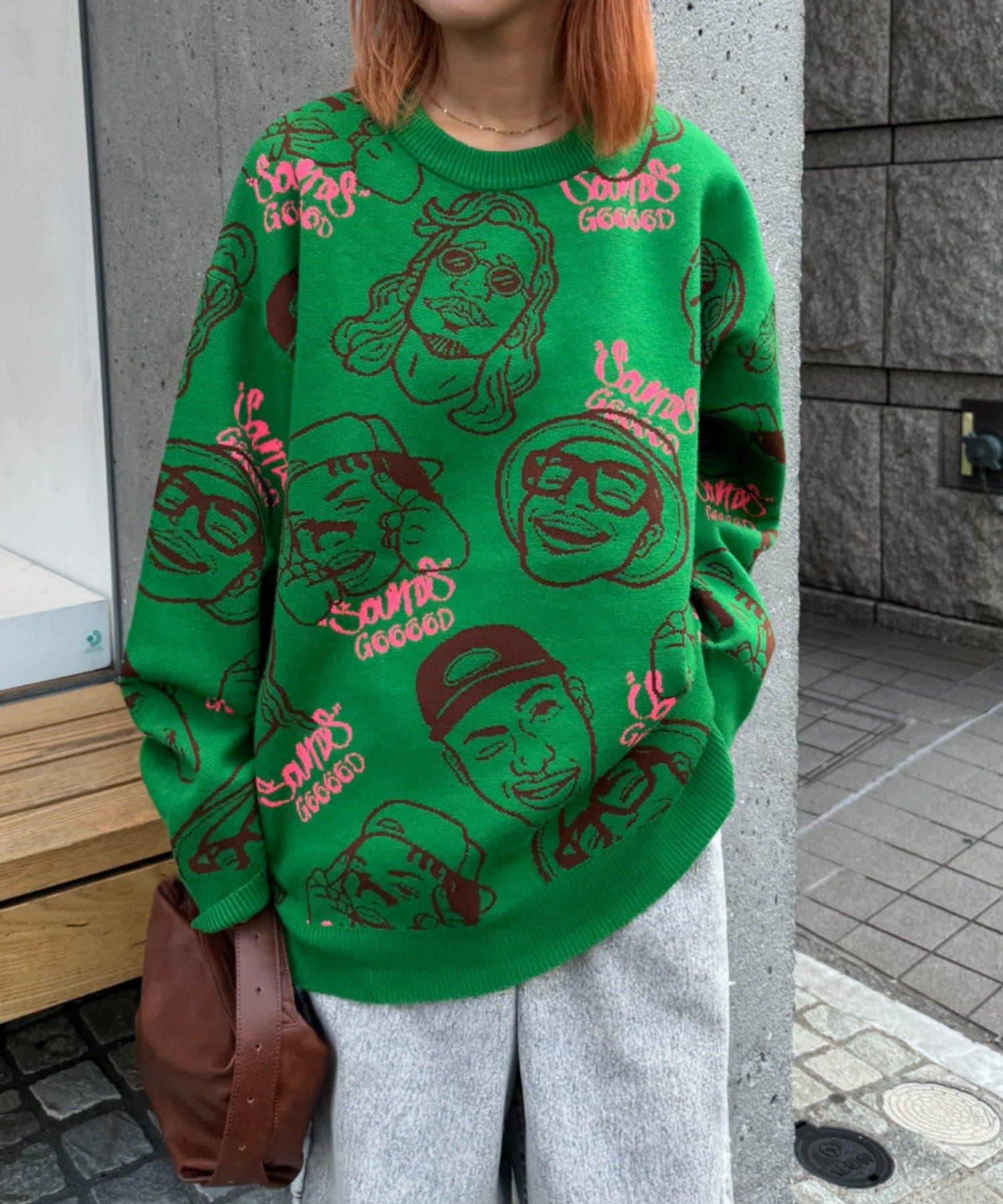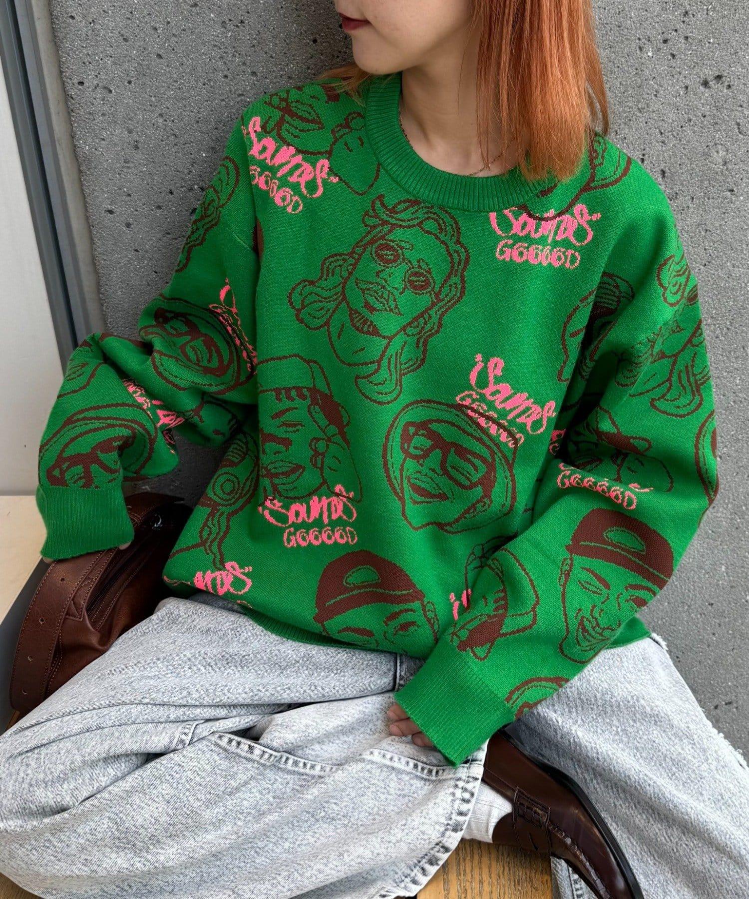 預約商品【SOUNDS GOOOOD】拼色臉部圖案針織衫