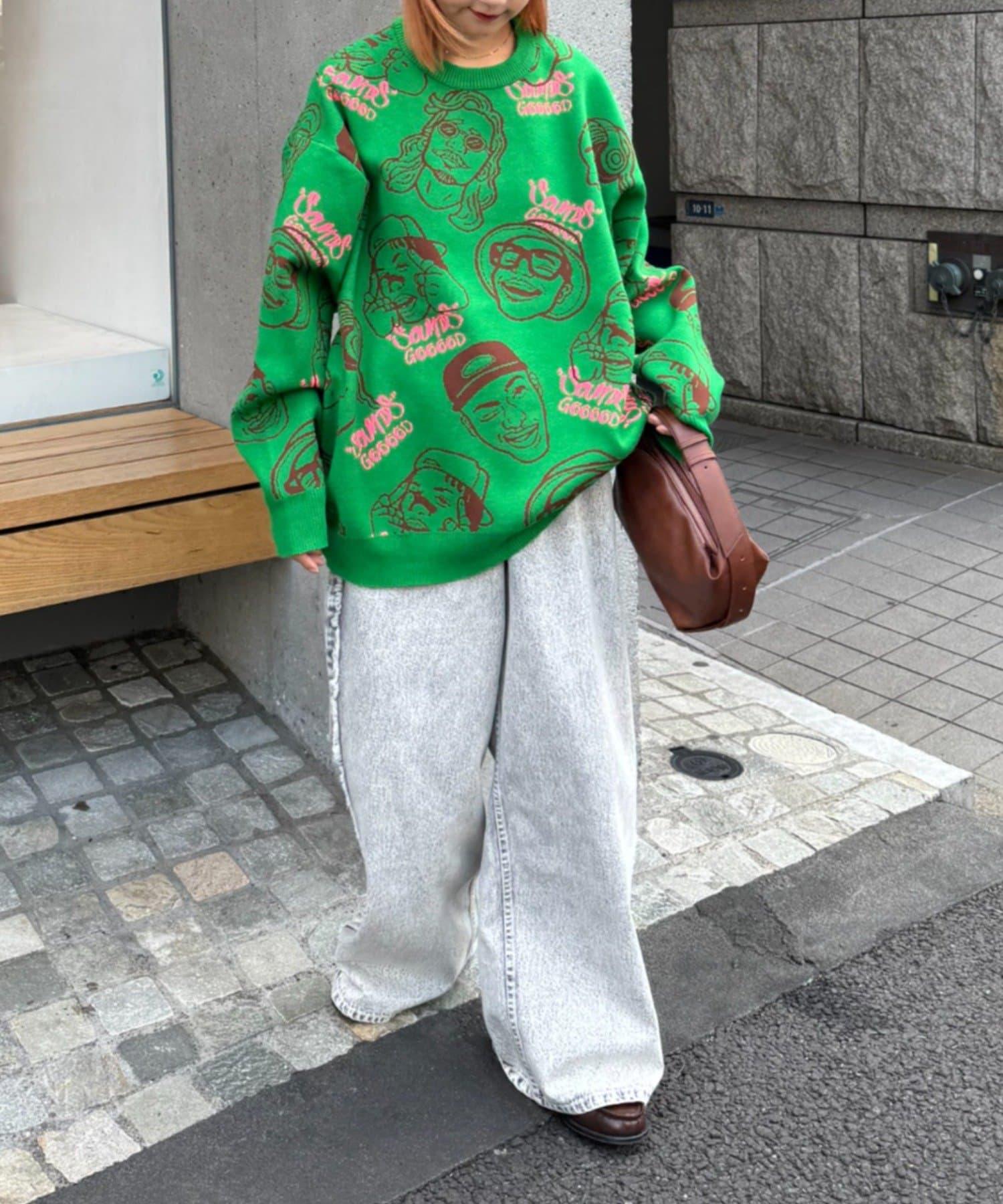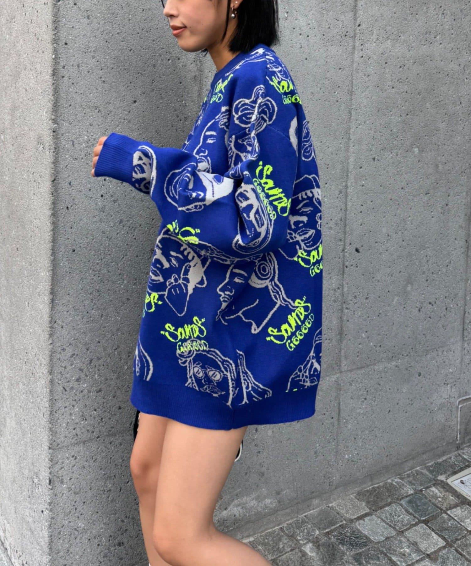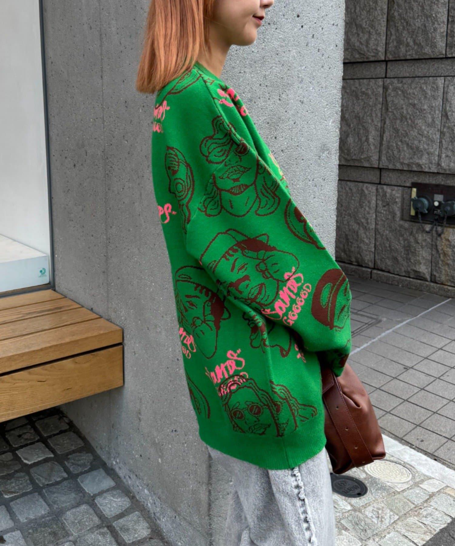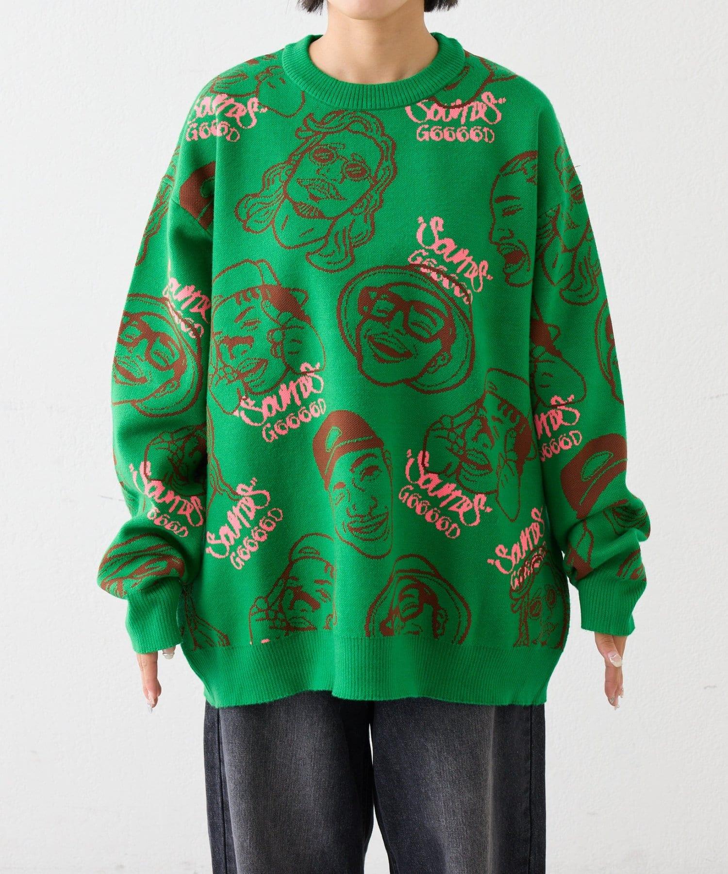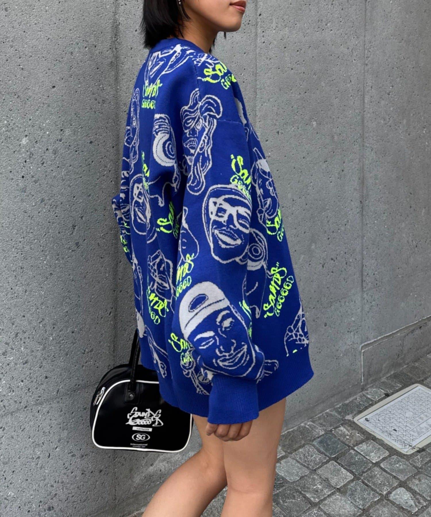 預約商品【SOUNDS GOOOOD】拼色臉部圖案針織衫