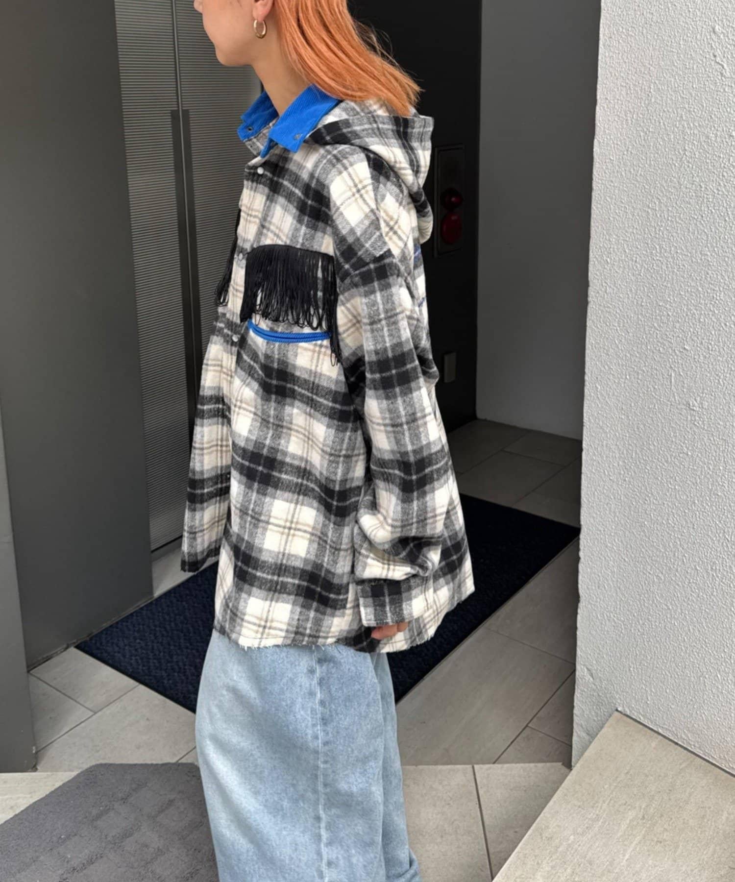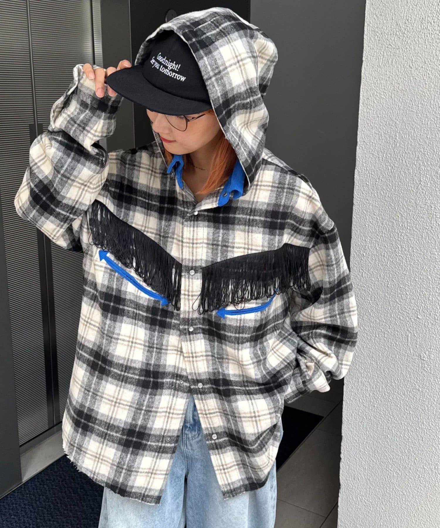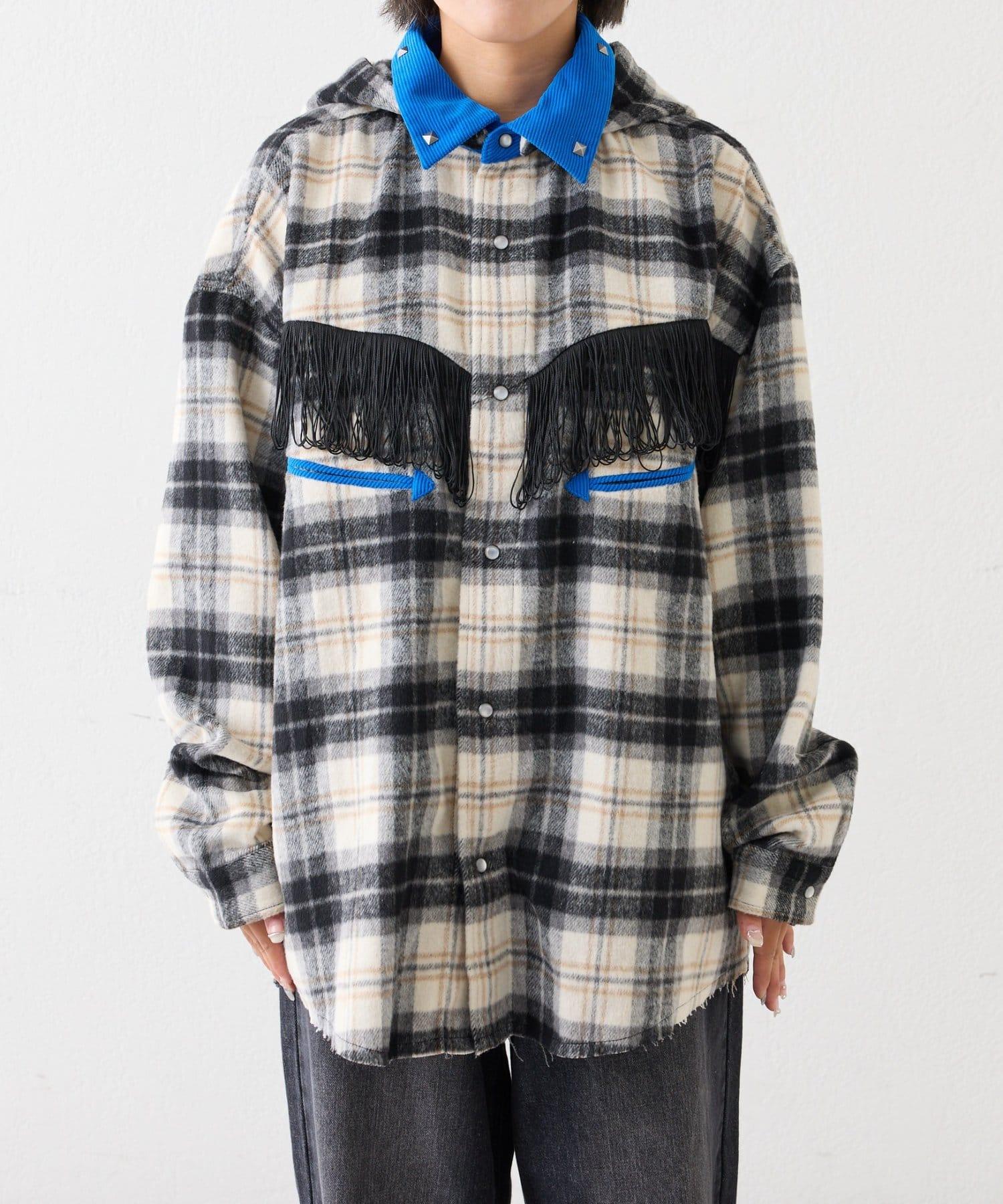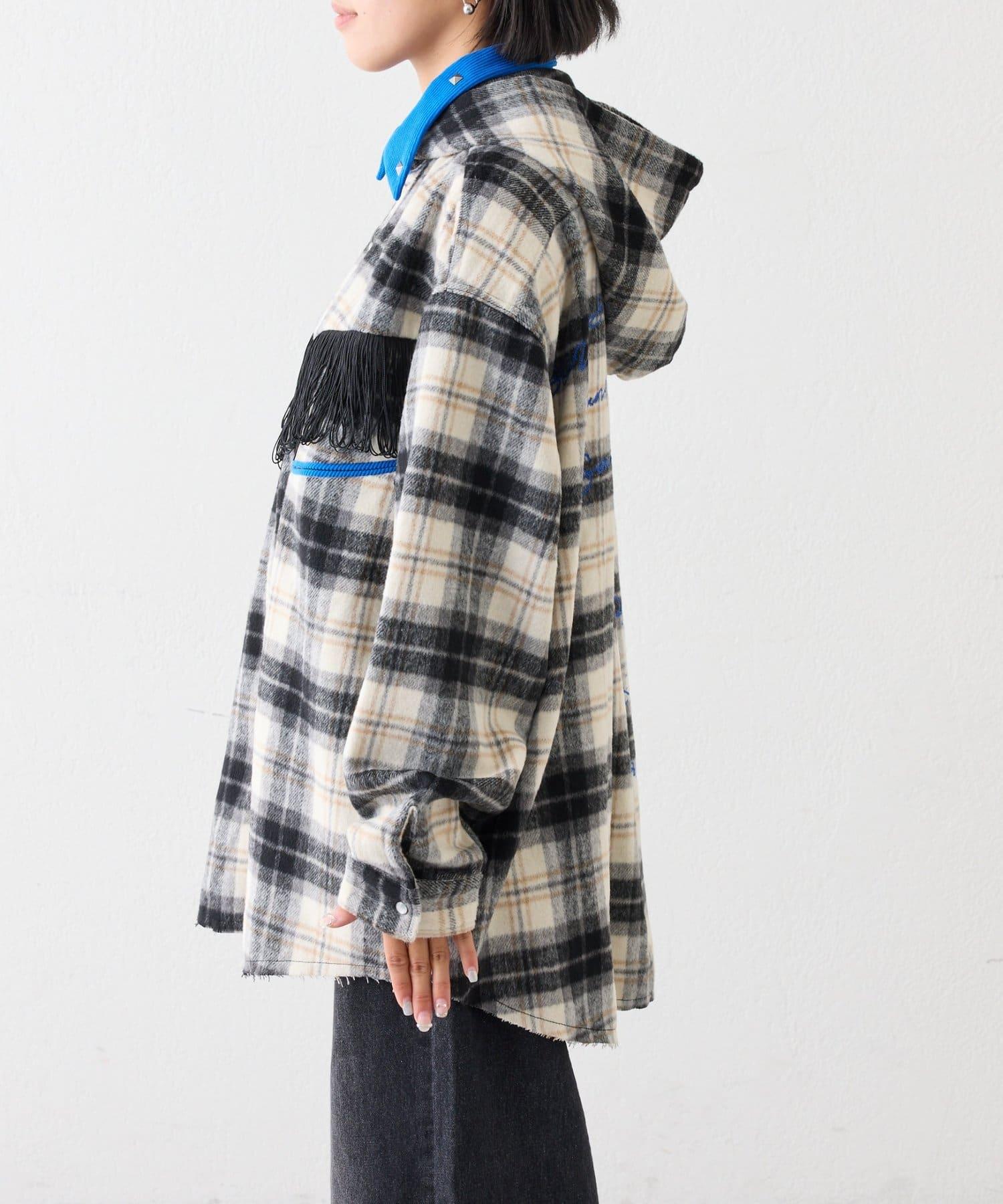 【SOUNDS GOOOOD】法蘭絨格紋刺繡流蘇連帽西部風襯衫