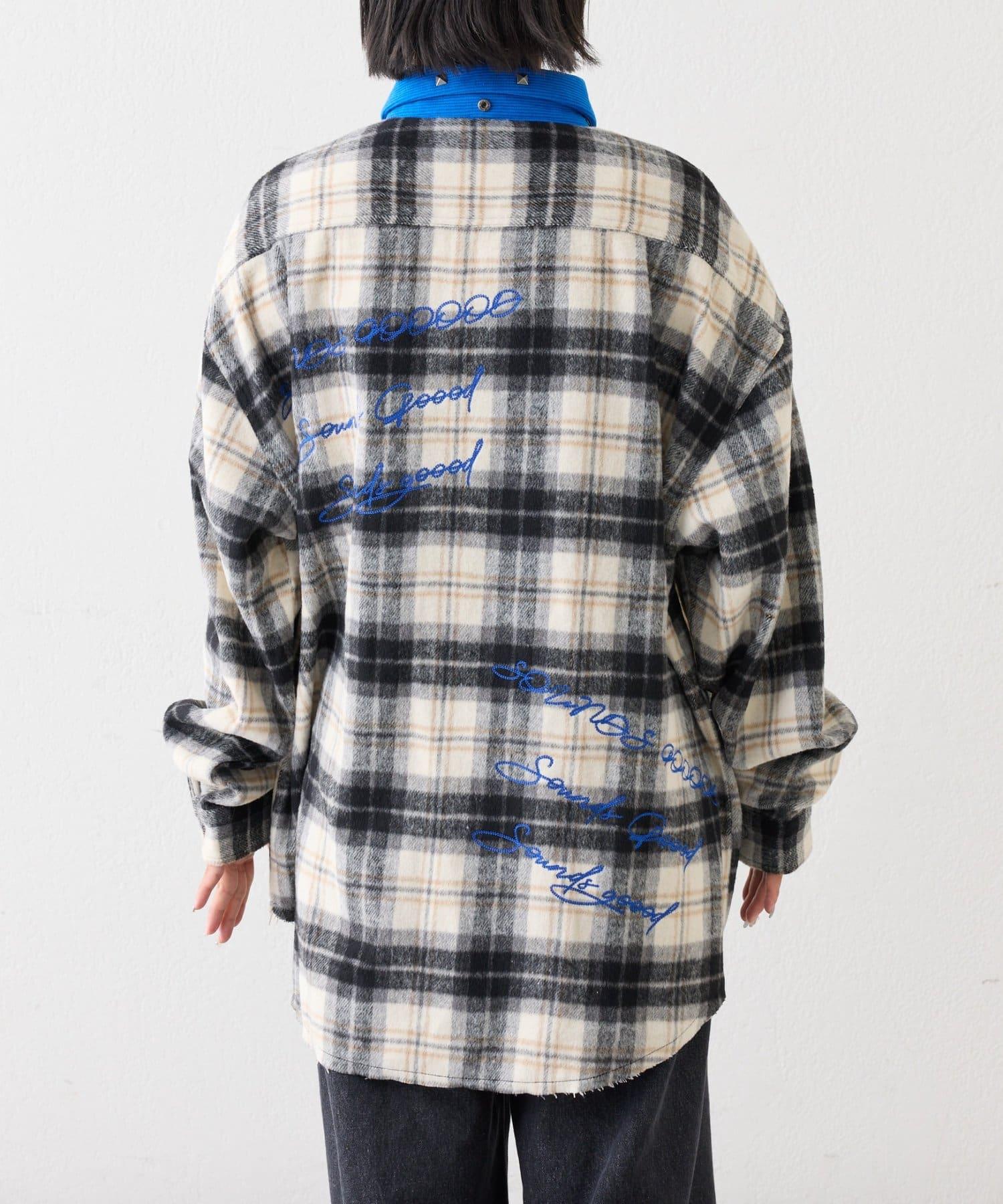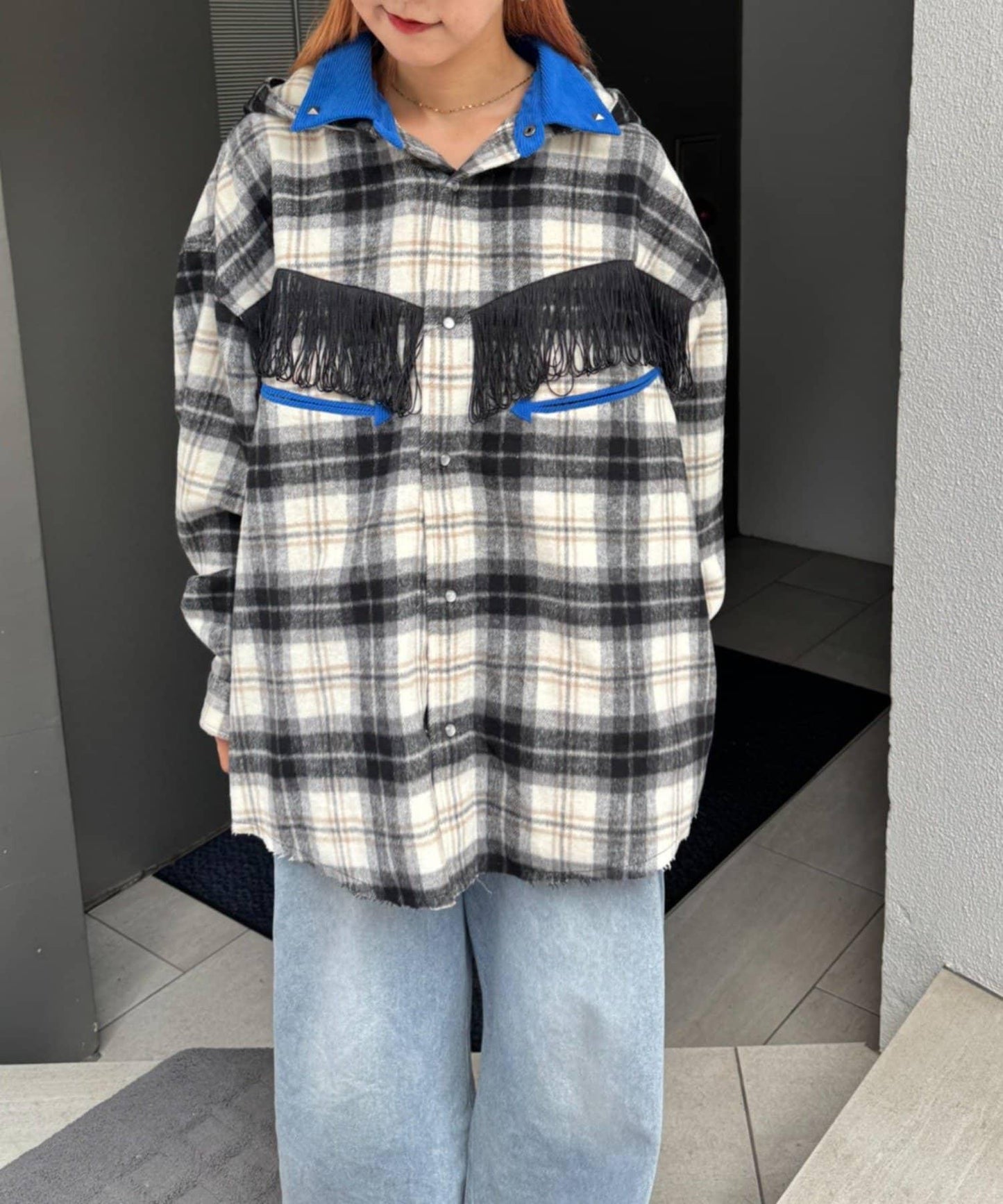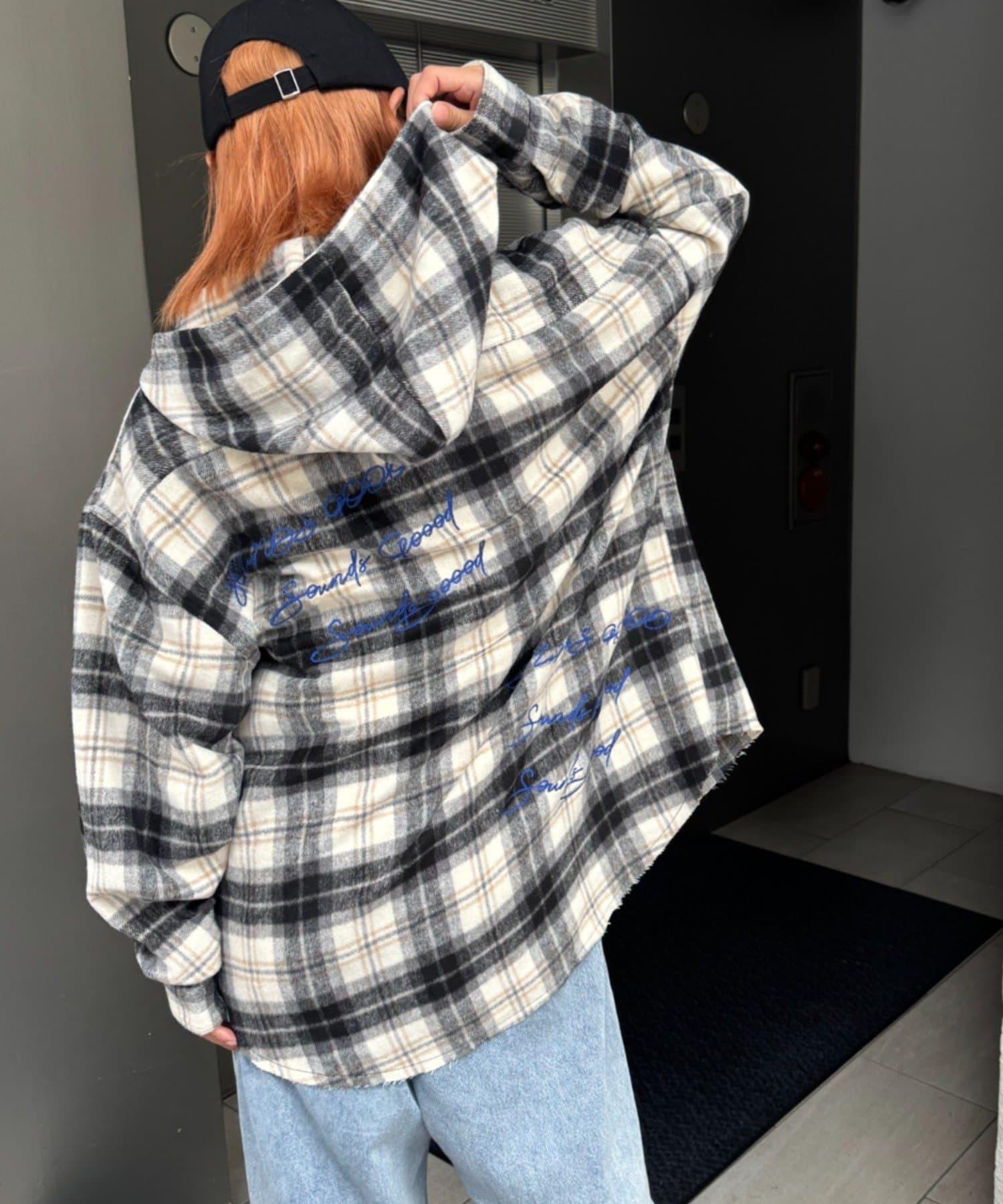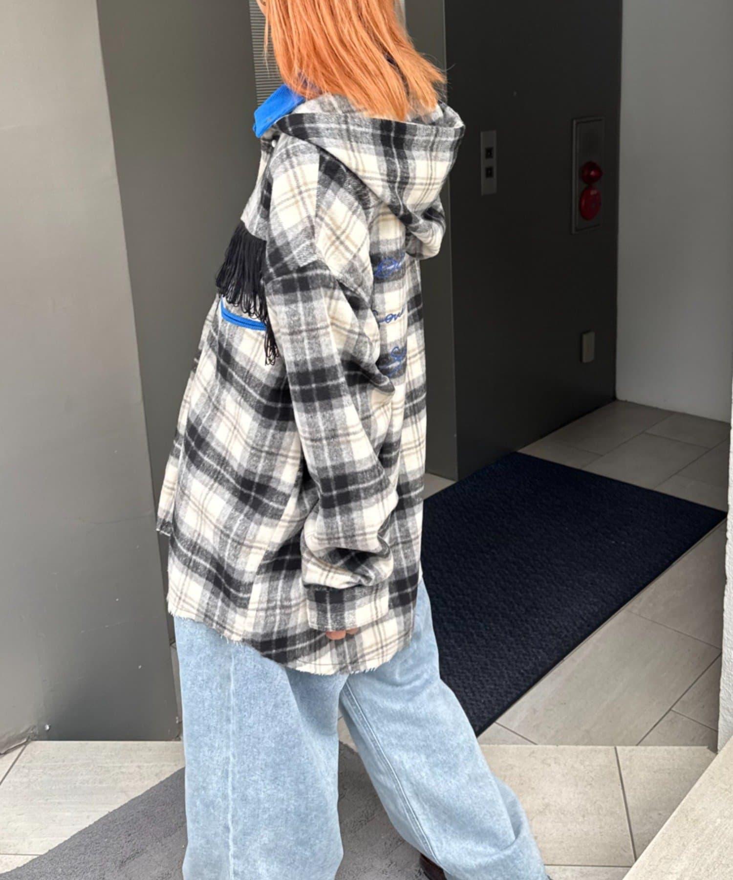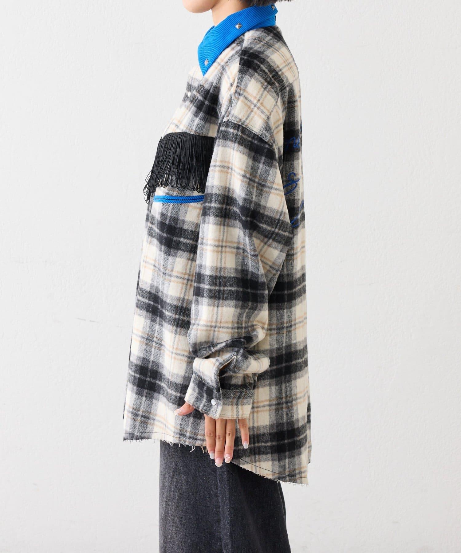 【SOUNDS GOOOOD】法蘭絨格紋刺繡流蘇連帽西部風襯衫