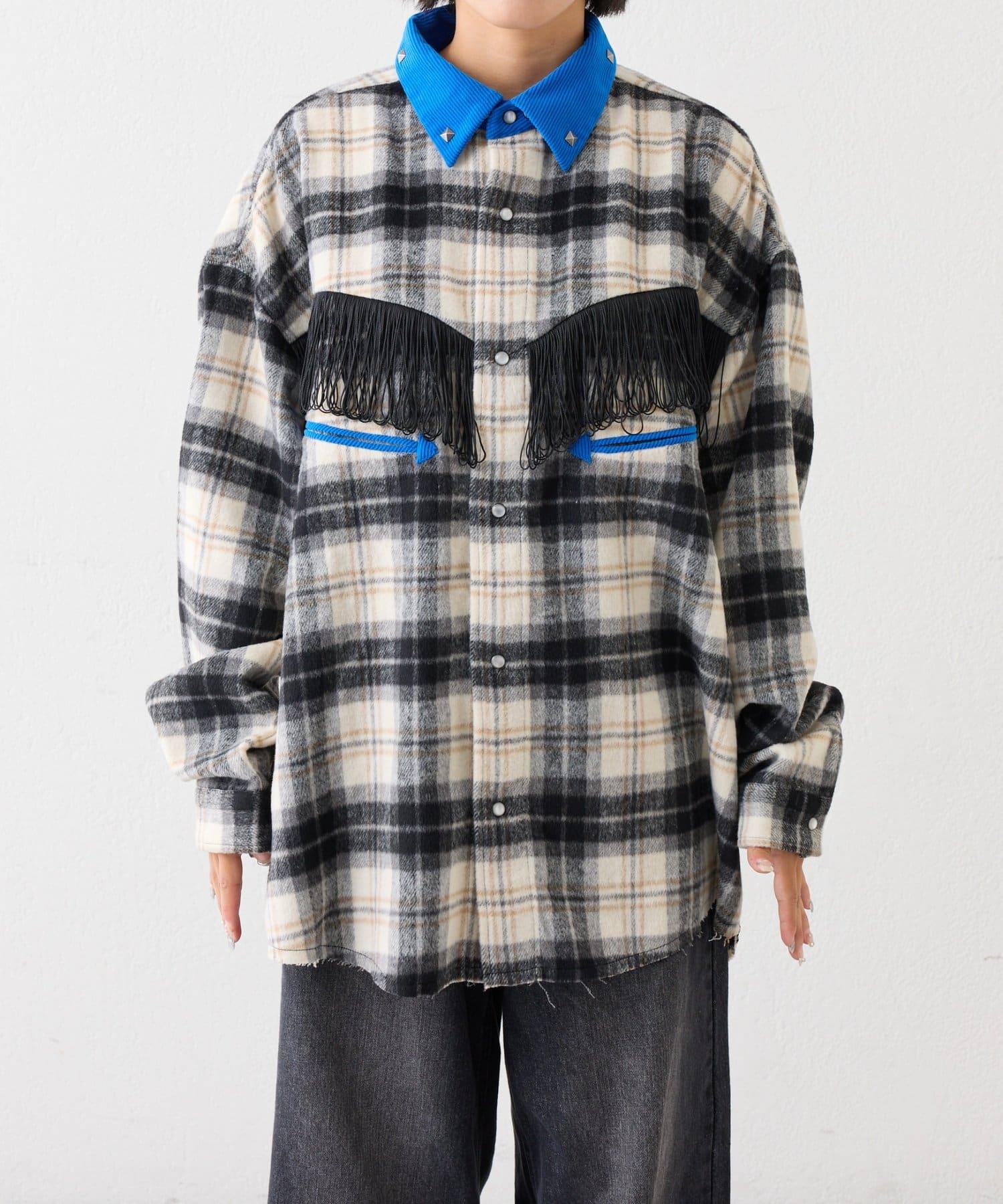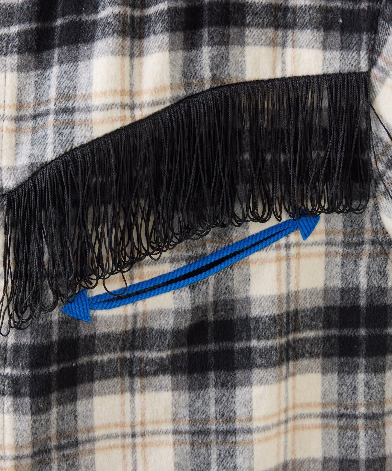 經典的法蘭絨格紋襯衫採用流蘇和藍色刺繡,盡顯西部風情。