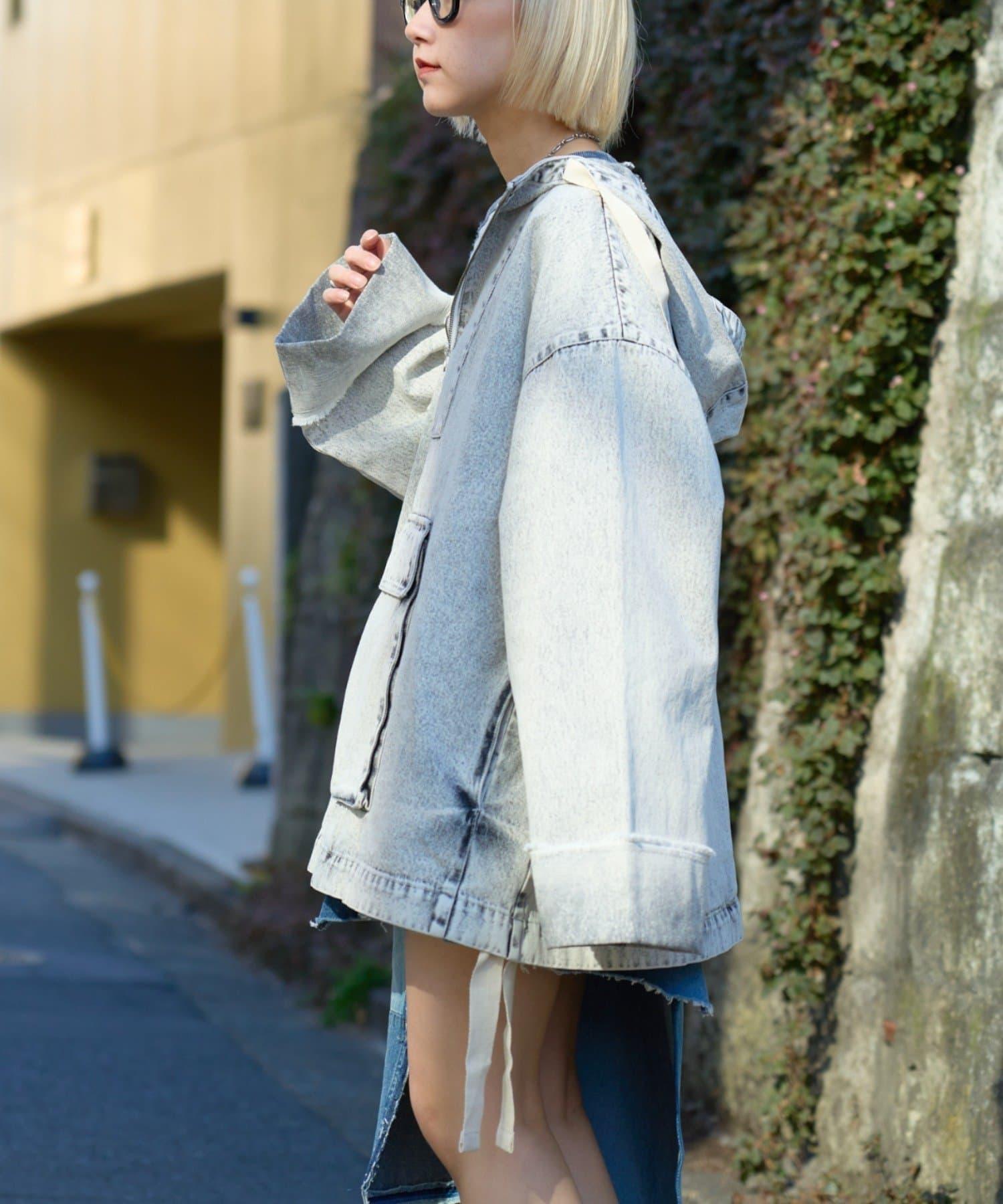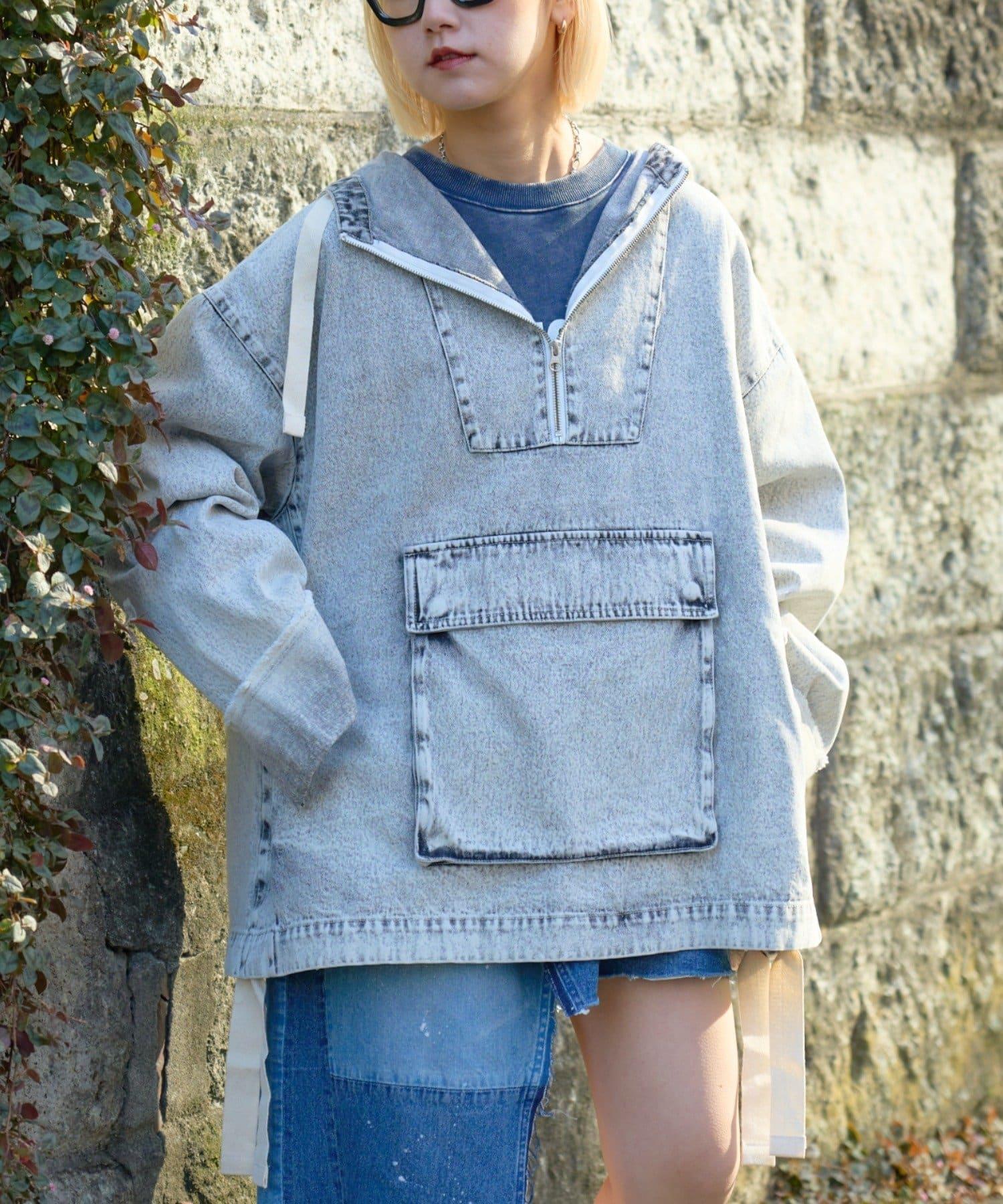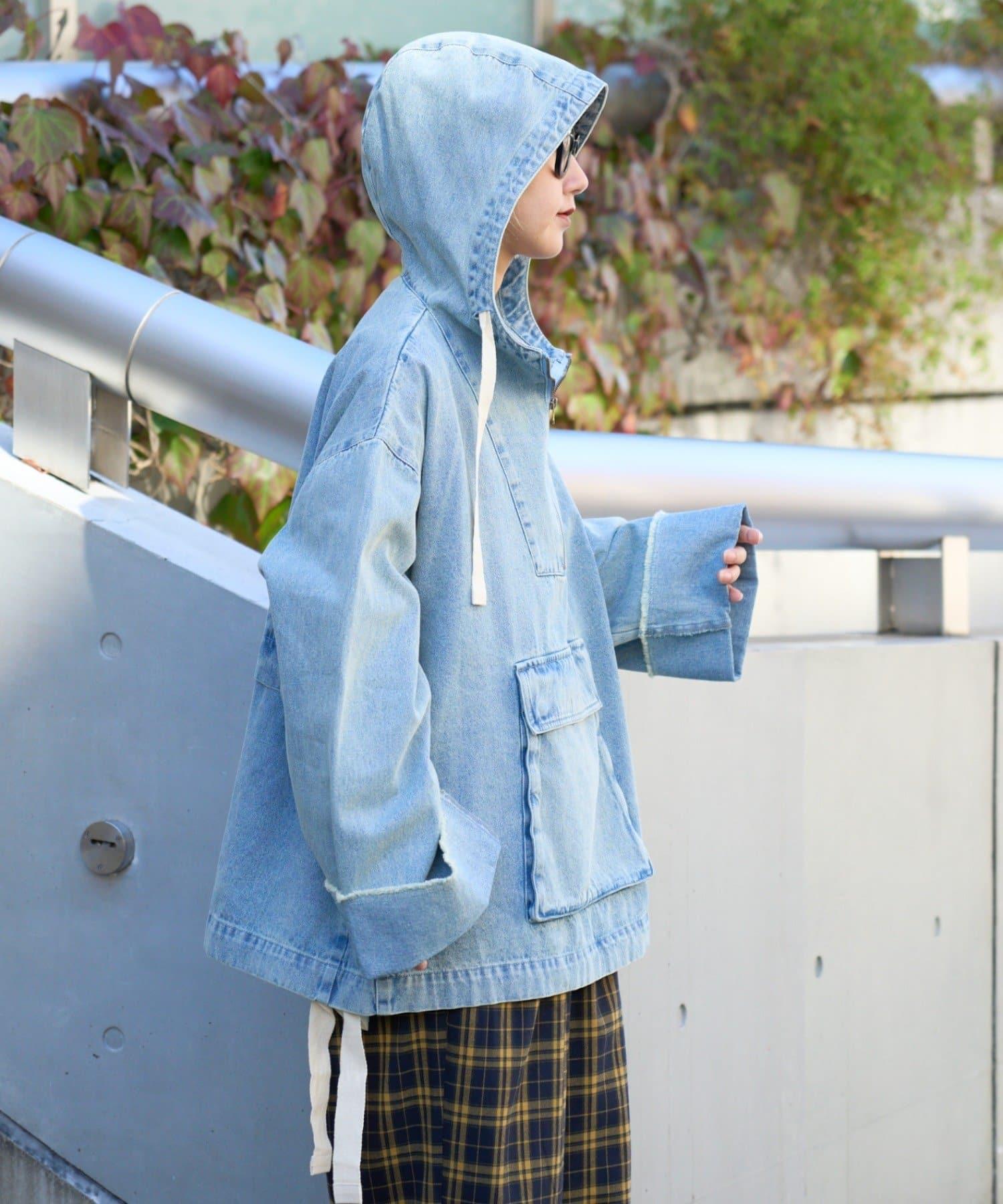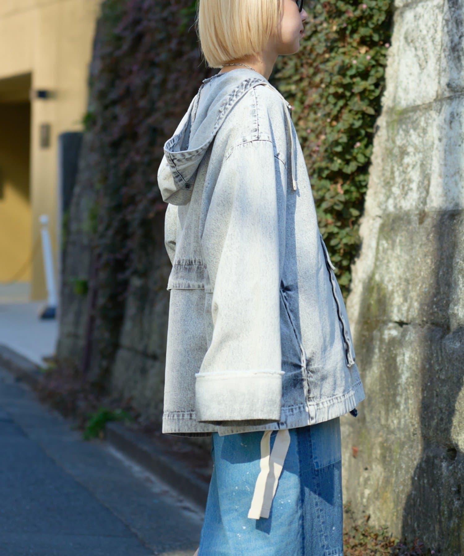 寬大的剪裁,老式的外觀。 牛仔風衣夾克!