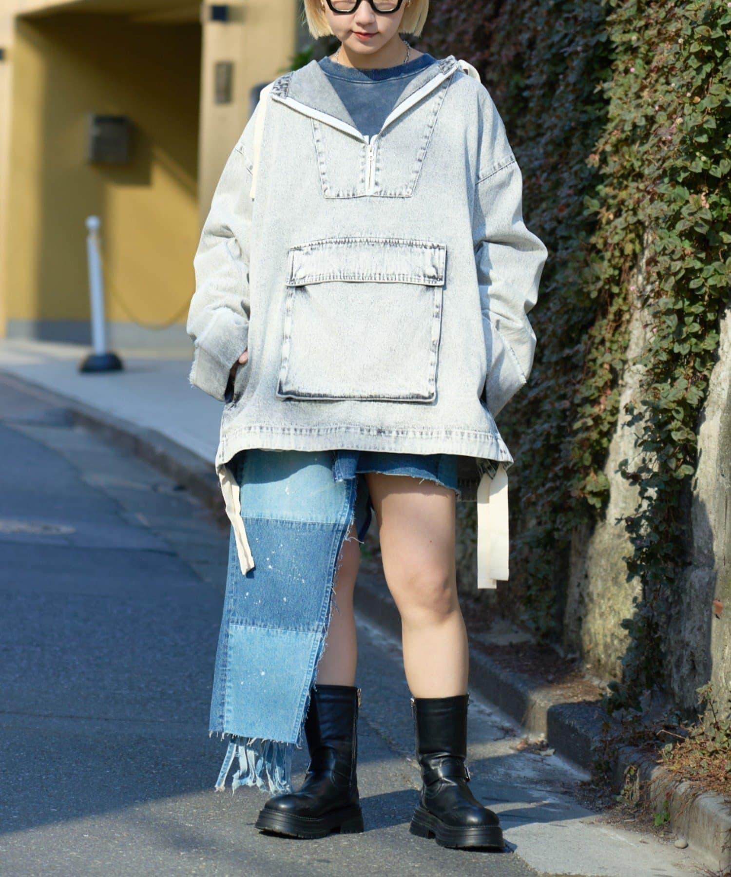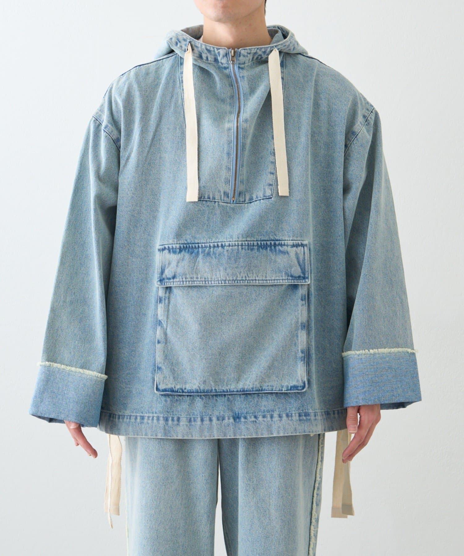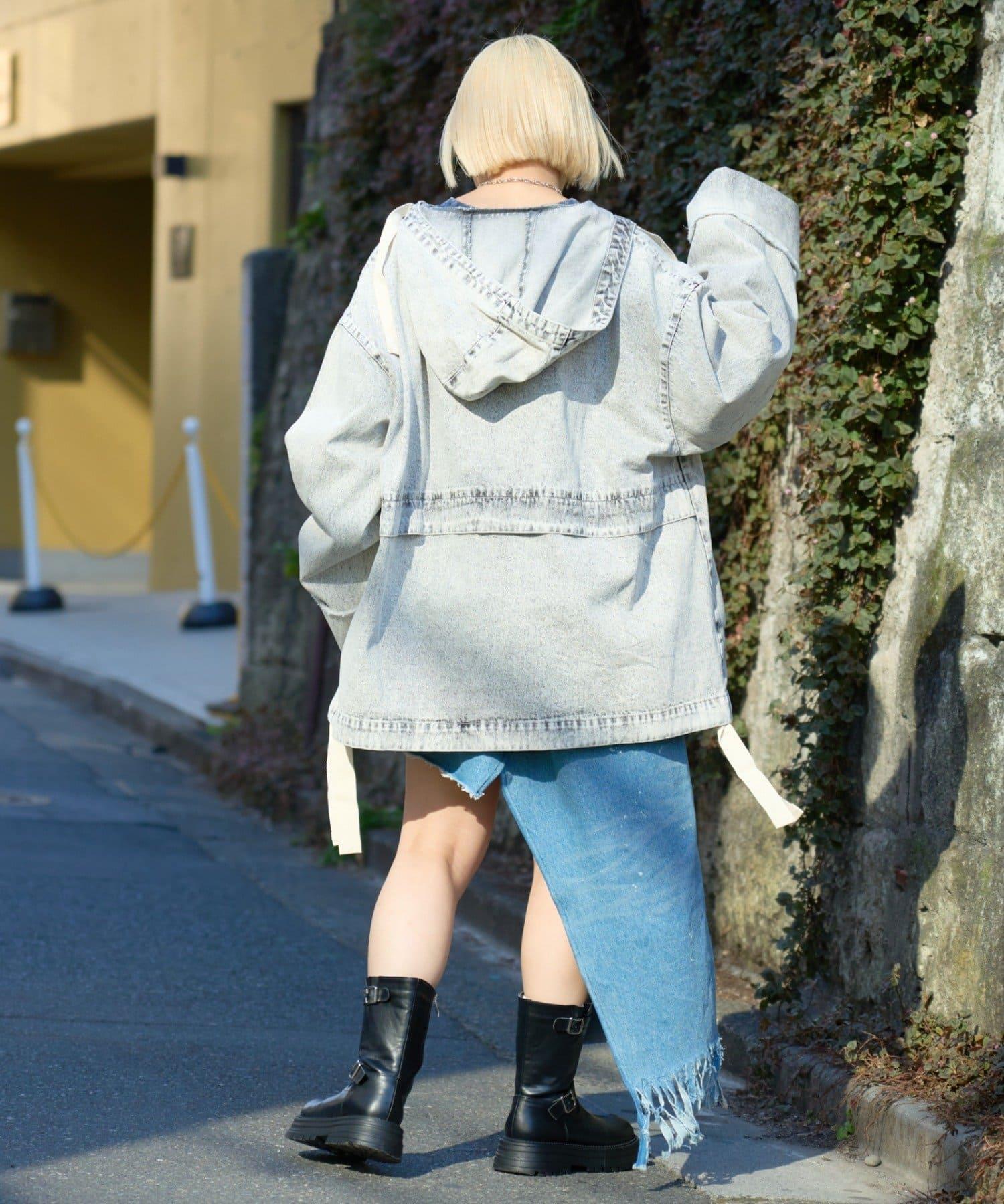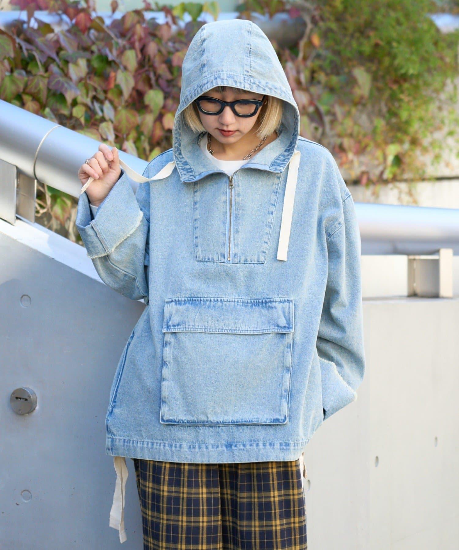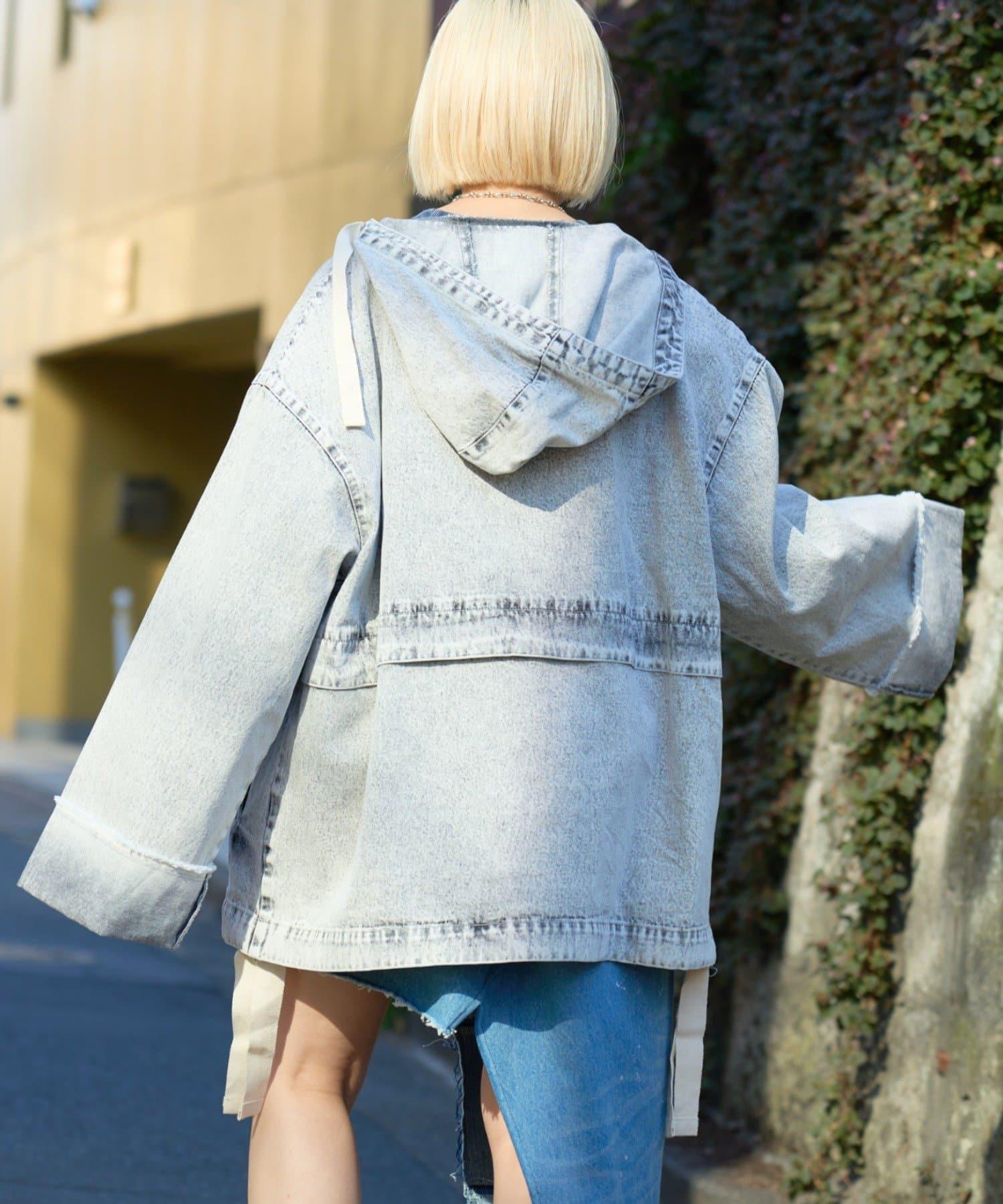 寬大的剪裁,老式的外觀。 牛仔風衣夾克!