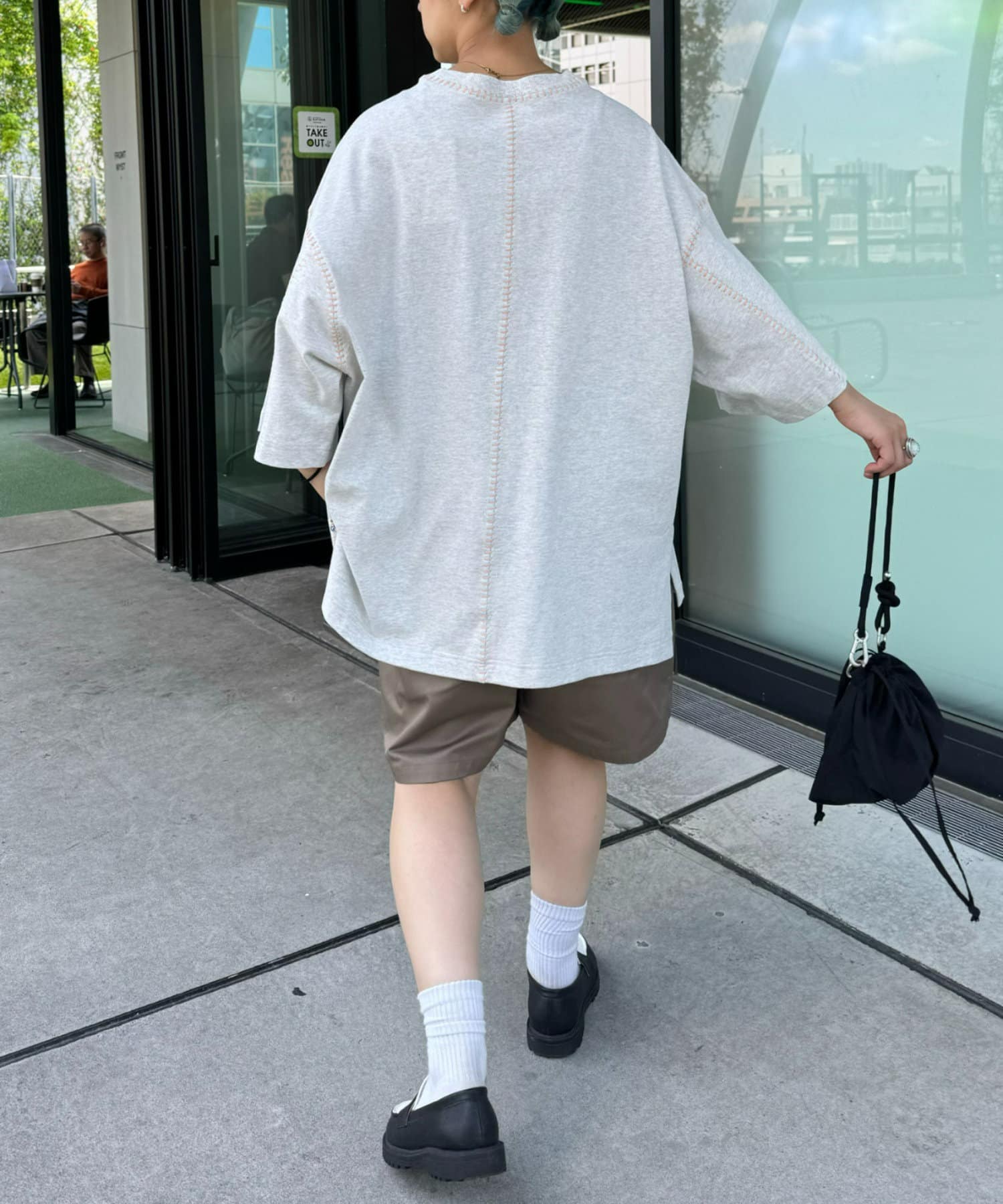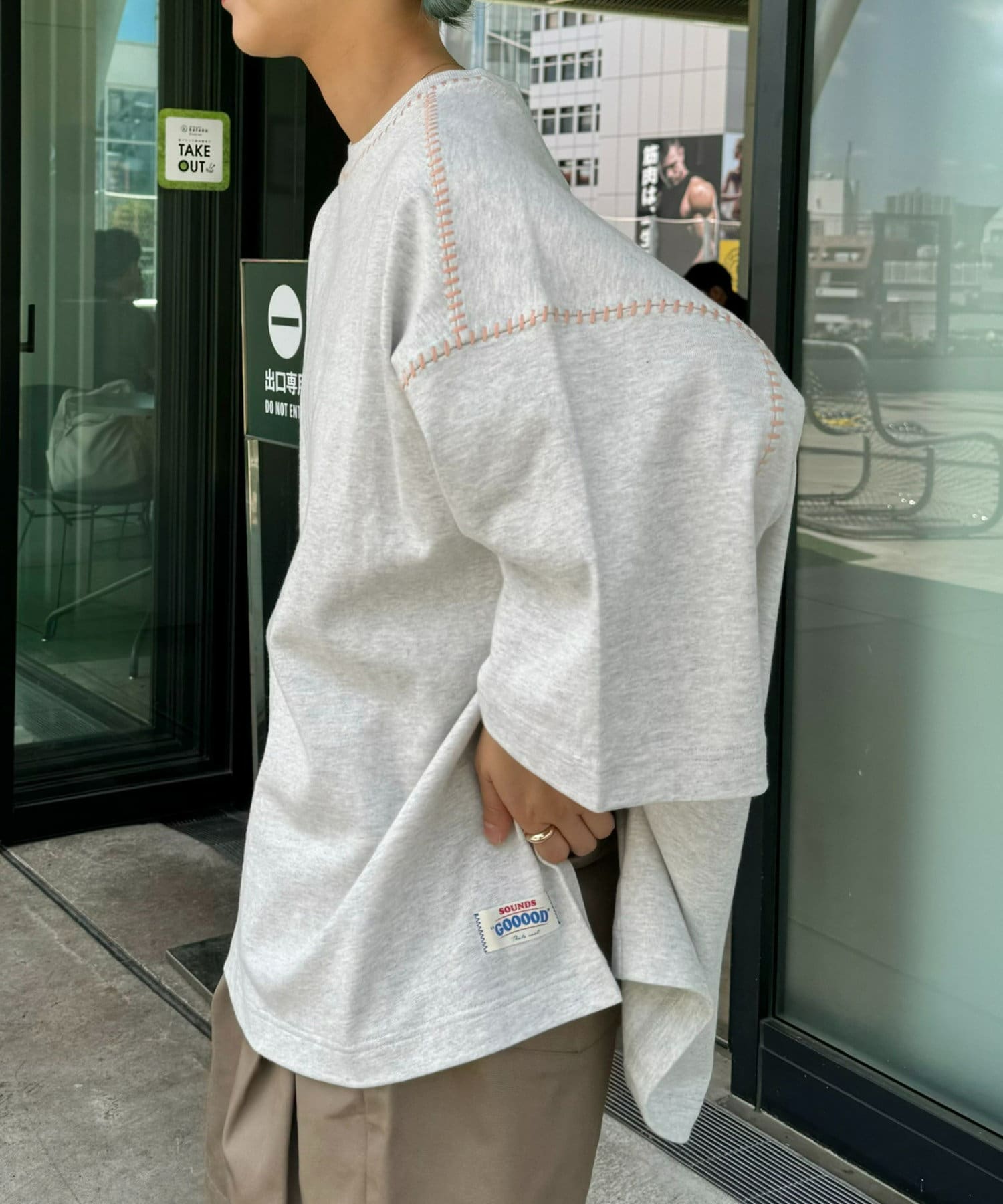 【SOUNDS GOOOOD / 聲音不錯】配色縫線側開叉T恤 短袖