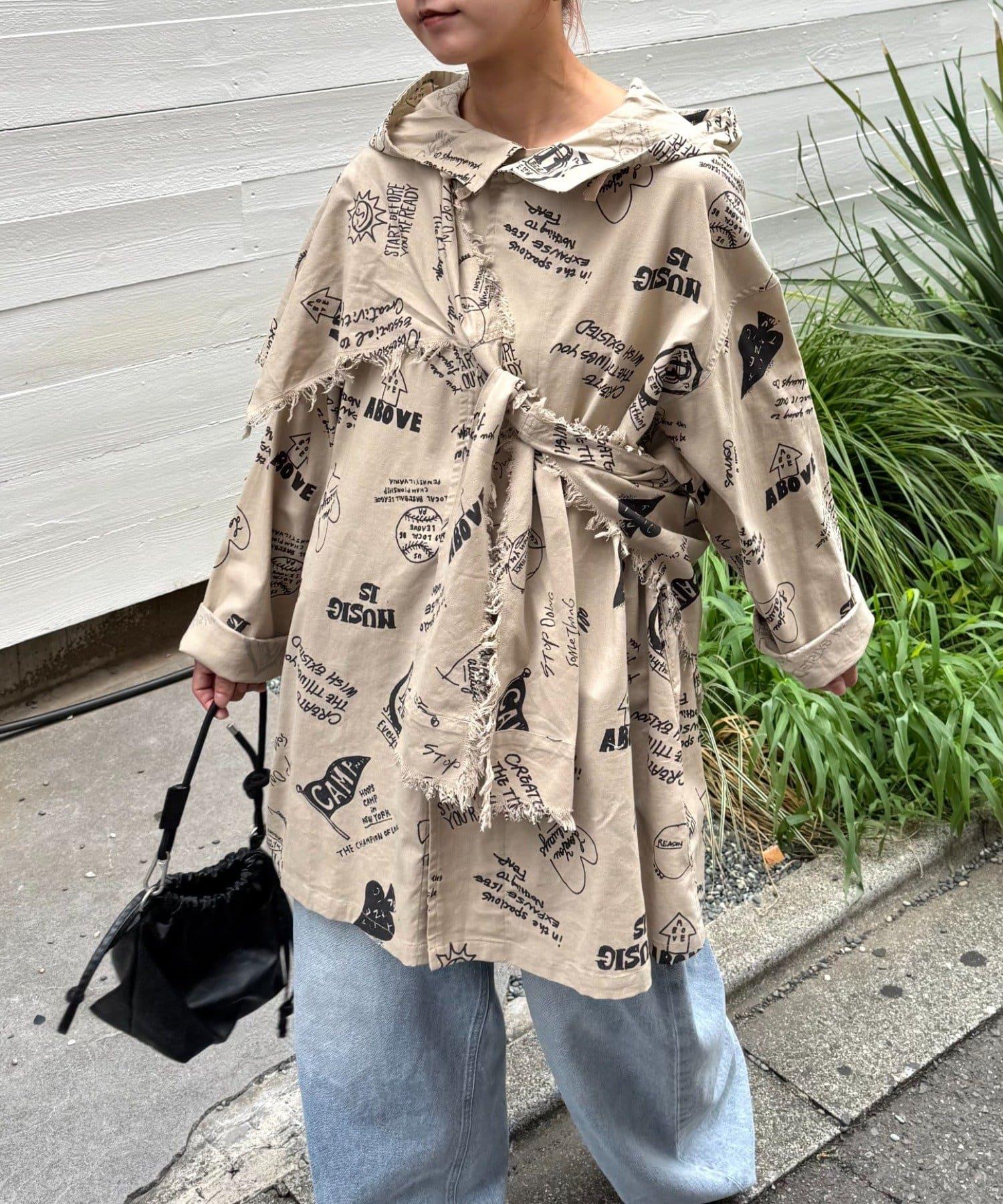 【SOUNDSGOOOOD】(套裝商品)繪畫睡眠連帽襯衫外套&多功能裙