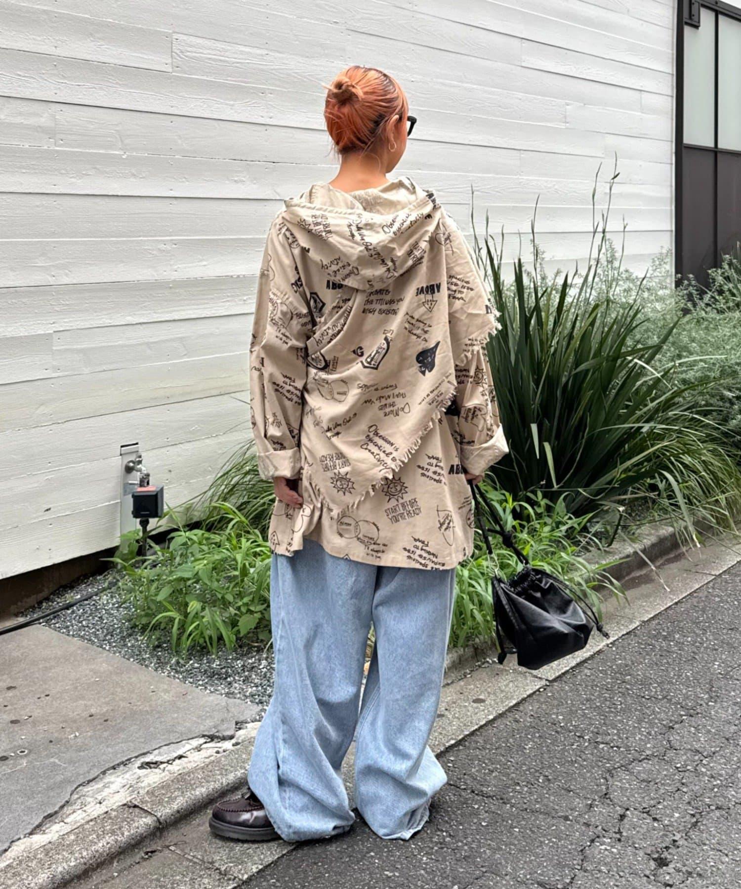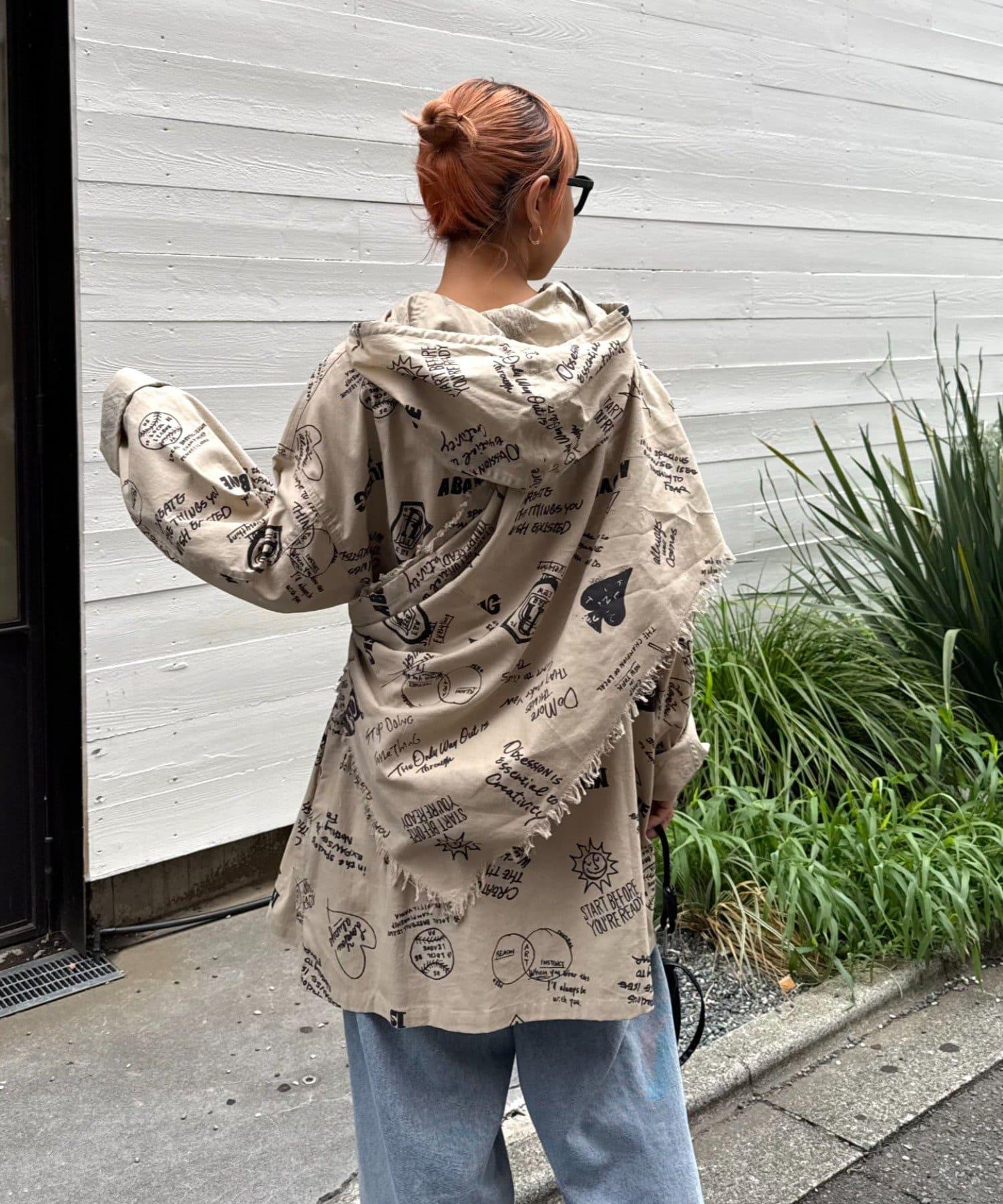 這是一款連帽襯衫外套,手繪圖案十分搶眼,存在感十足。