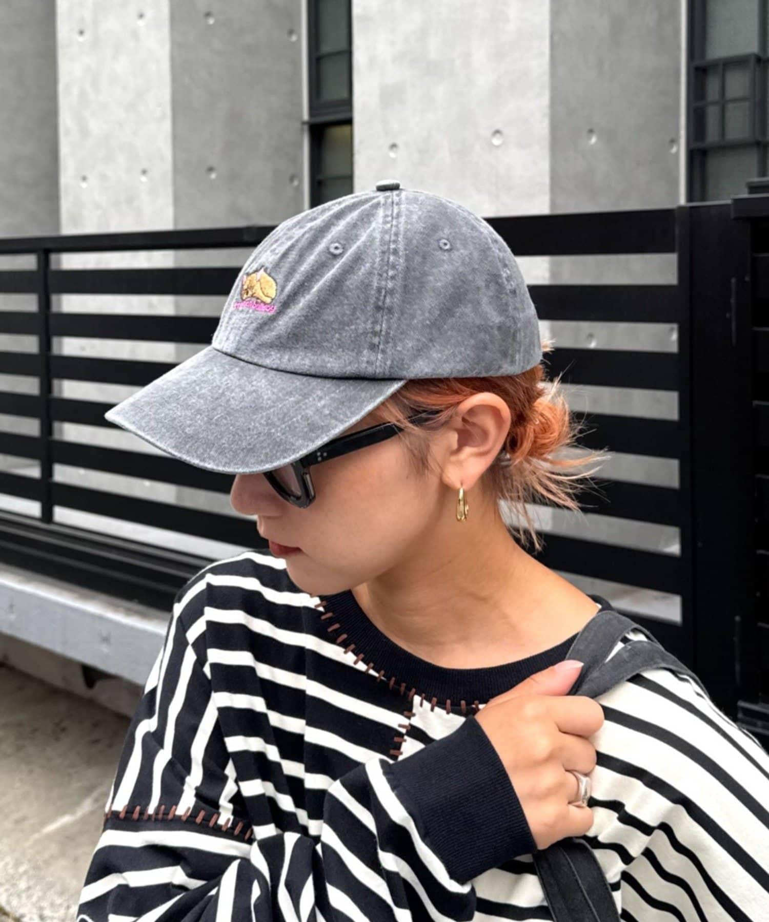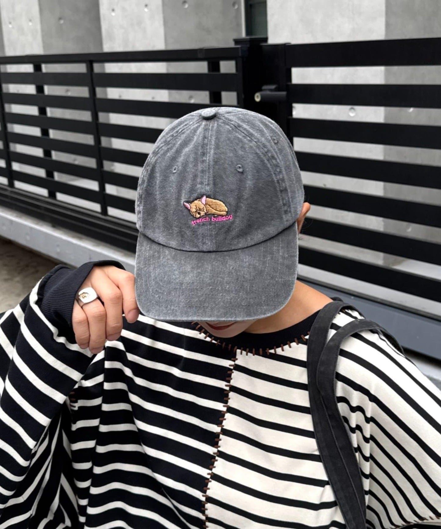 一款中性的狗刺繡鴨舌帽,增添了幾分俏皮。