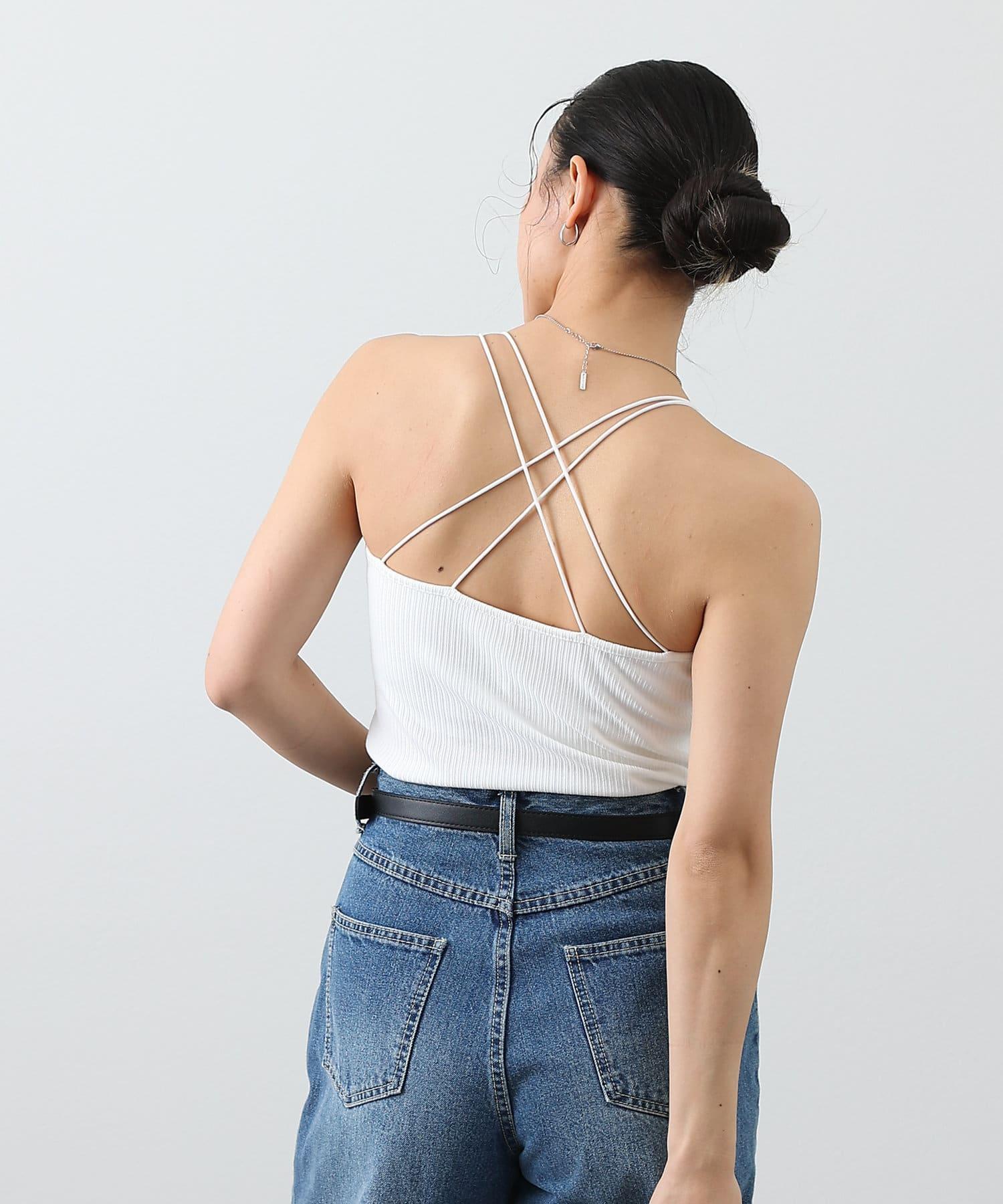 帶罩杯的後交叉肩帶吊帶衫,展現女性柔美的背部曲線。