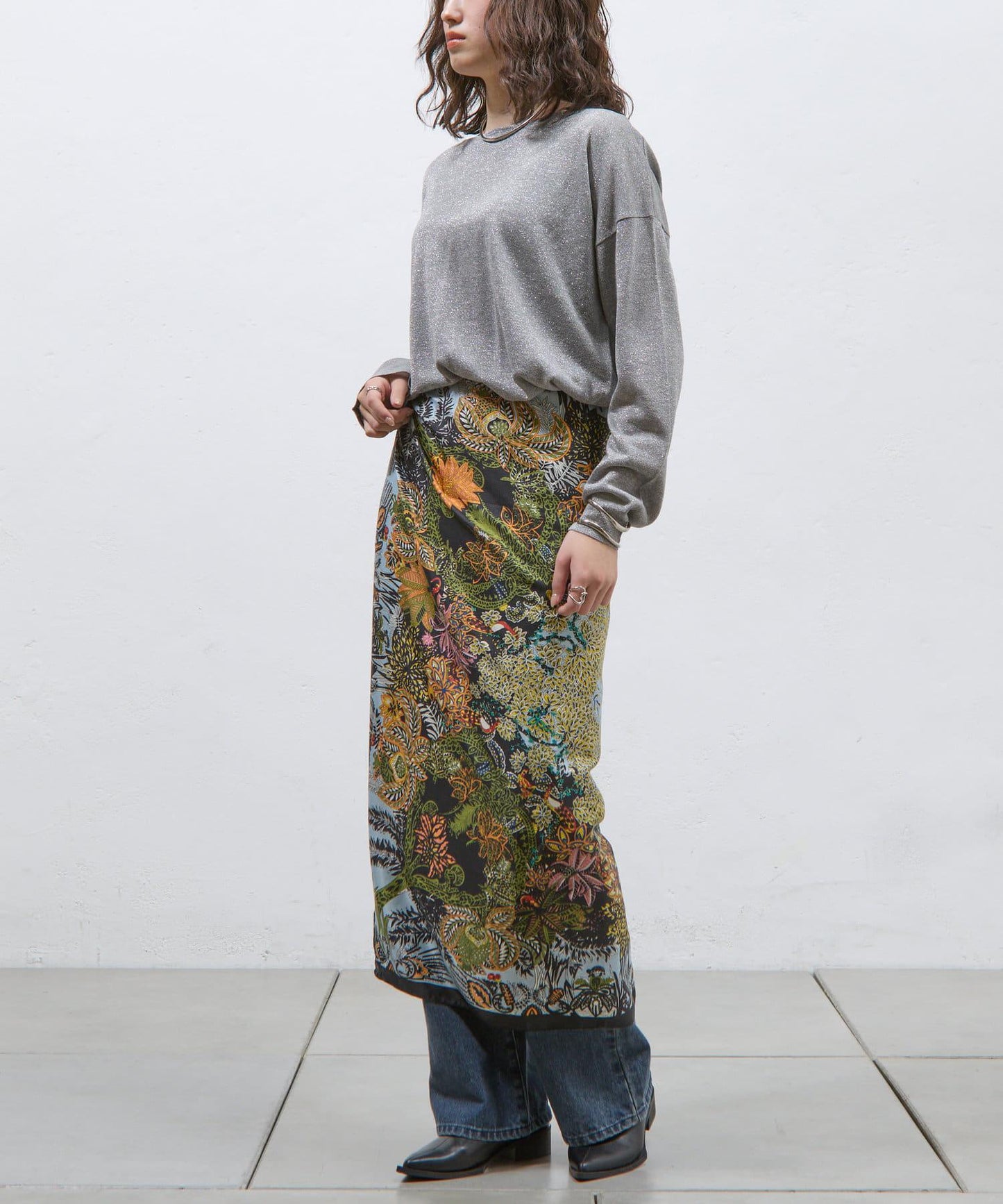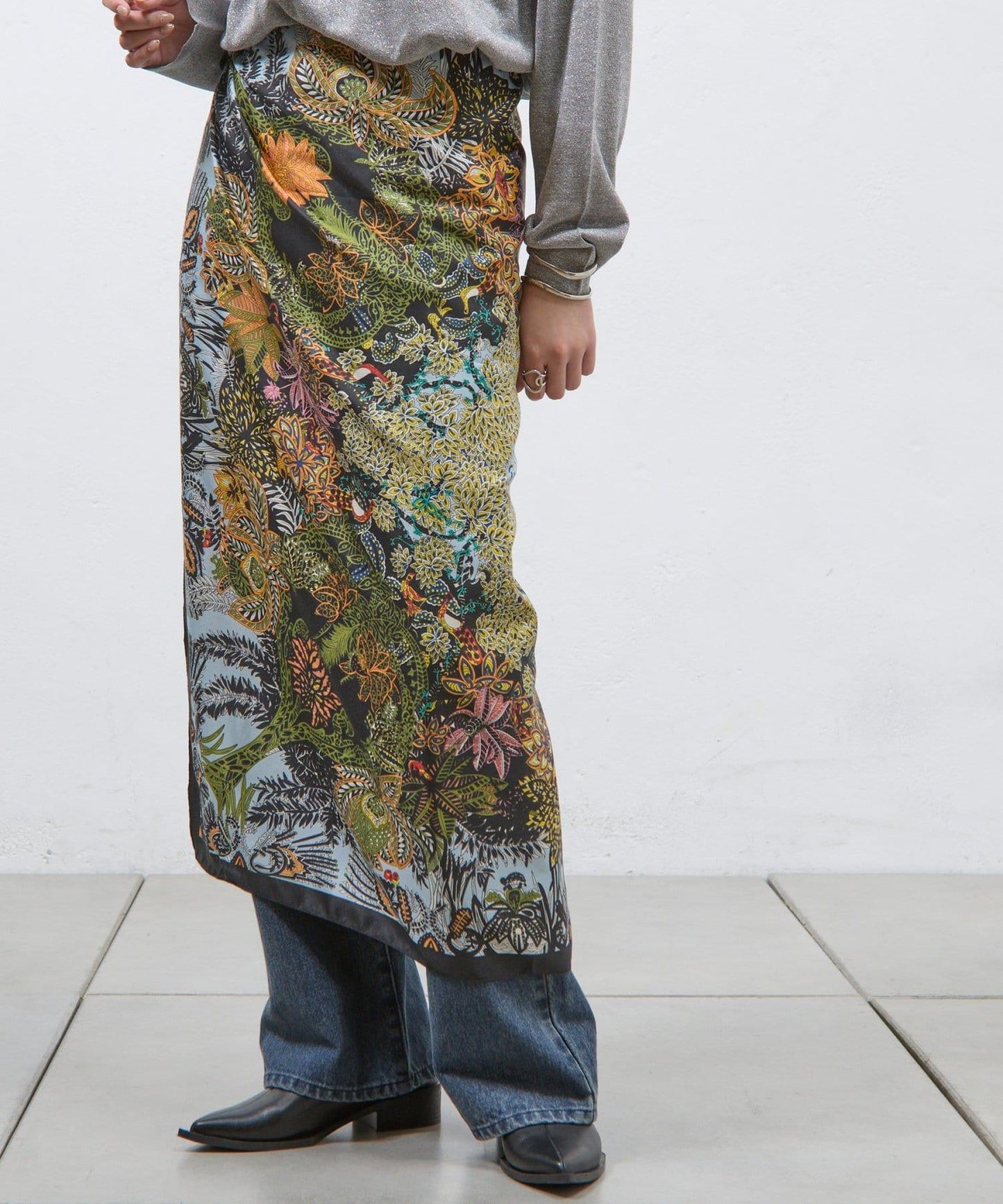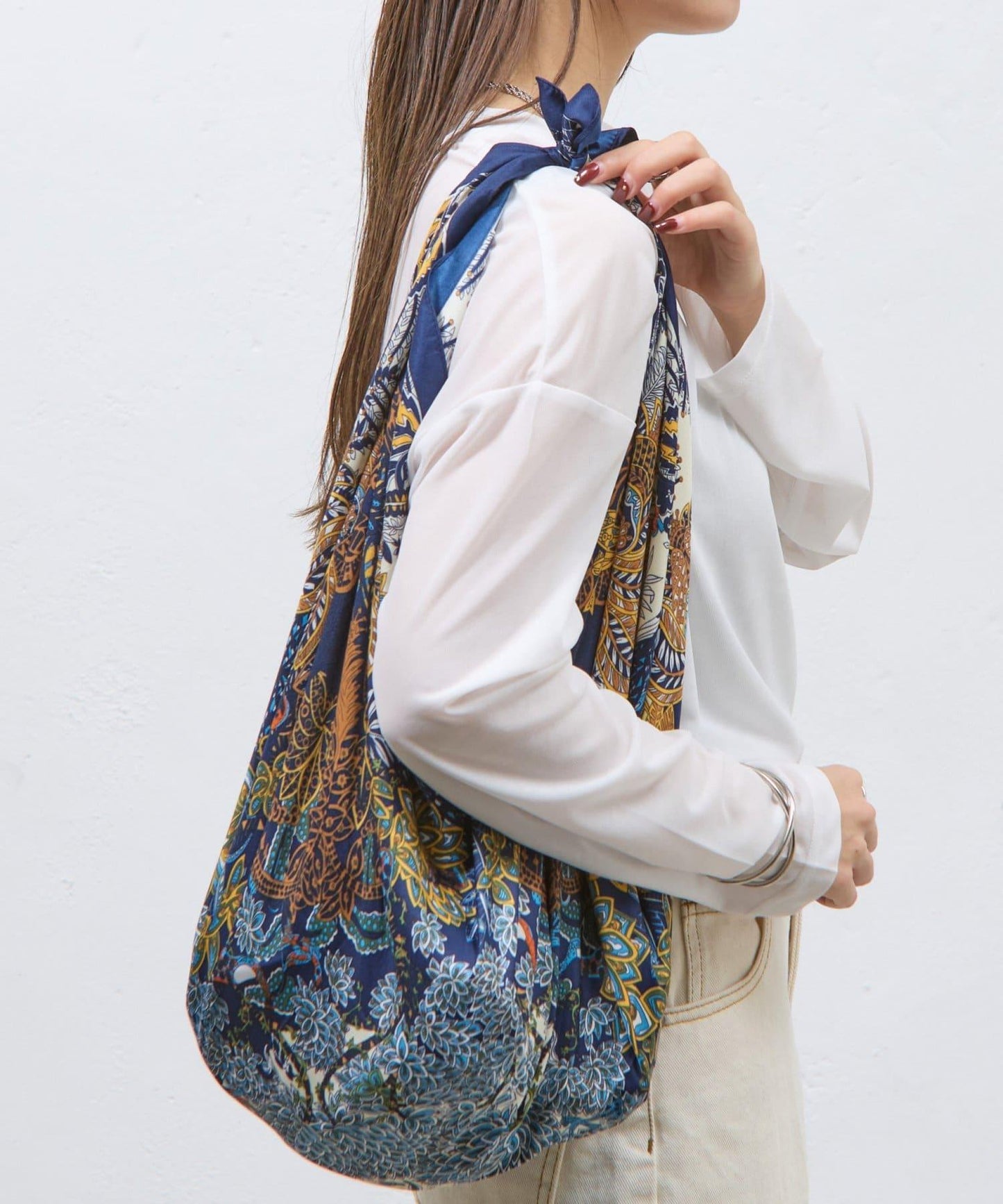 植物圖案圍巾,配色優雅。