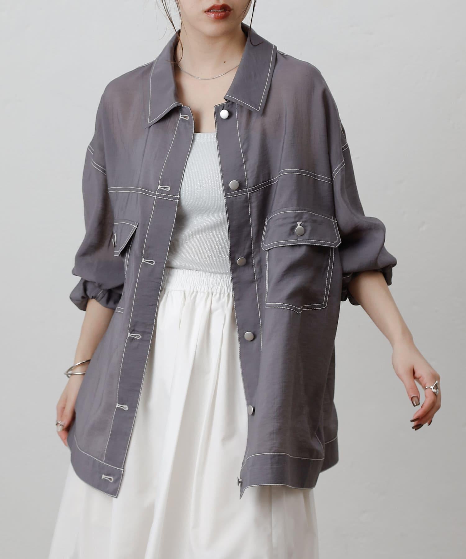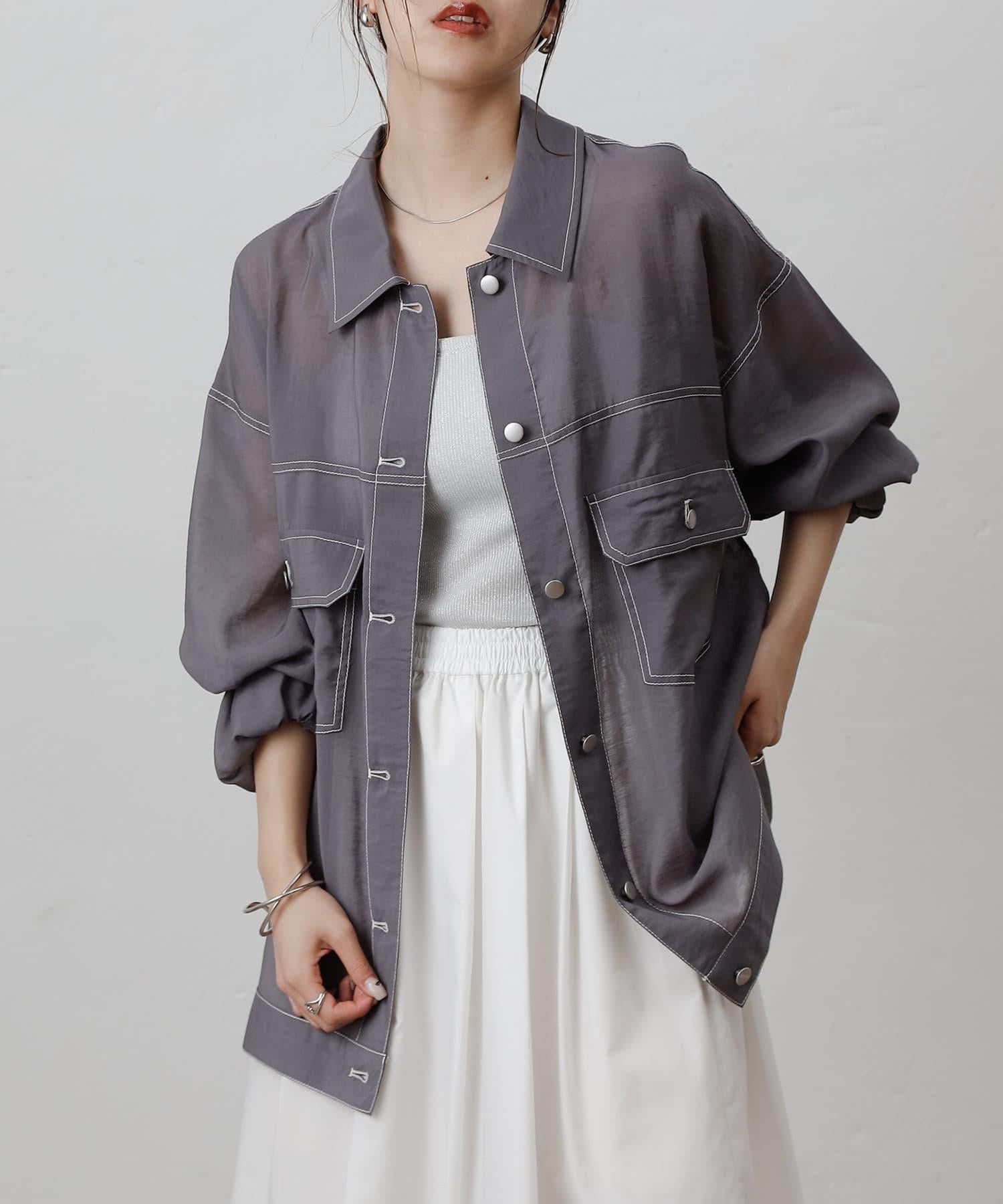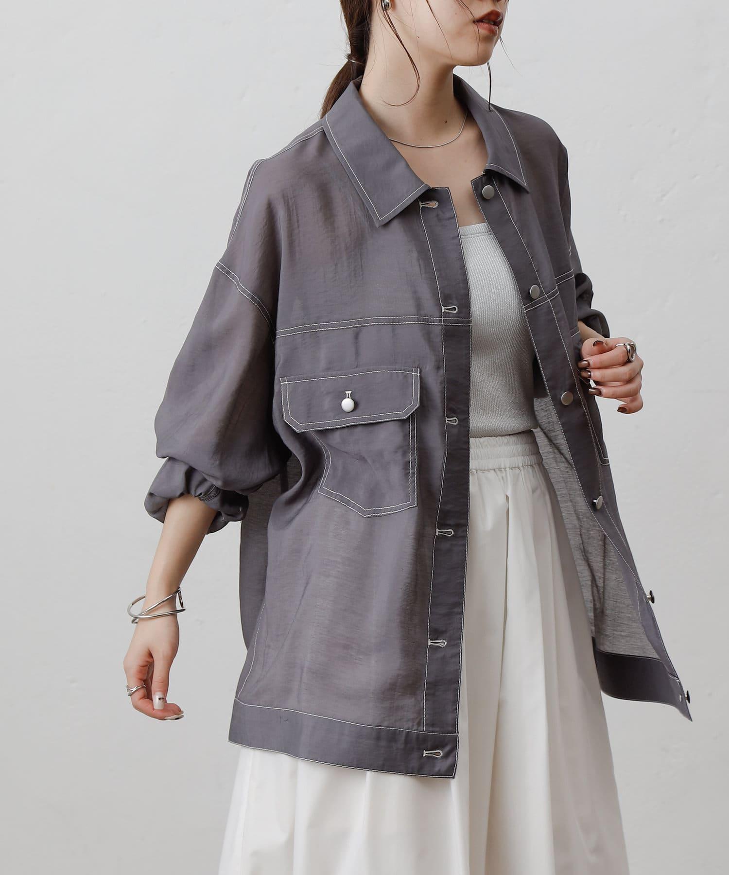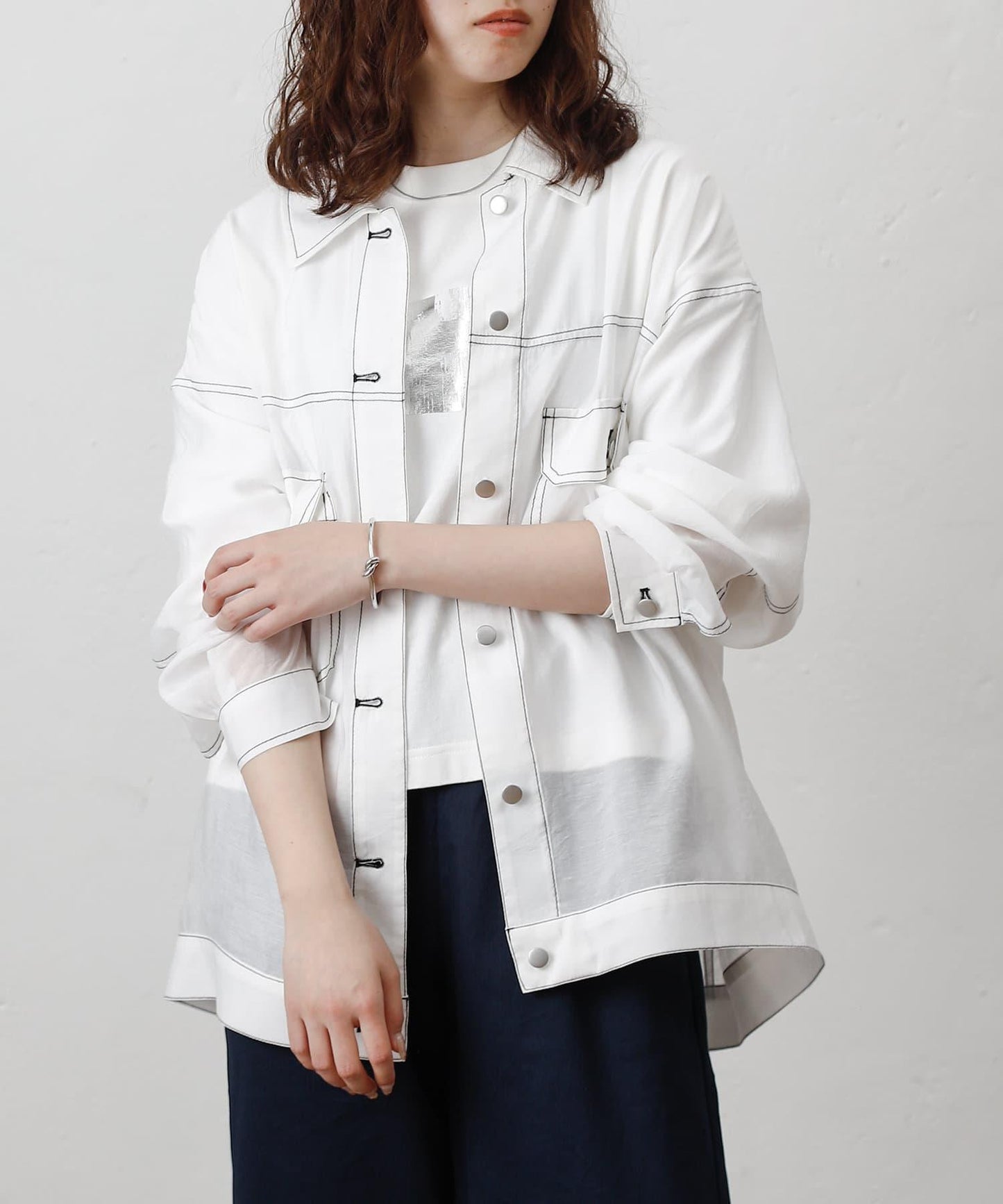 作為 G 字褲款式的透視襯衫,它比夾克更輕盈,作為斗篷也很活躍,給人一種得體的感覺。