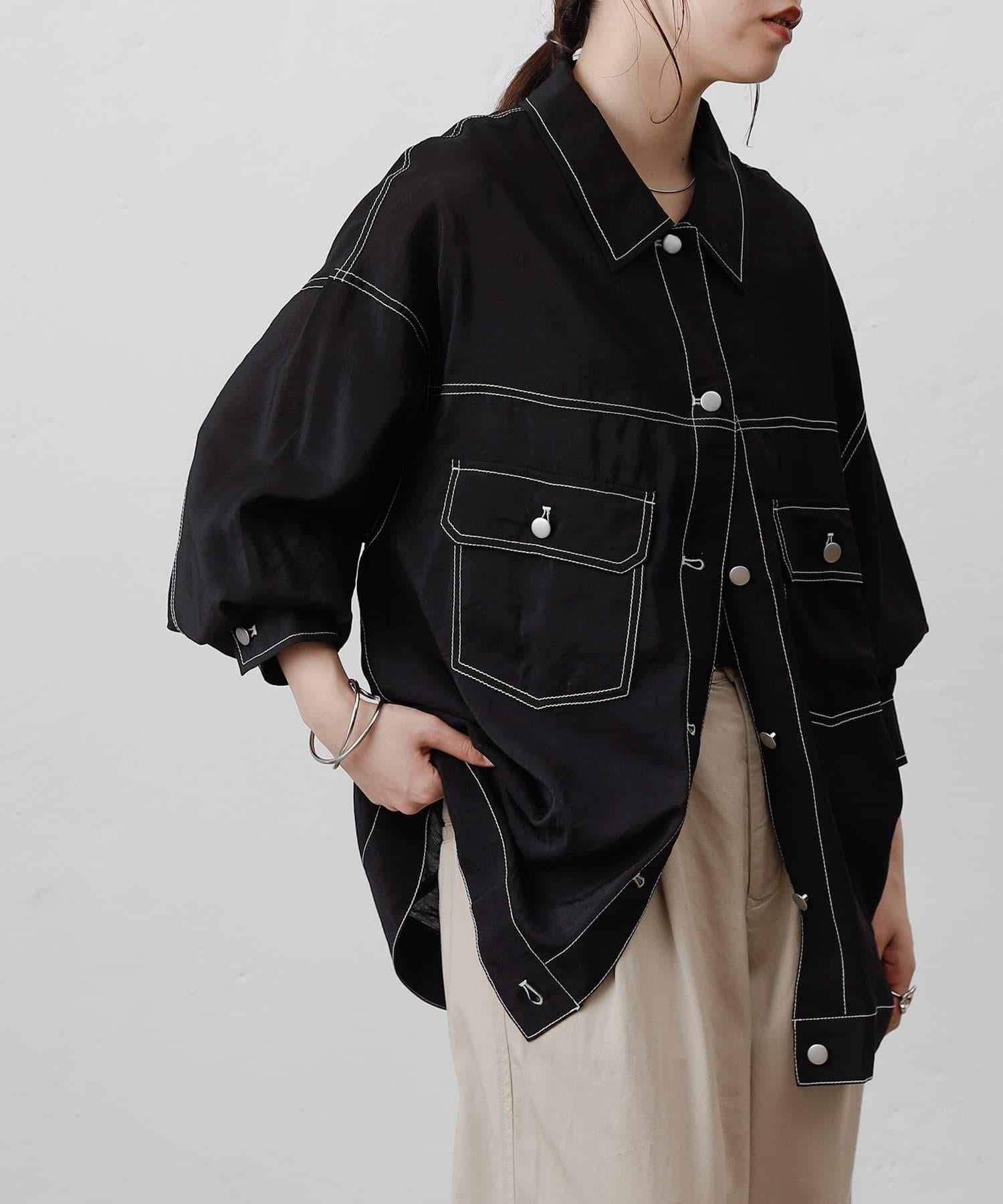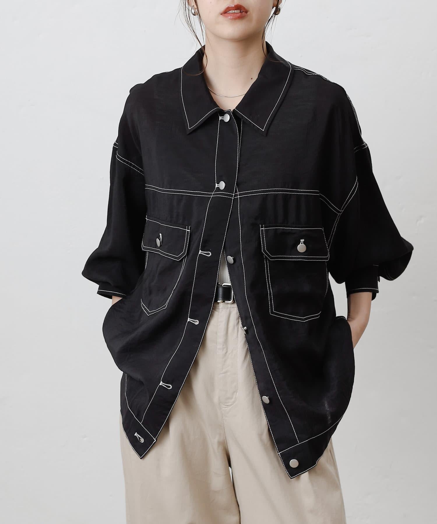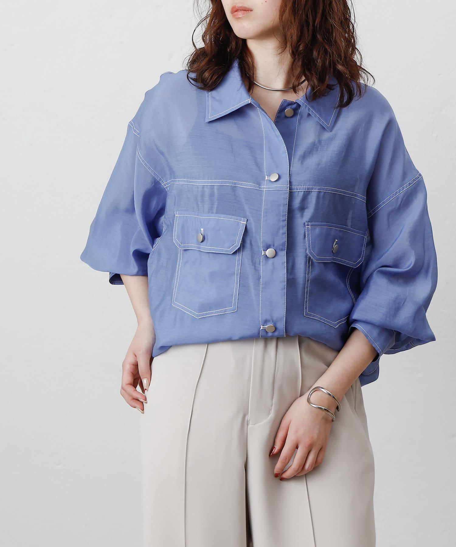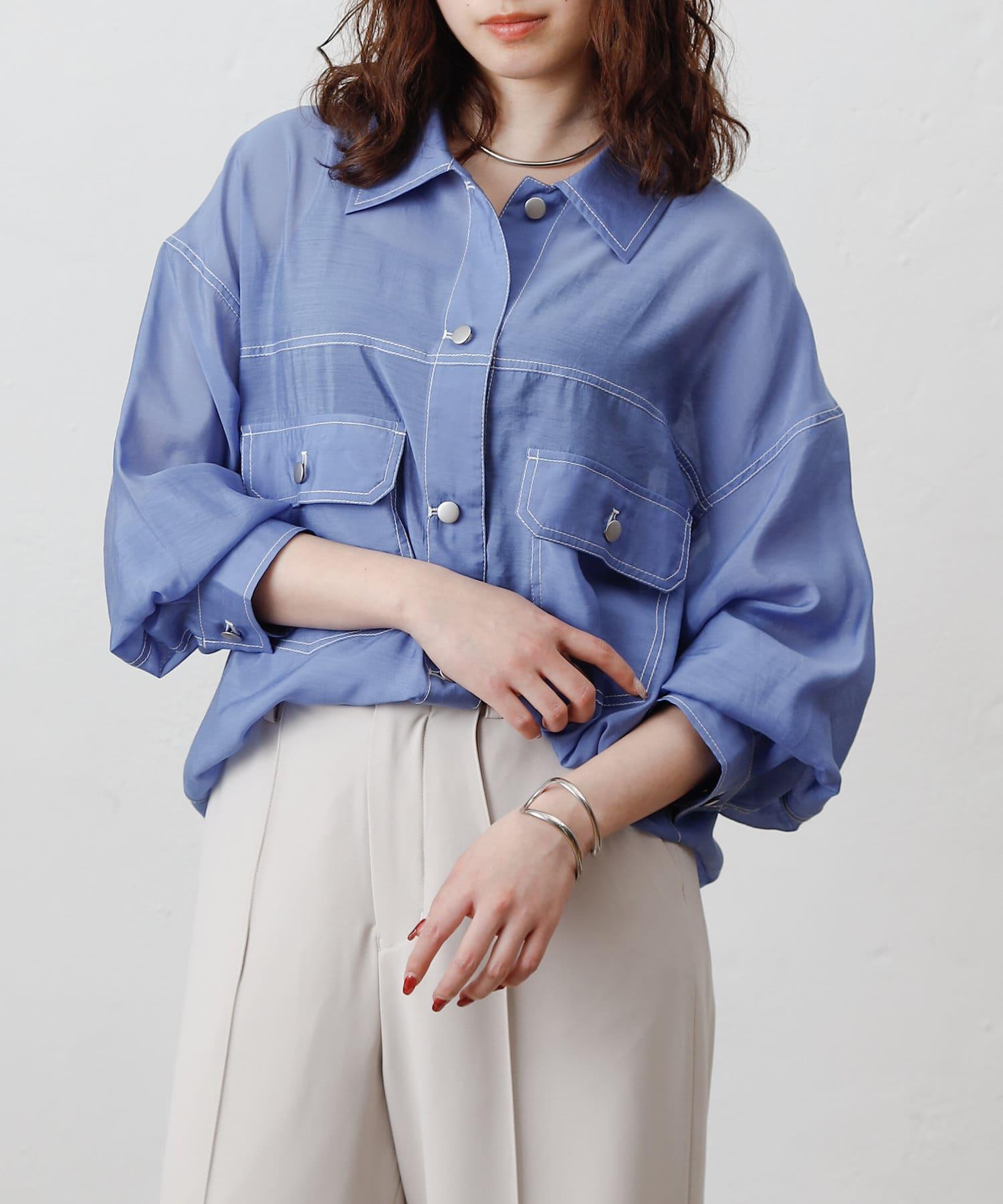 作為 G 字褲款式的透視襯衫,它比夾克更輕盈,作為斗篷也很活躍,給人一種得體的感覺。