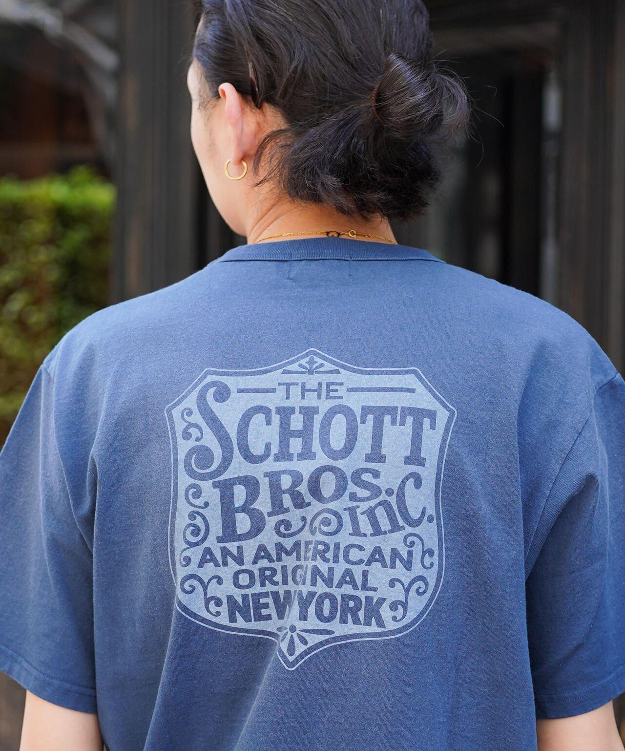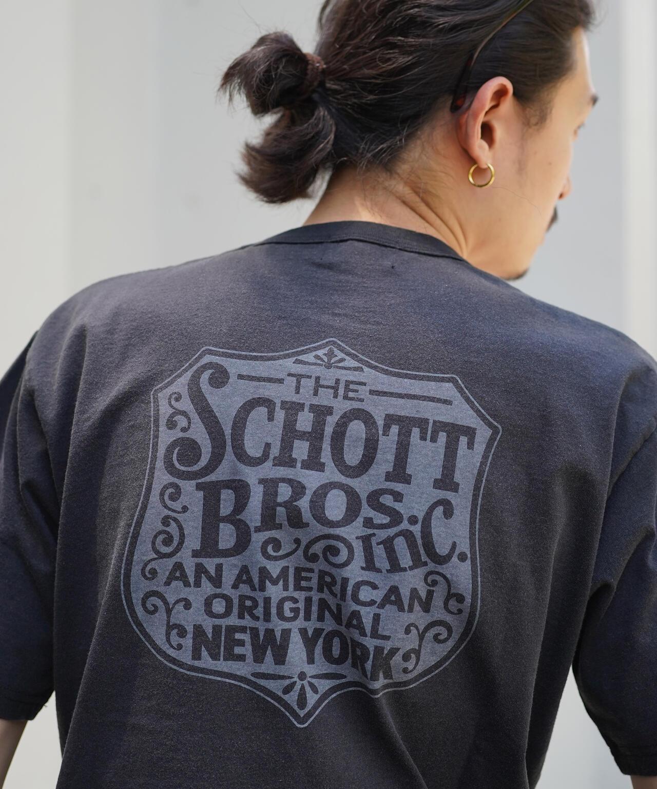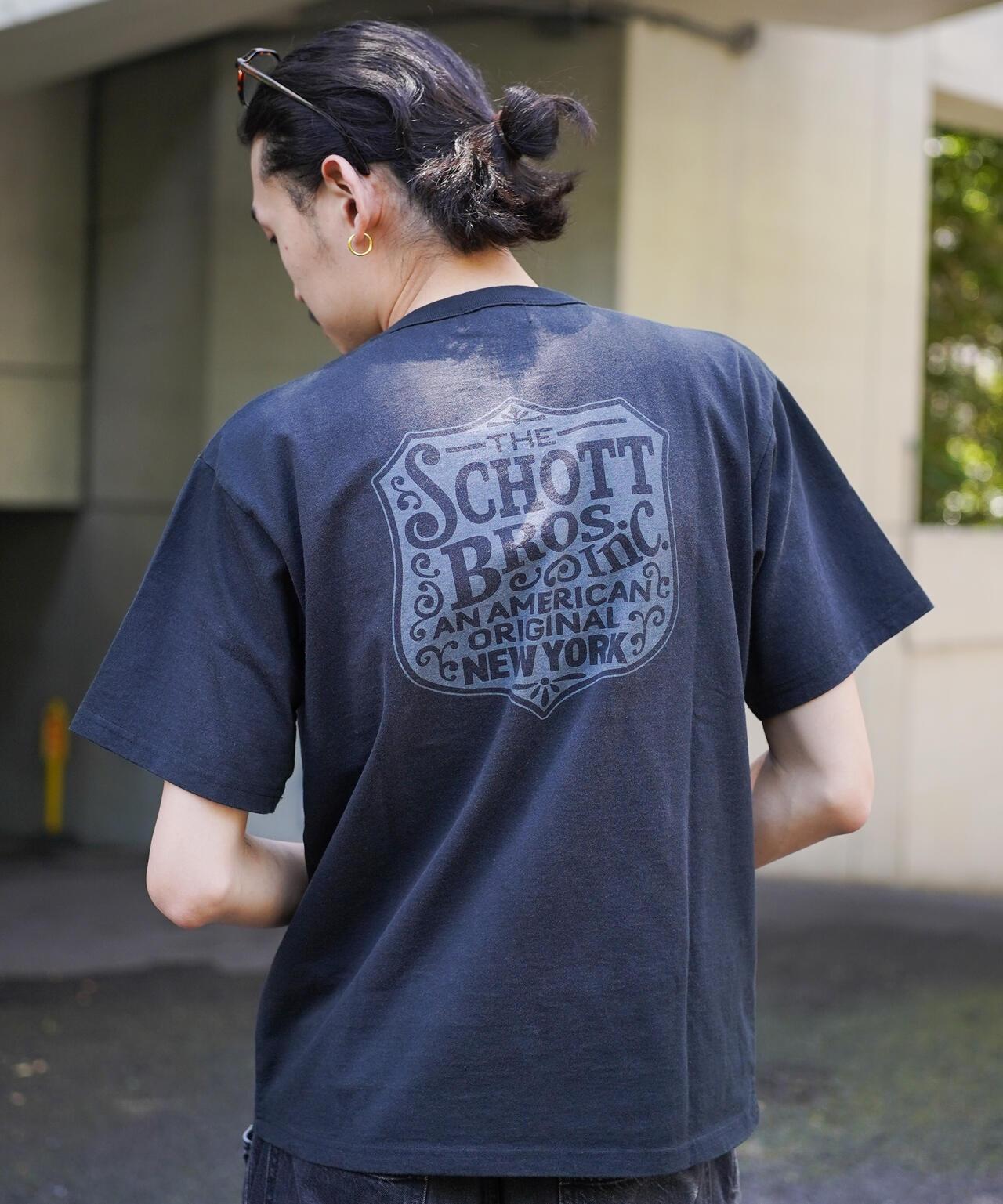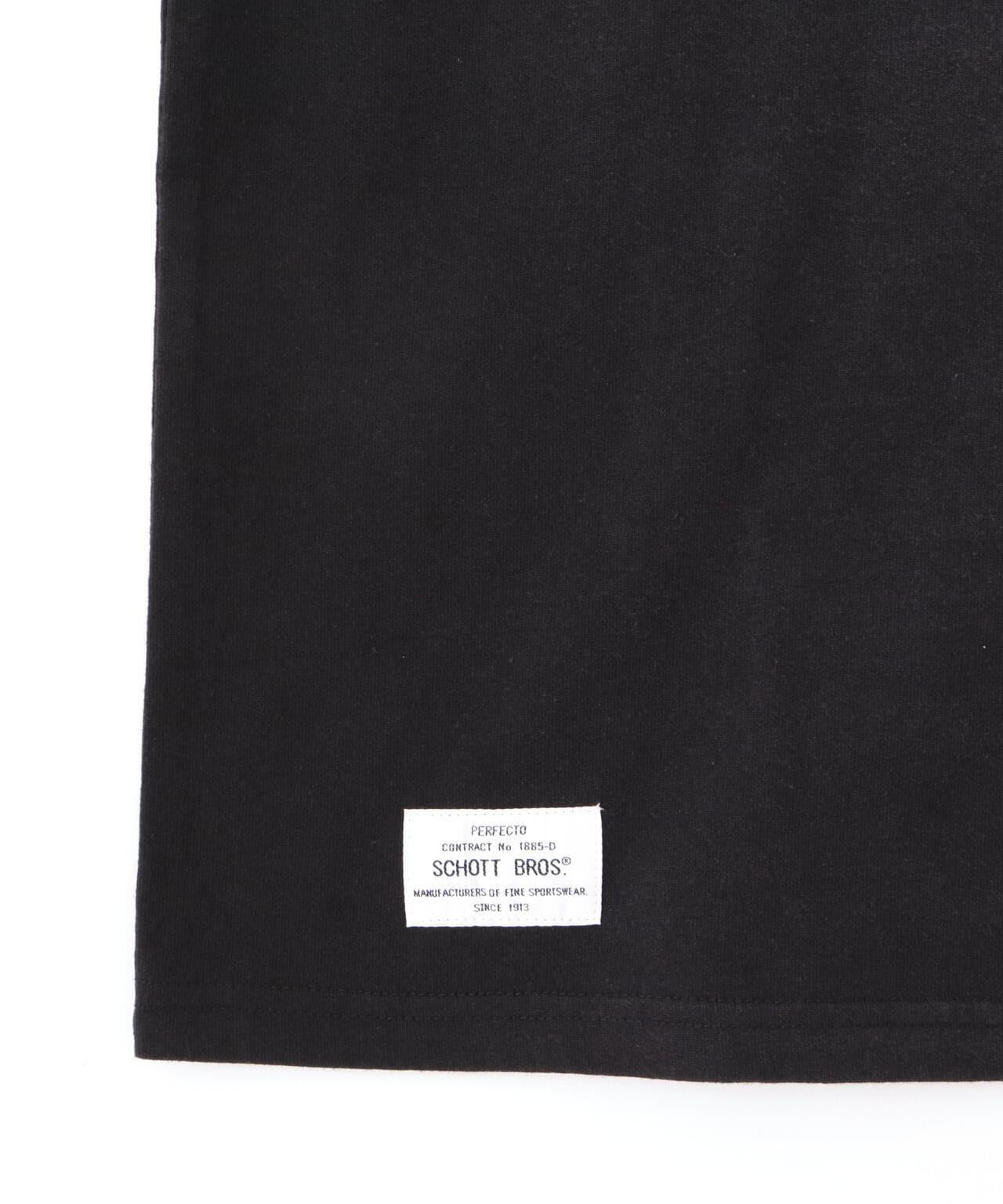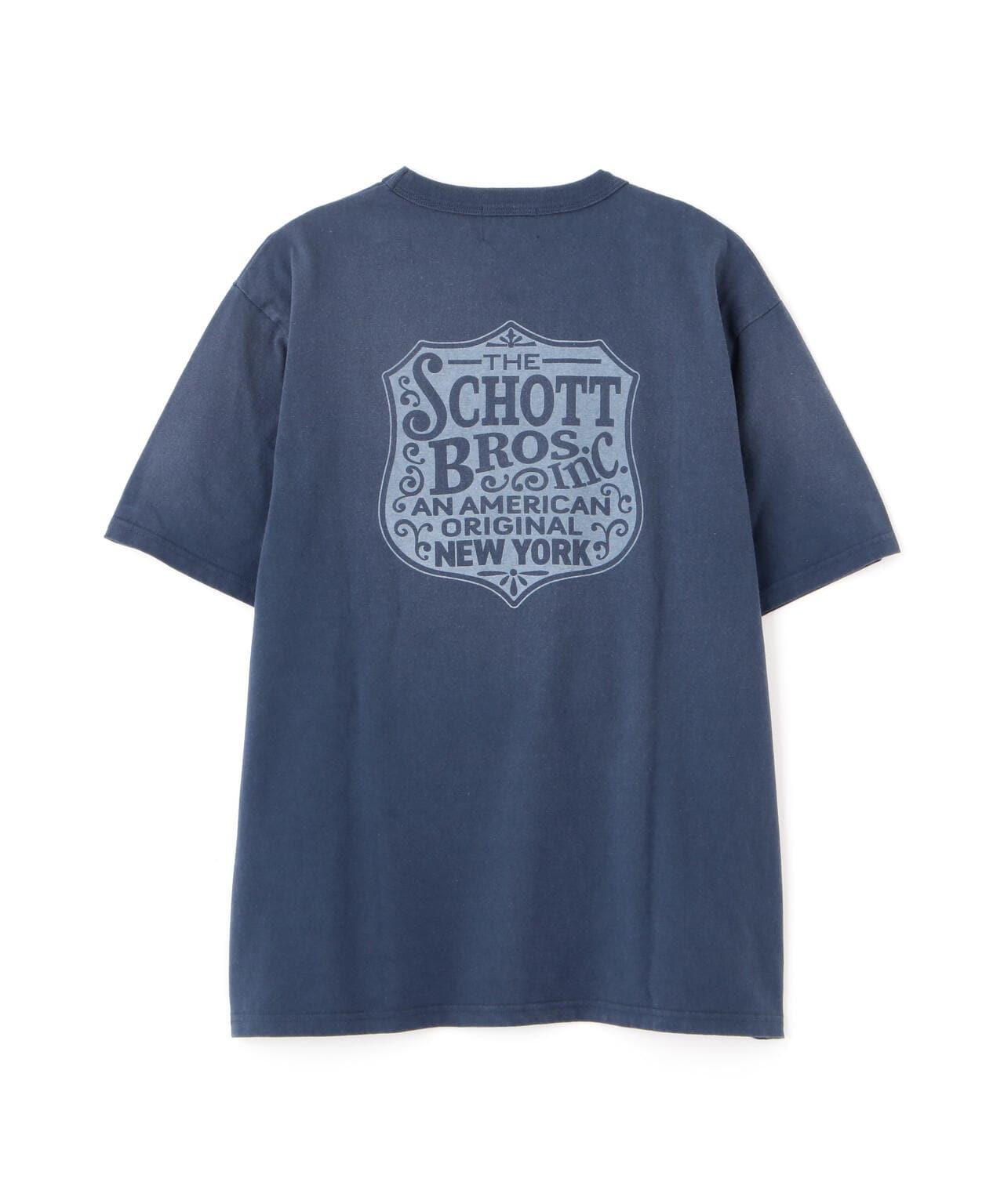 採用堅實厚實的 7 盎司紗體。硬、幹、粗糙的質地,加上只有開口紗才能帶來的蓬鬆、豐滿的手感,給人一種美國品牌的印象。採用捆綁式領口,縫製時將帶狀領口部分包裹在主體上。這樣的規格既能滿足大量使用,又不失厚實的衣身。運用品牌獨創的褪色處理,使其具有其他品牌所沒有的表現力。背面印有盾牌標誌,深色(黑色、藏青色)採用顏料印刷,印花乾淨利落。淺色則採用浸漬印花。通過對印花的關注,整體感覺和質感得到了提升。