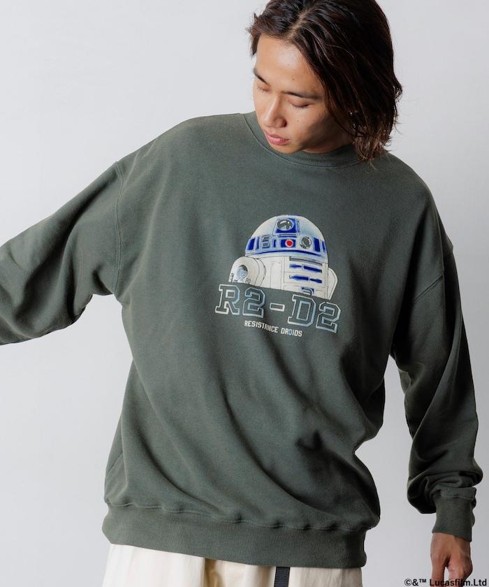 STARWARS/《星球大戰》 復古風格 R2-D2 圓領衛衣/植絨印花 寬鬆版型