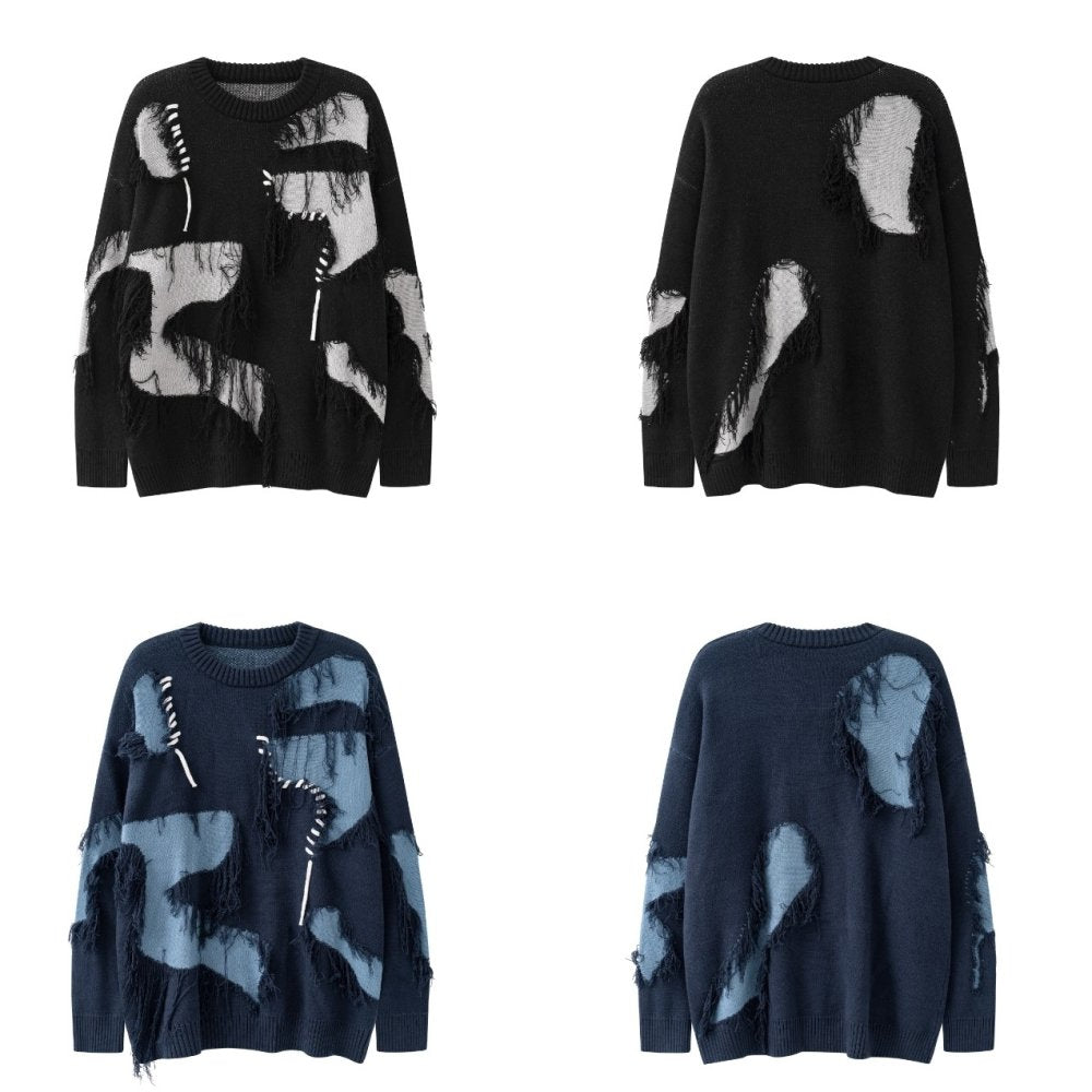 STITCH 針織破洞毛衣套頭衫 黑色 (CT7014GY)