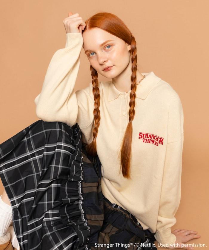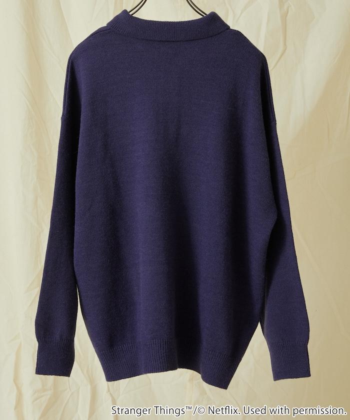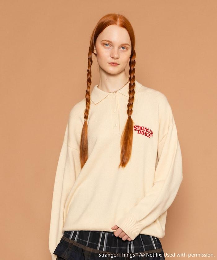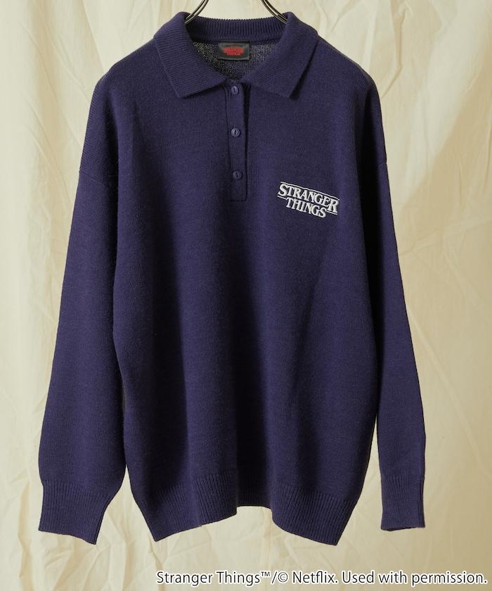 Polo 領針織衫上繡有《怪奇物語:未知世界》中的標誌。