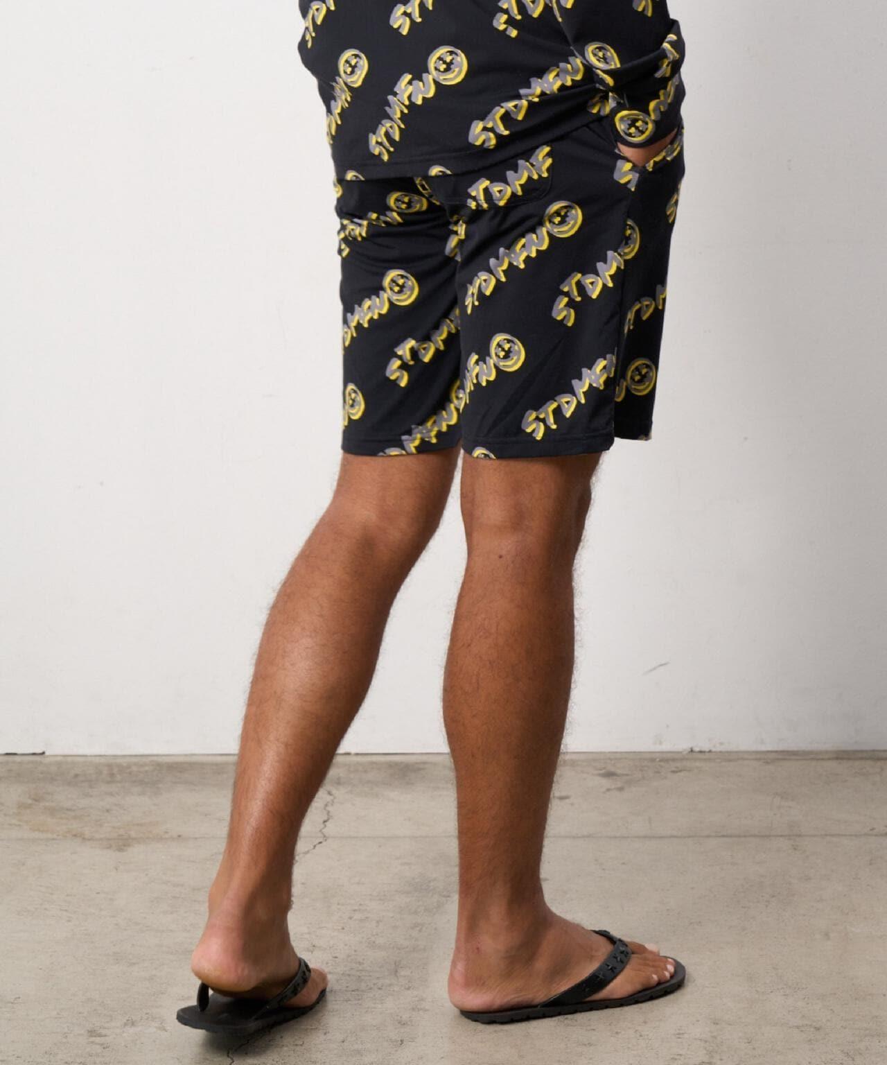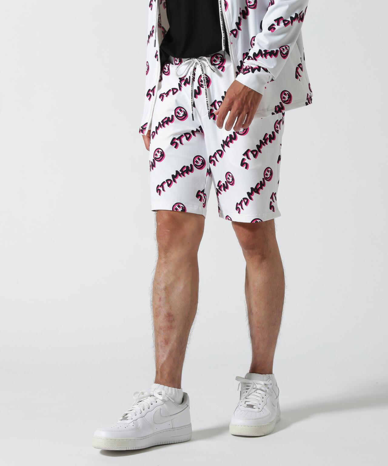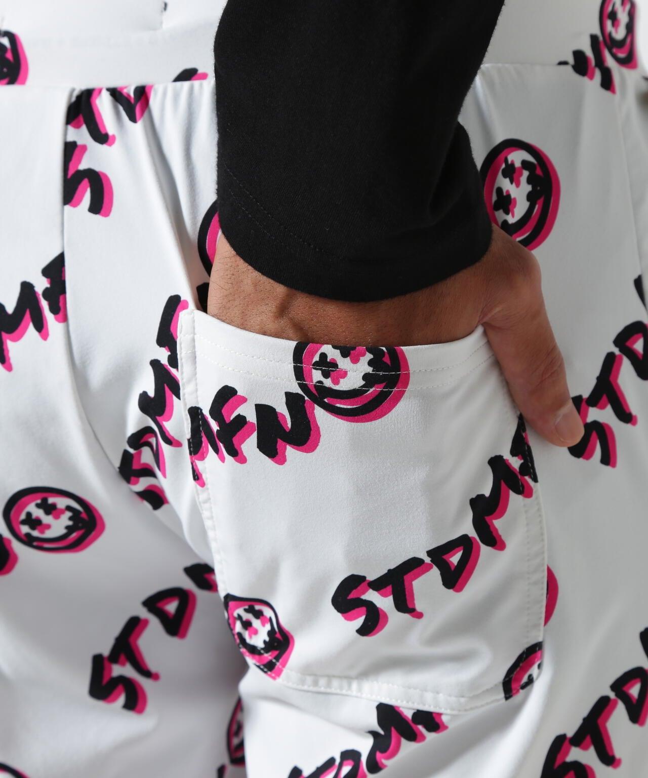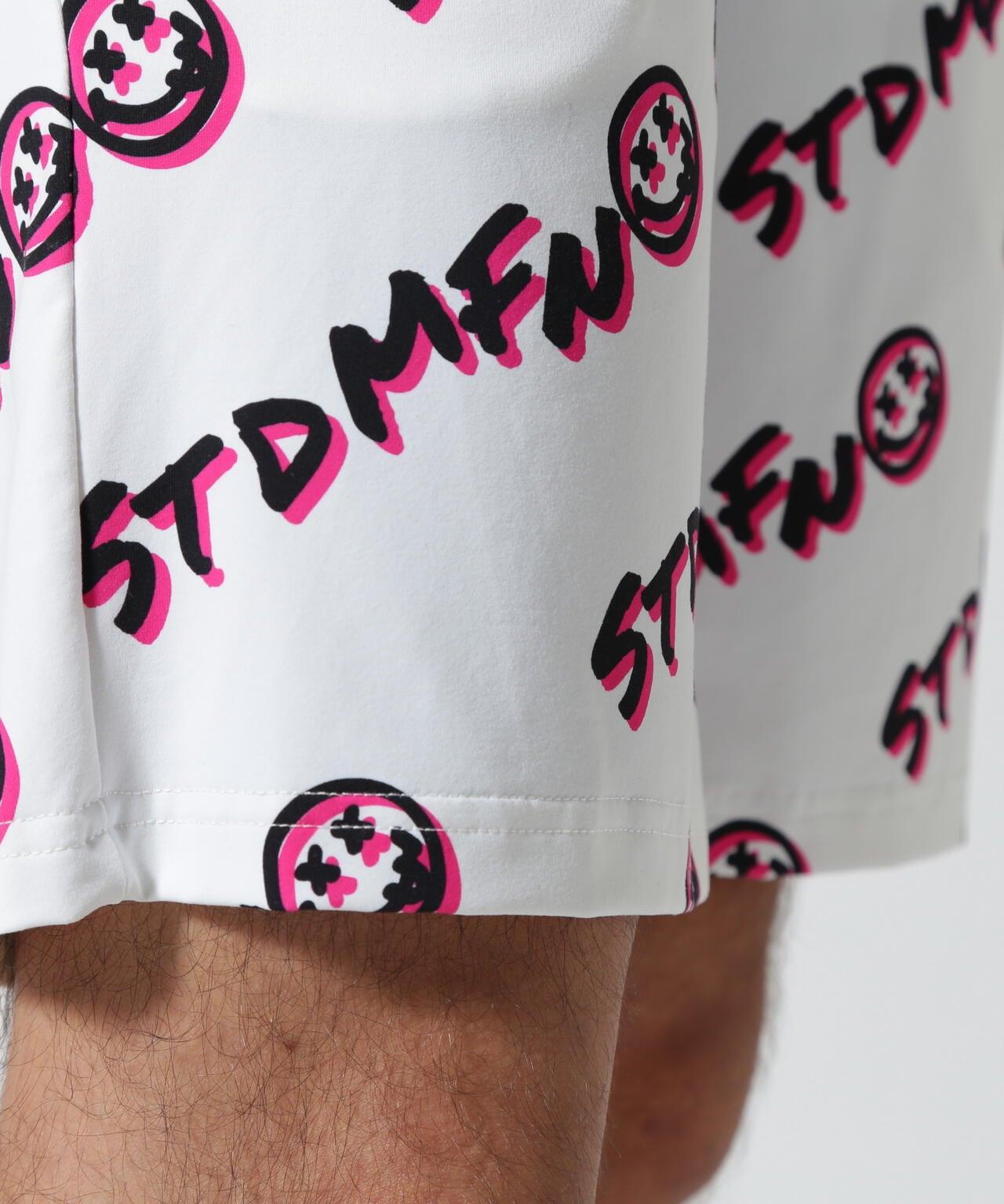 帶有閃光色塗鴉圖案的原創紡織品。板褲由彈力尼龍製成。所使用的彈力面料使衝鋒衣無壓力且快乾。STUD MUFFIN/Stud Muffin "STUD MUFFIN "意為駿馬般的酷男。STUD MUFFIN "是一個永恆的品牌,以音樂家和藝術家為靈感,以季節為主題,使用刺繡和原創圖案,推出朗朗上口、酷味十足的真正服裝。