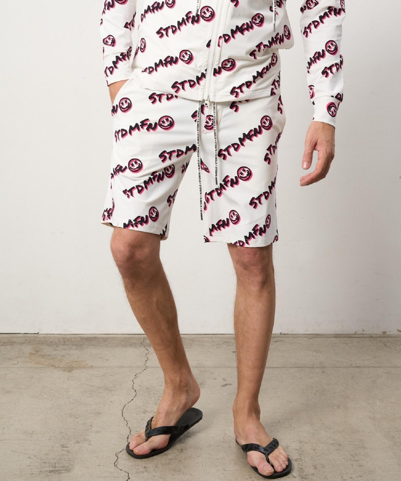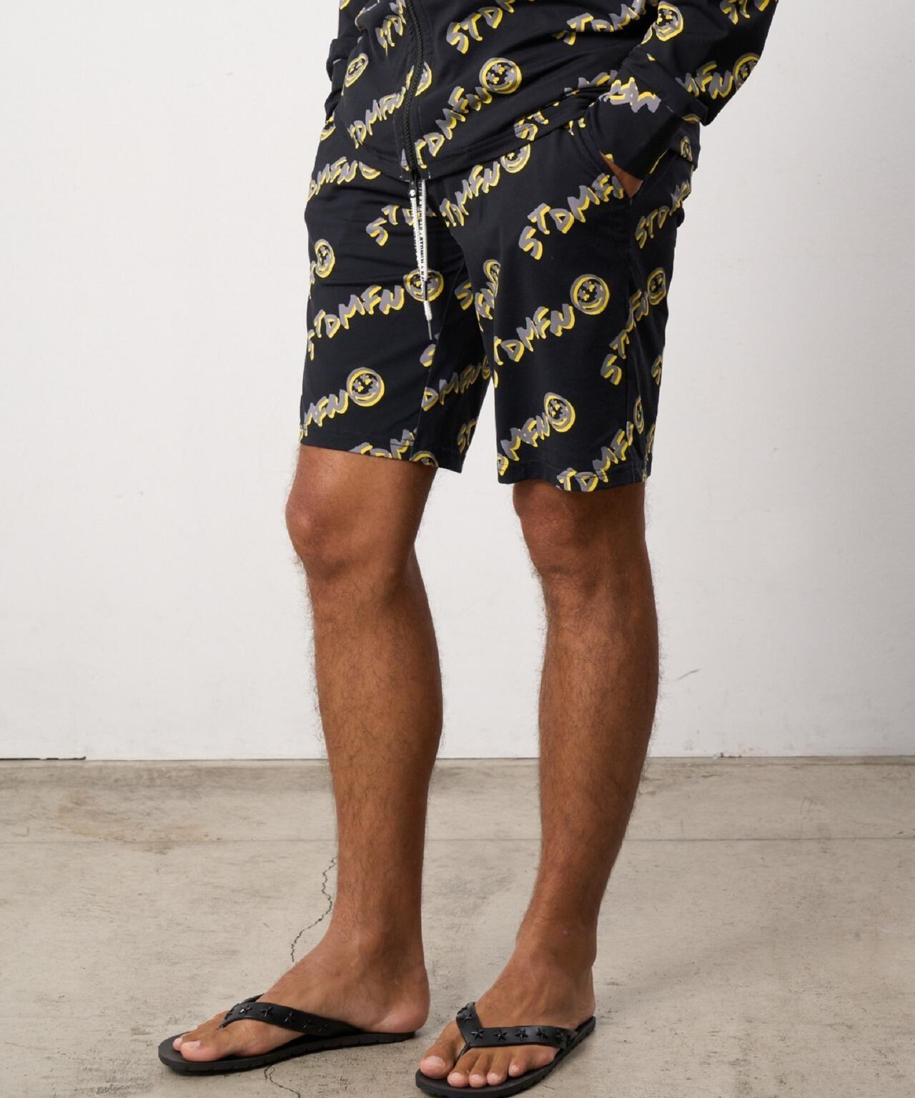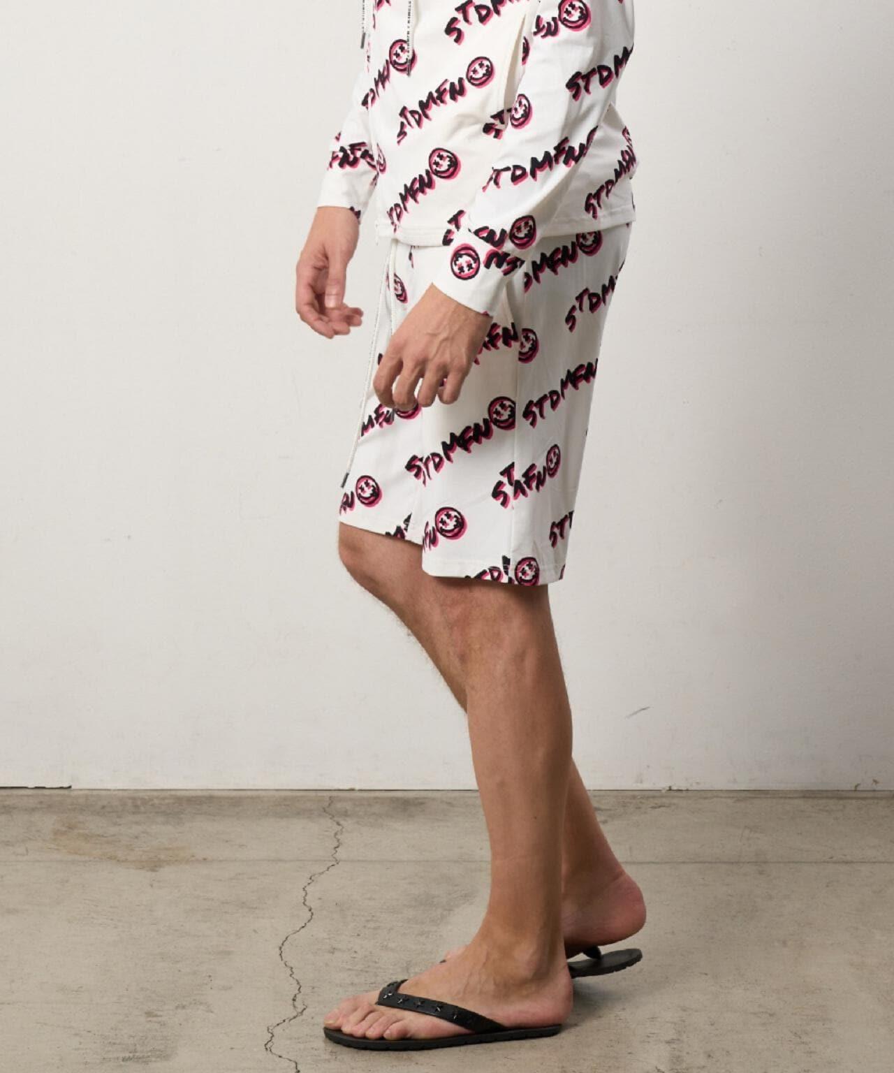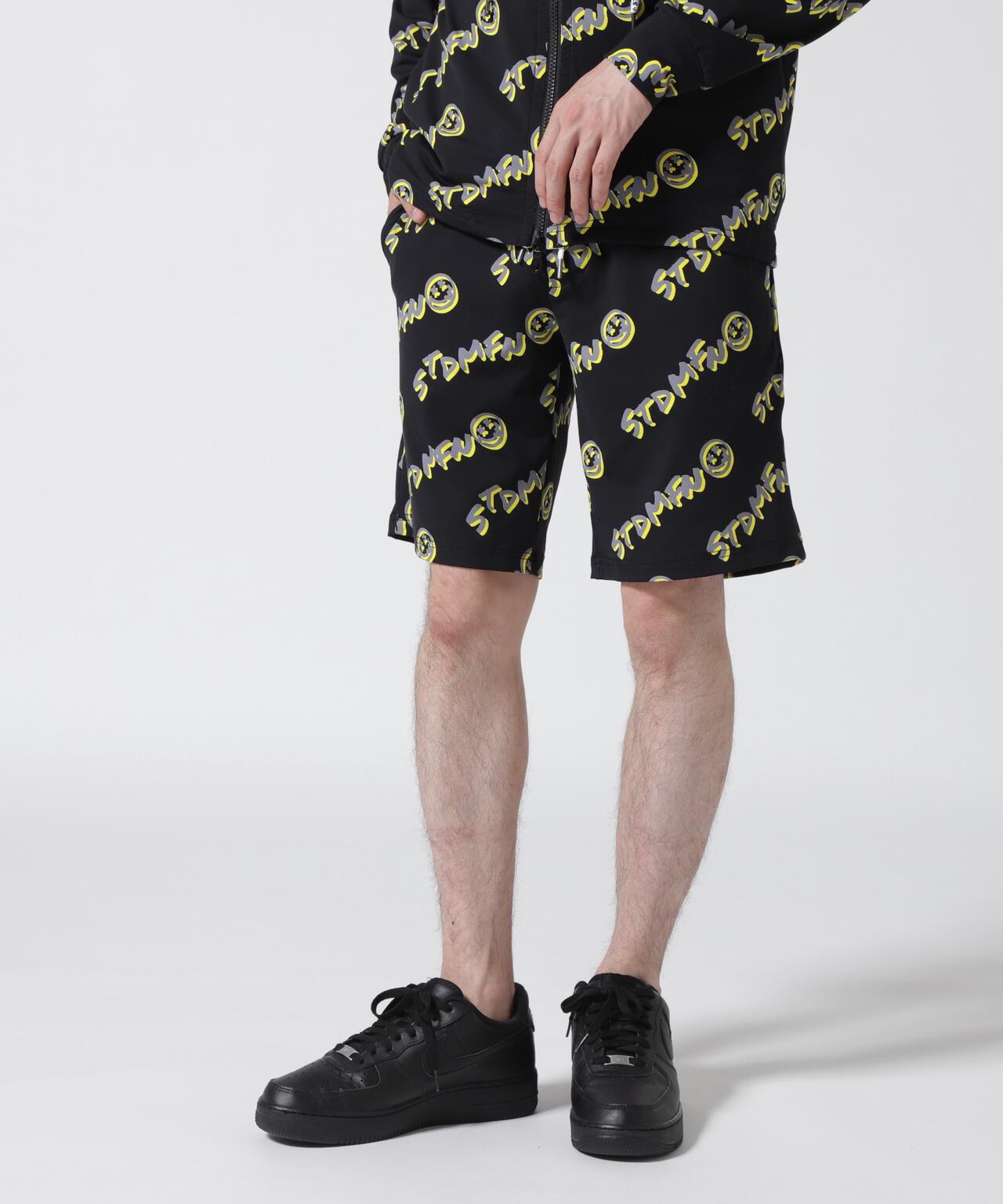 帶有閃光色塗鴉圖案的原創紡織品。板褲由彈力尼龍製成。所使用的彈力面料使衝鋒衣無壓力且快乾。STUD MUFFIN/Stud Muffin "STUD MUFFIN "意為駿馬般的酷男。STUD MUFFIN "是一個永恆的品牌,以音樂家和藝術家為靈感,以季節為主題,使用刺繡和原創圖案,推出朗朗上口、酷味十足的真正服裝。