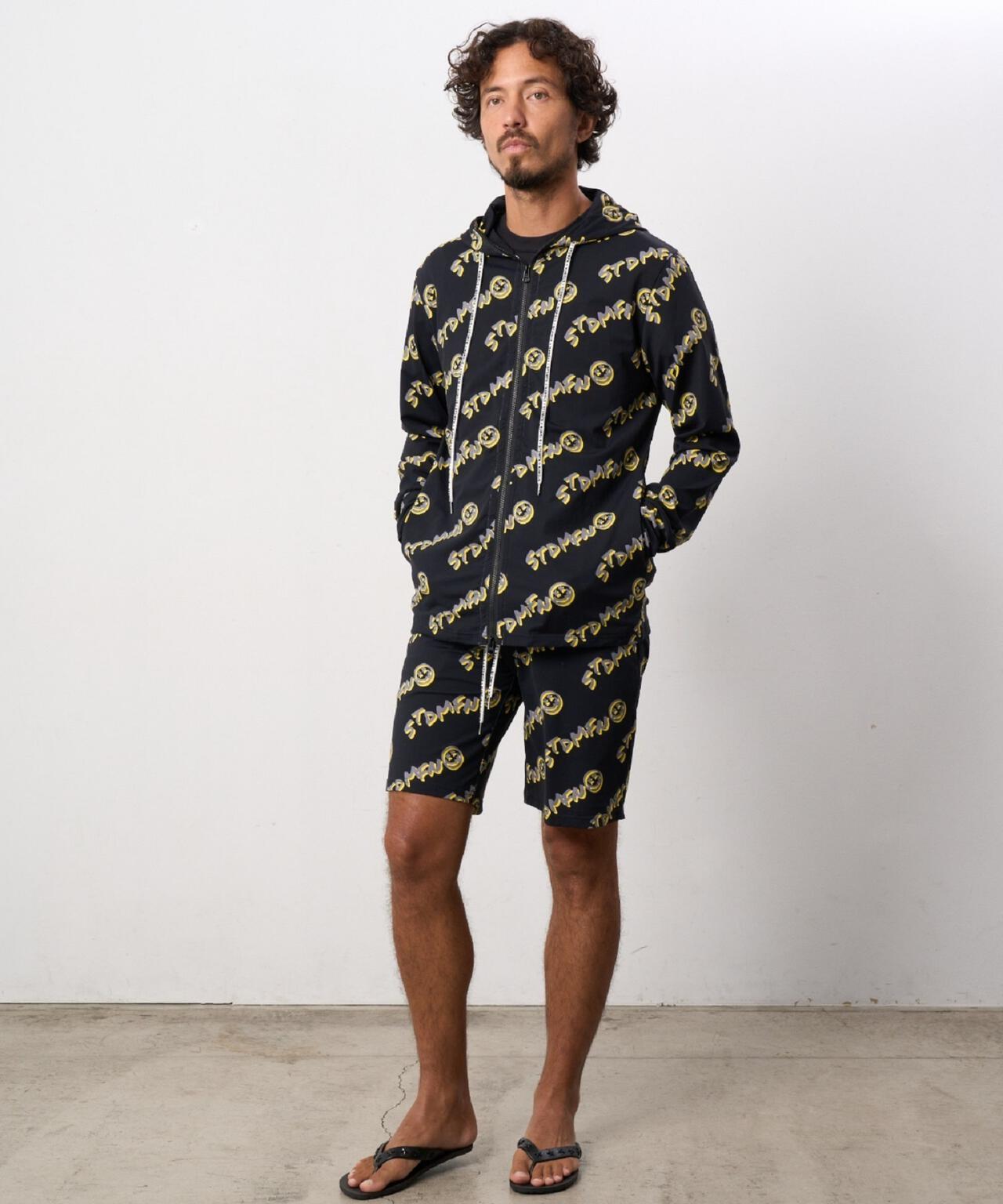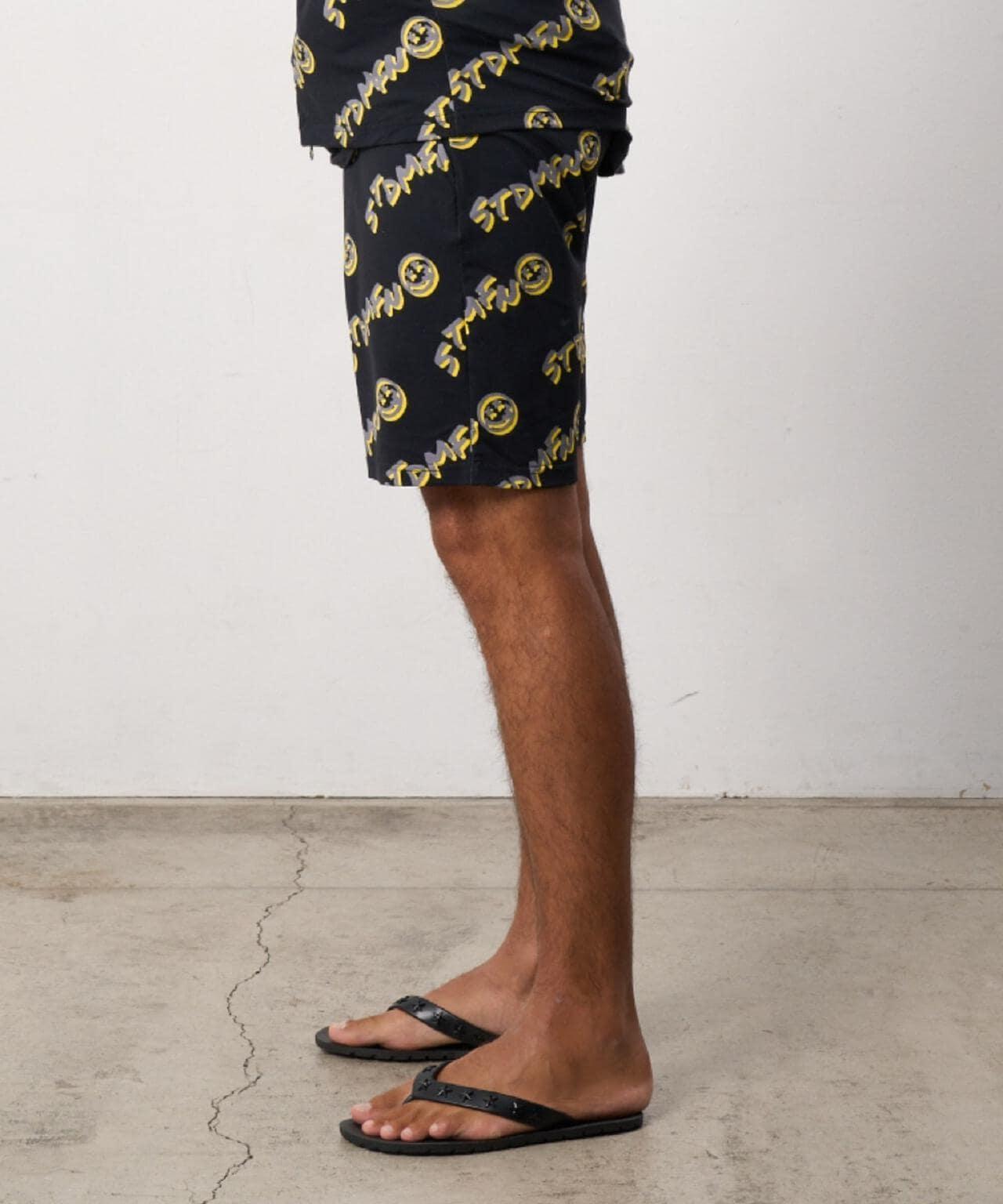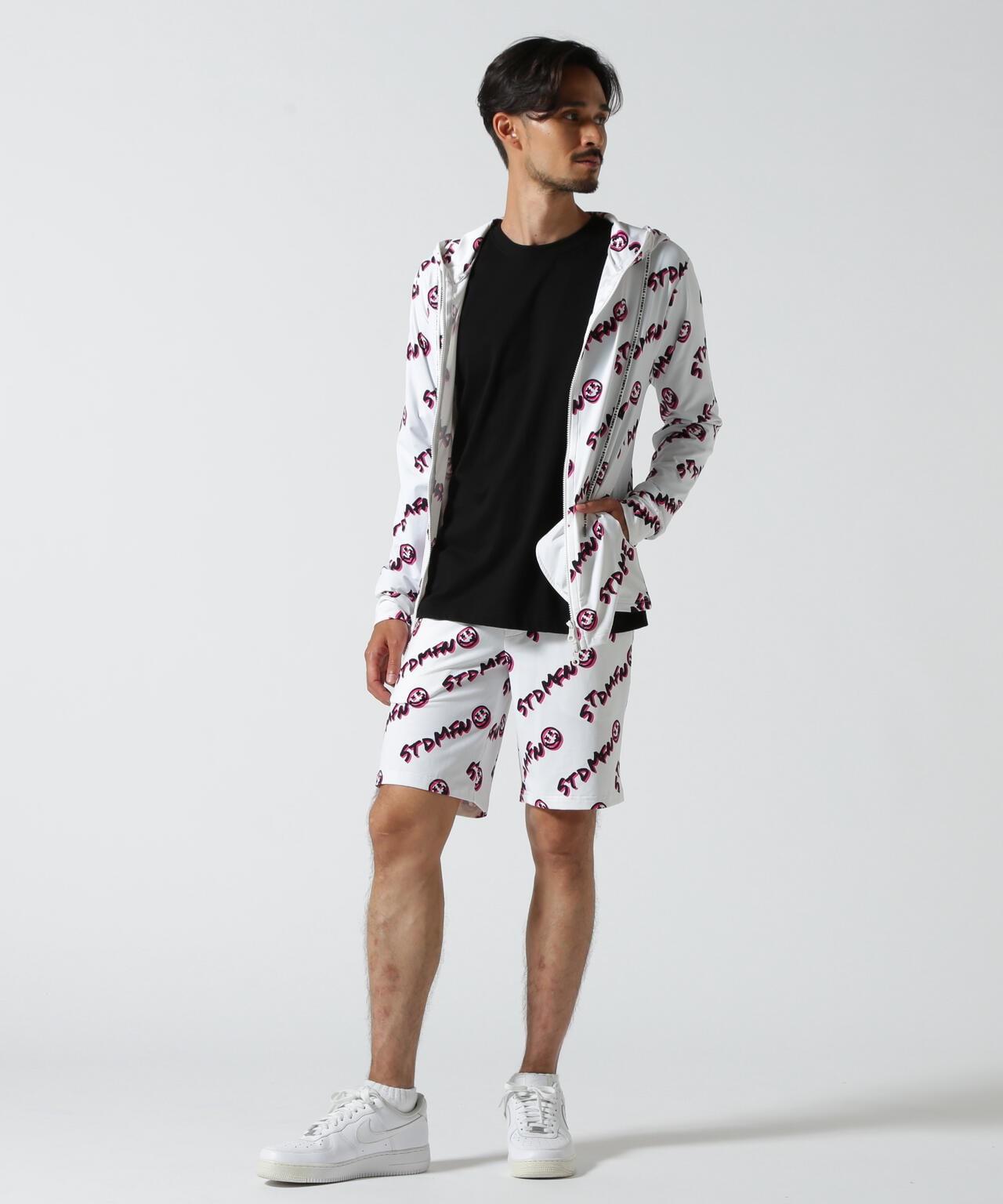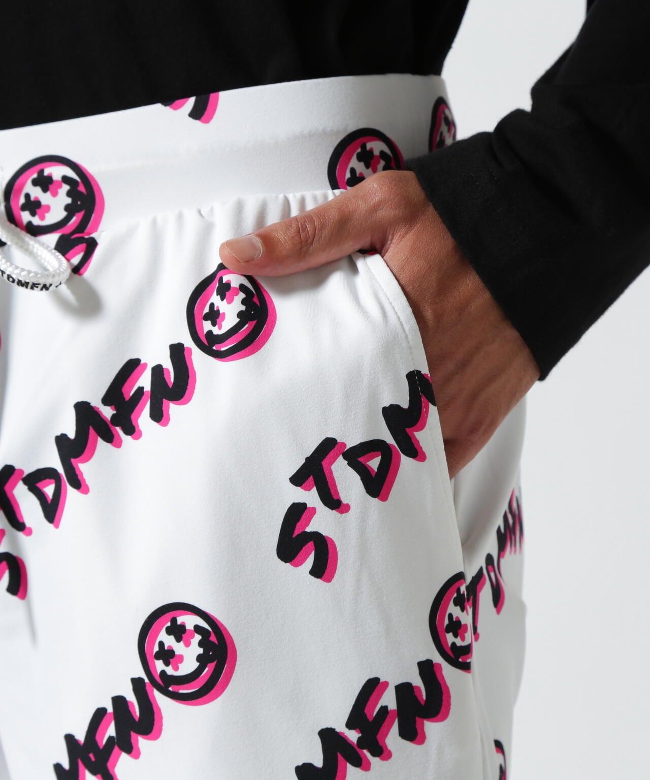 帶有閃光色塗鴉圖案的原創紡織品。板褲由彈力尼龍製成。所使用的彈力面料使衝鋒衣無壓力且快乾。STUD MUFFIN/Stud Muffin "STUD MUFFIN "意為駿馬般的酷男。STUD MUFFIN "是一個永恆的品牌,以音樂家和藝術家為靈感,以季節為主題,使用刺繡和原創圖案,推出朗朗上口、酷味十足的真正服裝。