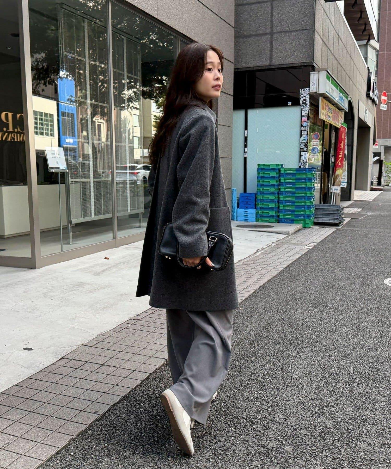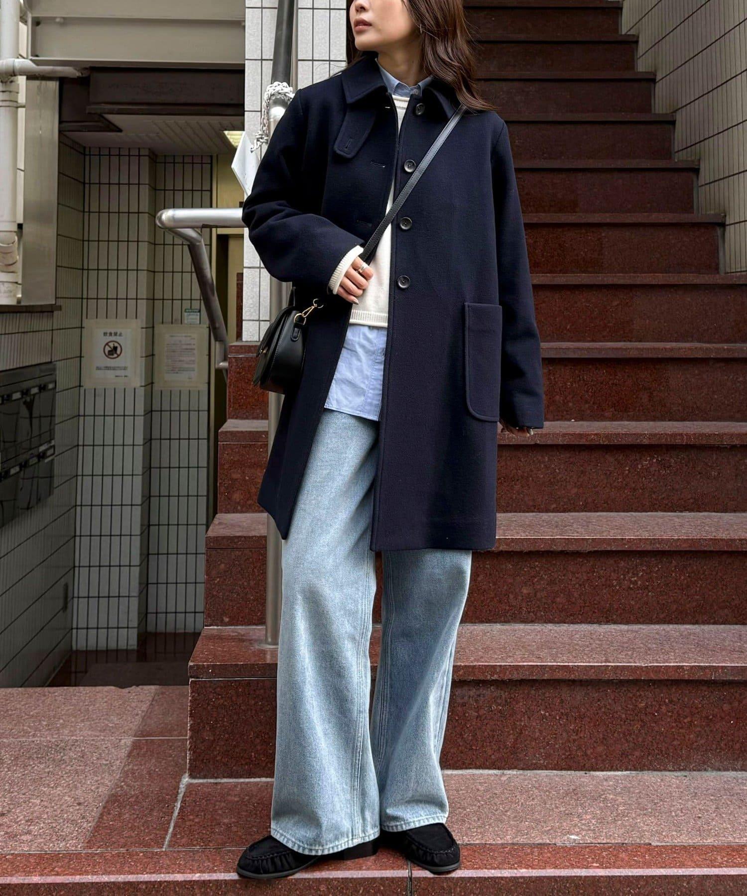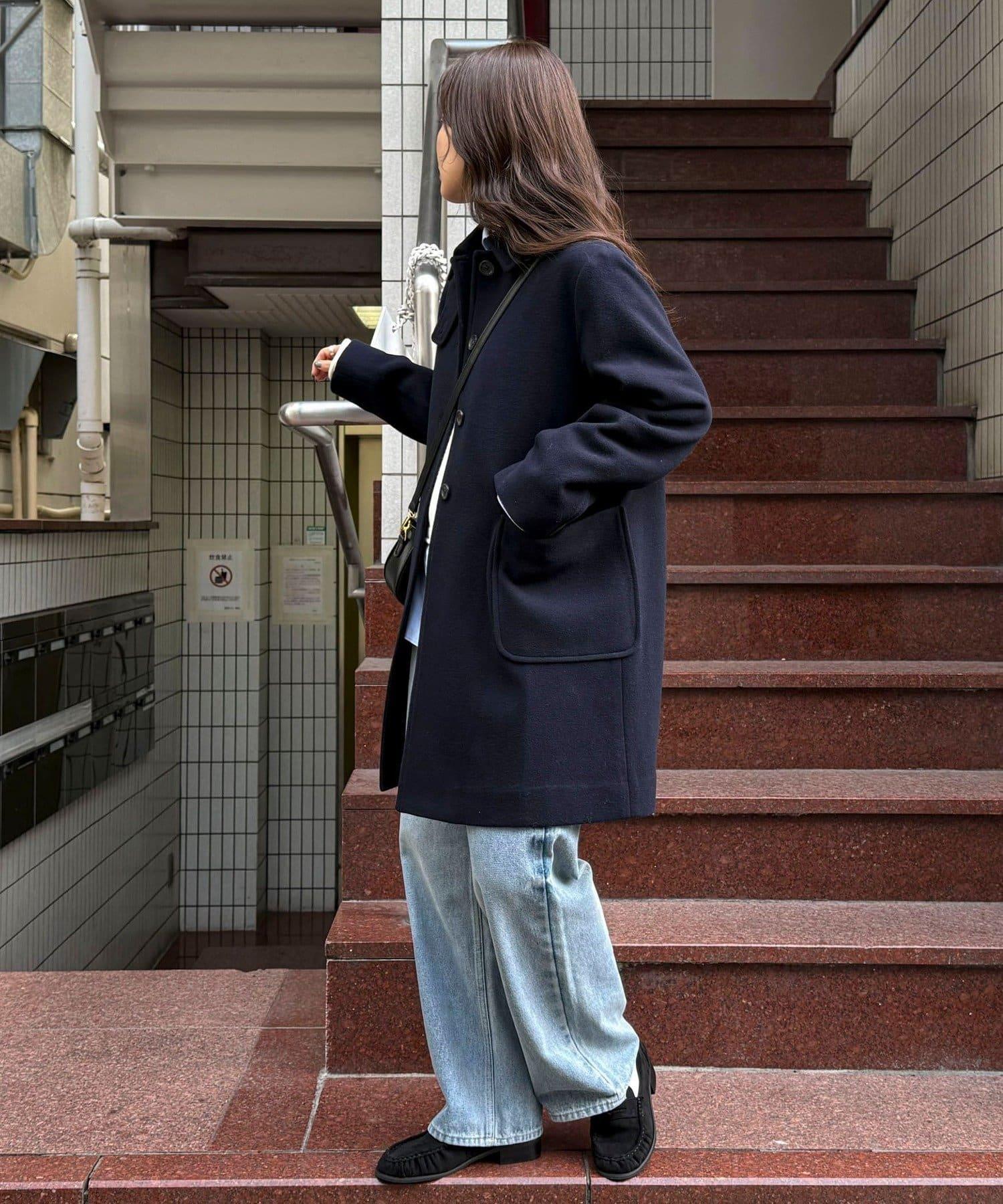 身高 156cm 的工作人員(穿 38 號):長度大約到膝蓋一點,我穿起來很平衡。肩部和身體寬度也有一定的空間,即使裡面穿厚針織衫也很舒服,不顯瘦!儘管輕便舒適,但它的保暖性很強,無論是通勤還是外出都很實用 ◎這是一件百搭的外衣,搭配長褲很帥氣,搭配裙子很有女人味!