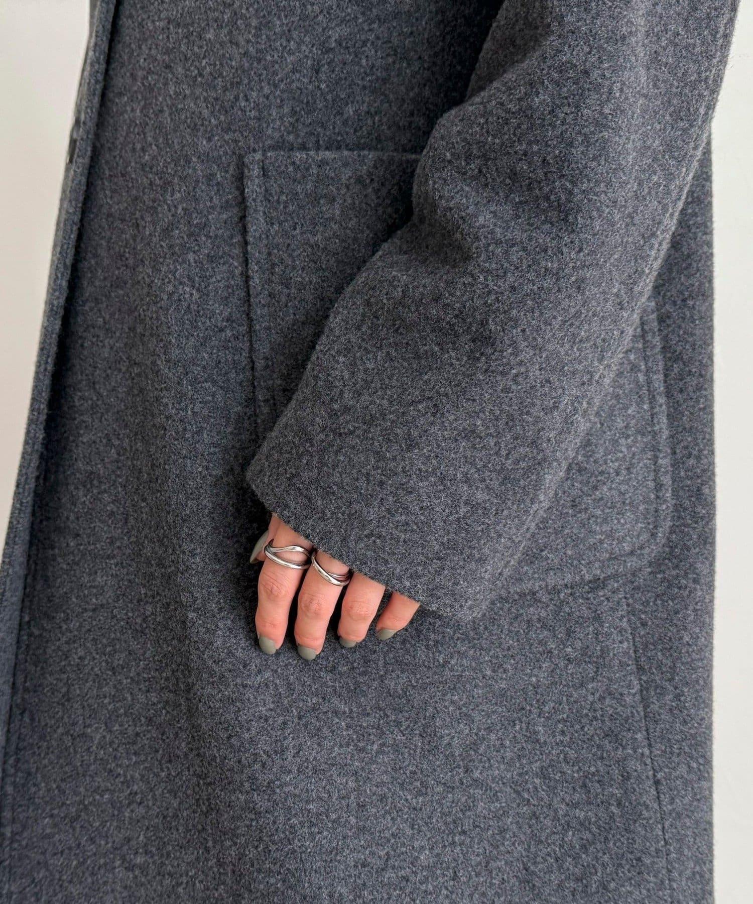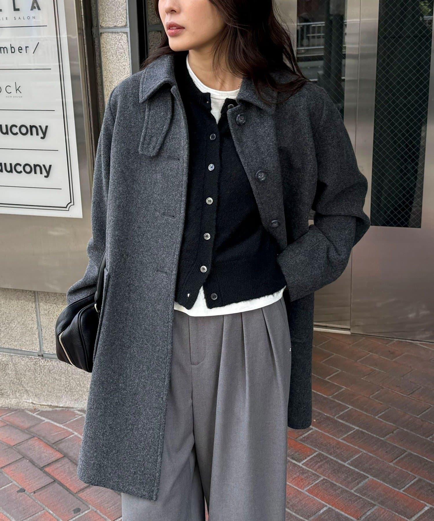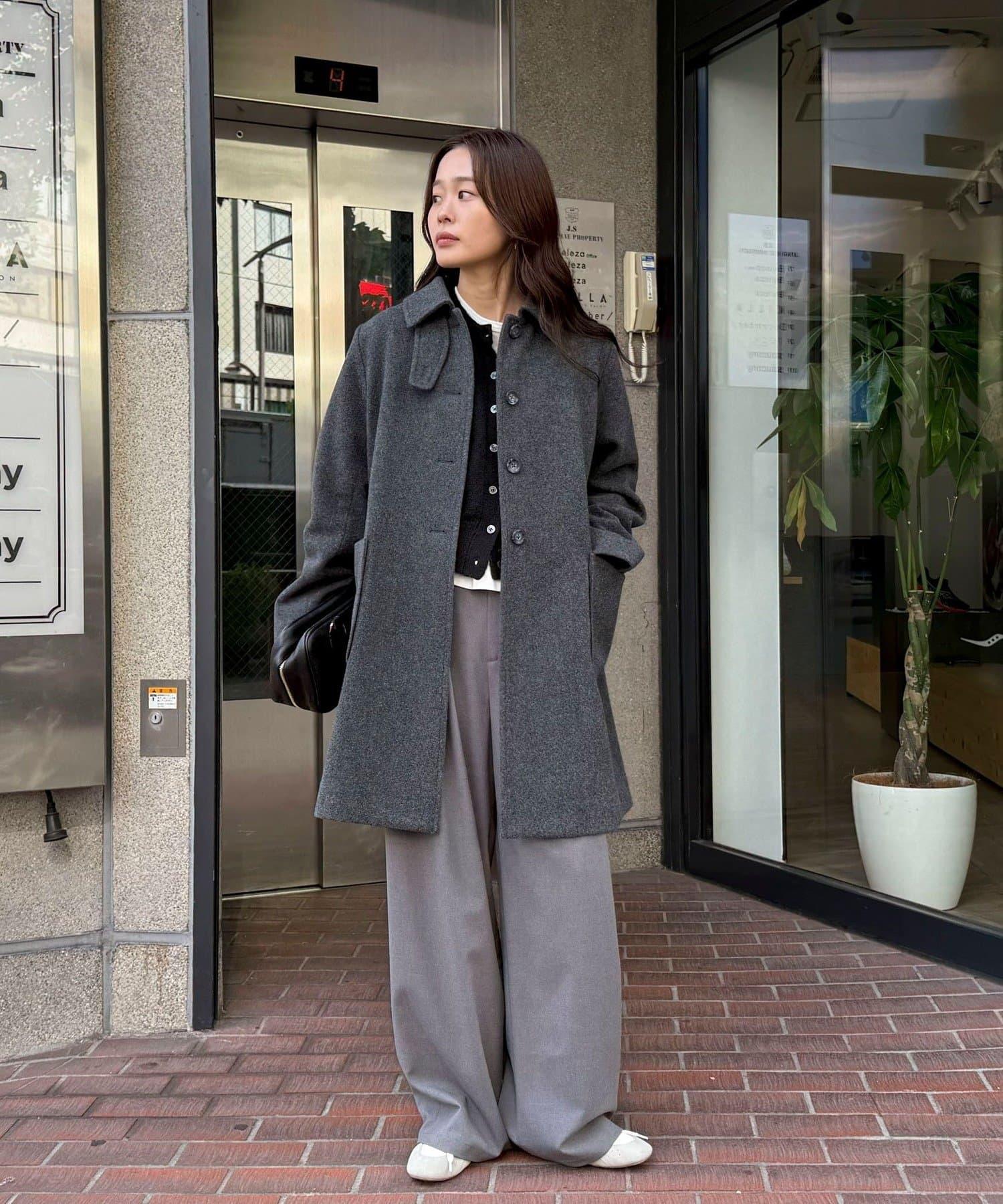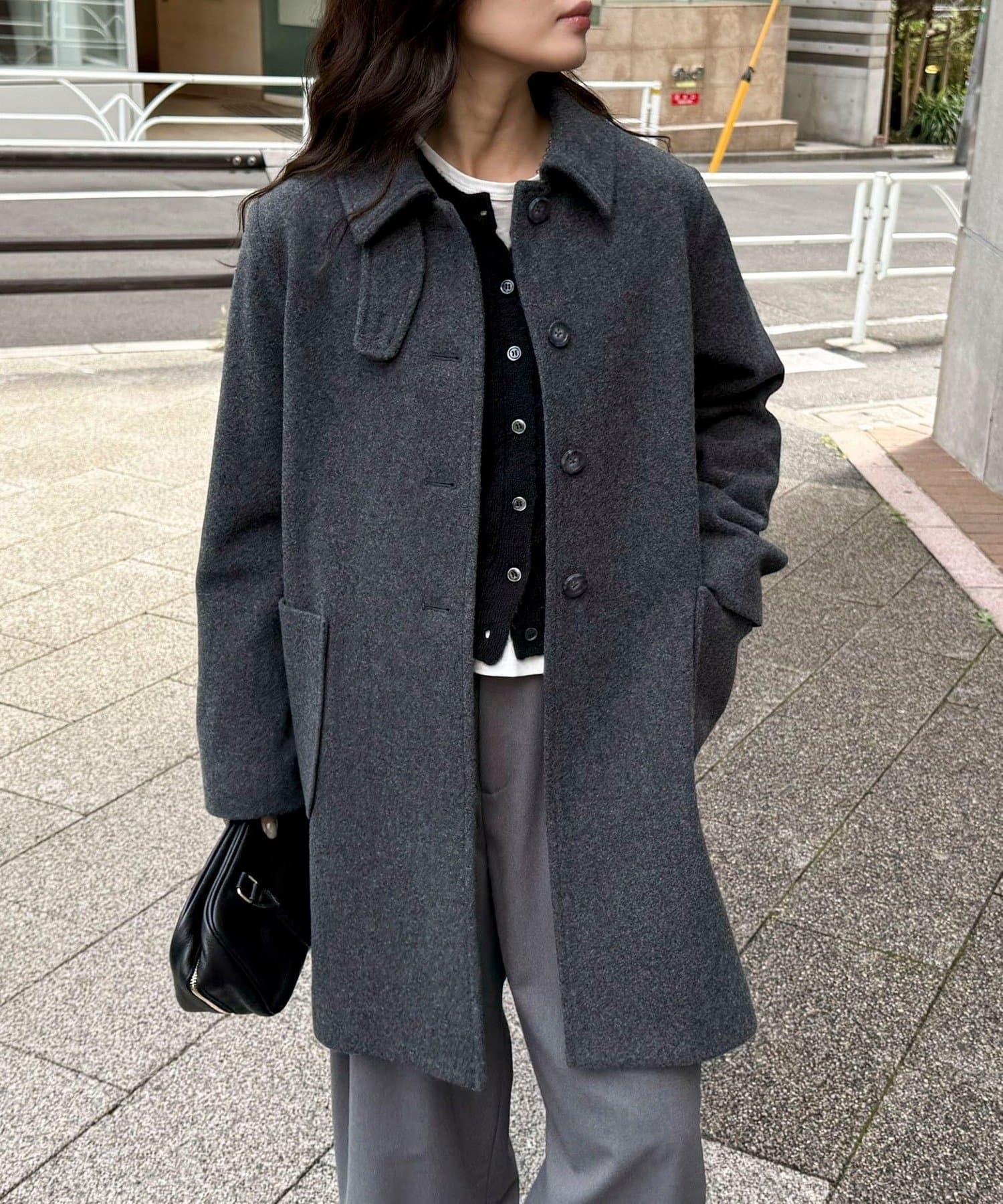 使用質地柔軟的 100%羊毛面料的高品質不鏽鋼中層大衣。