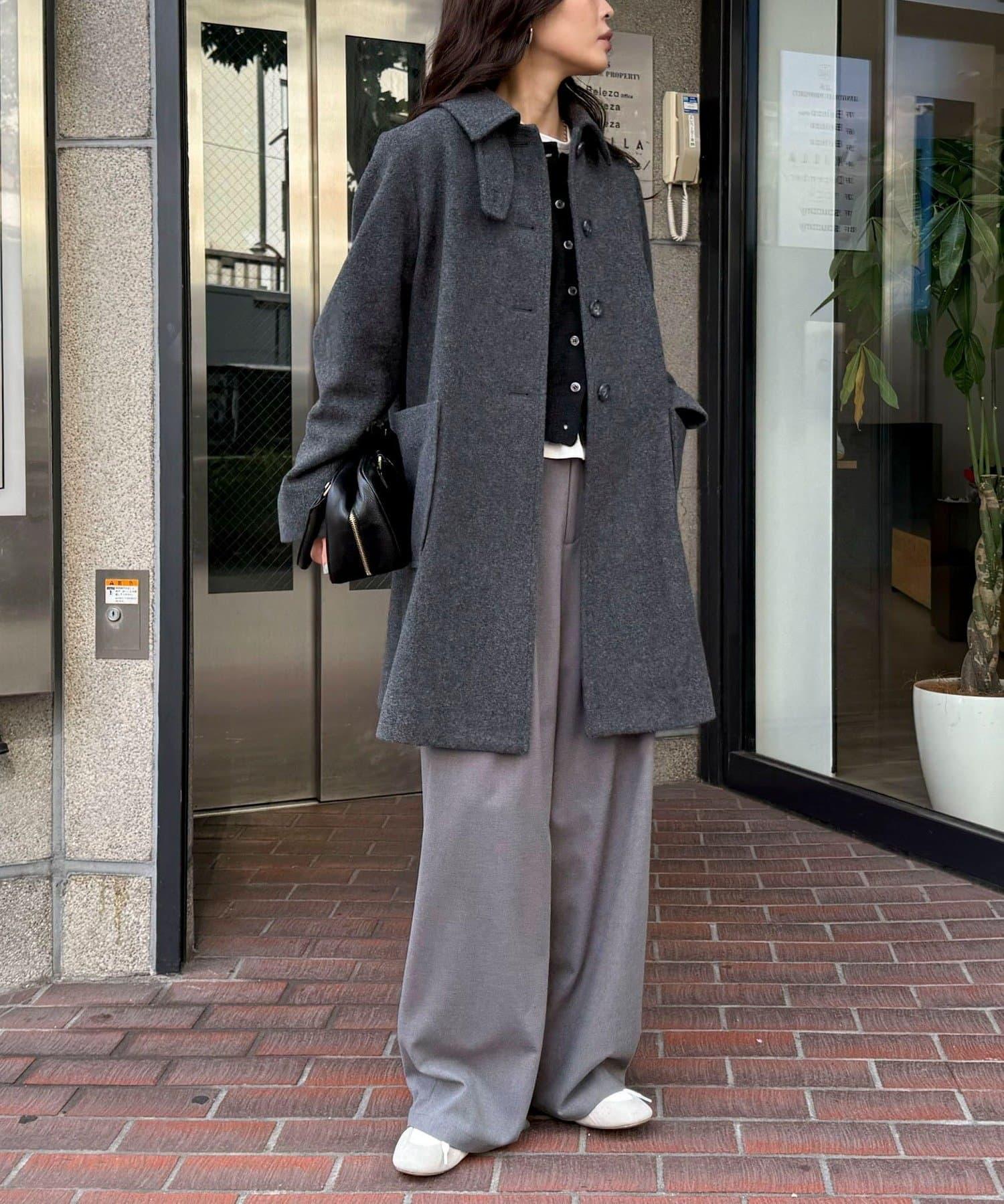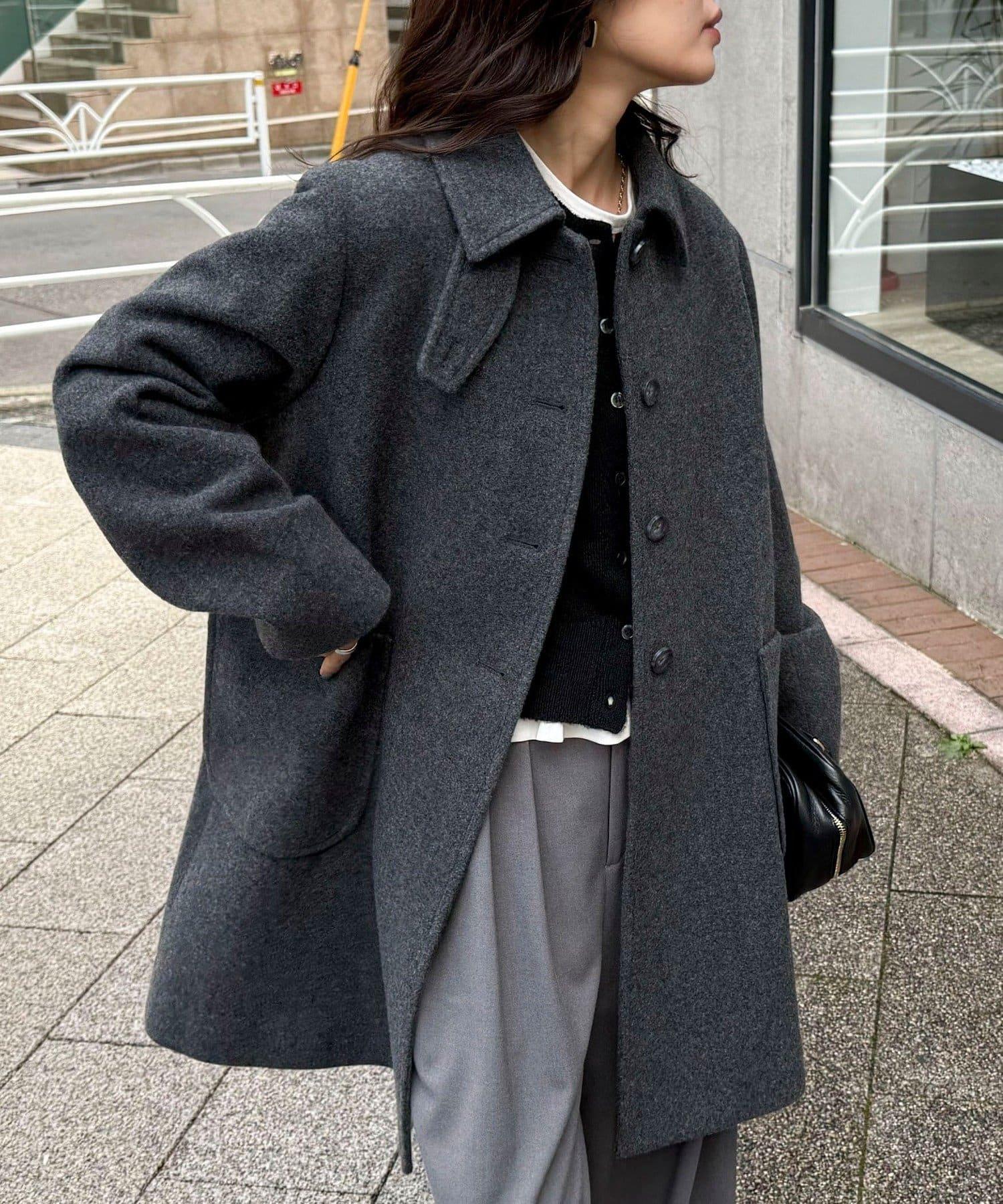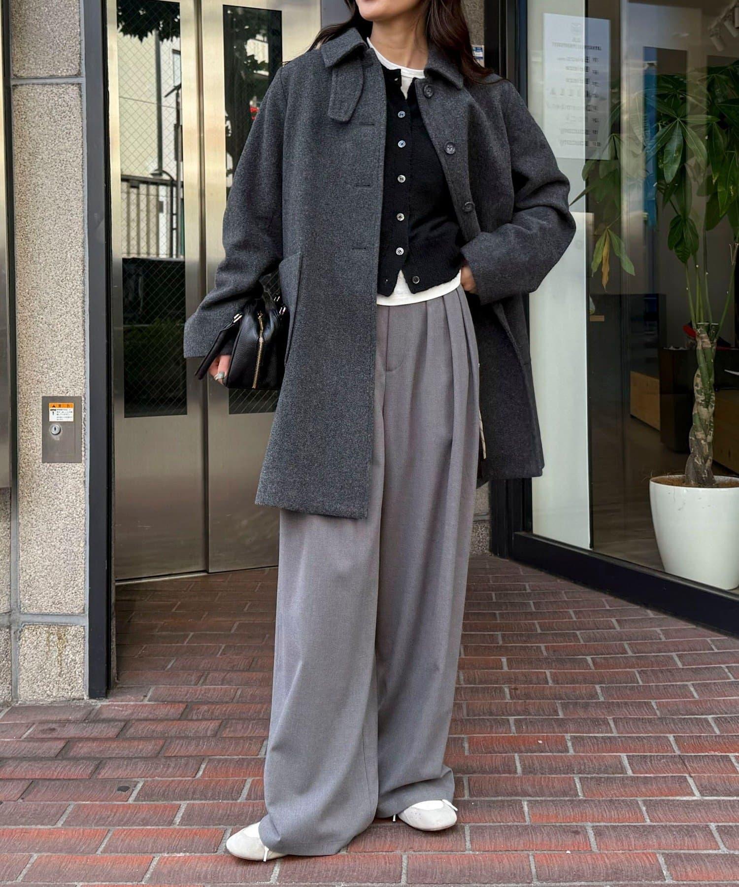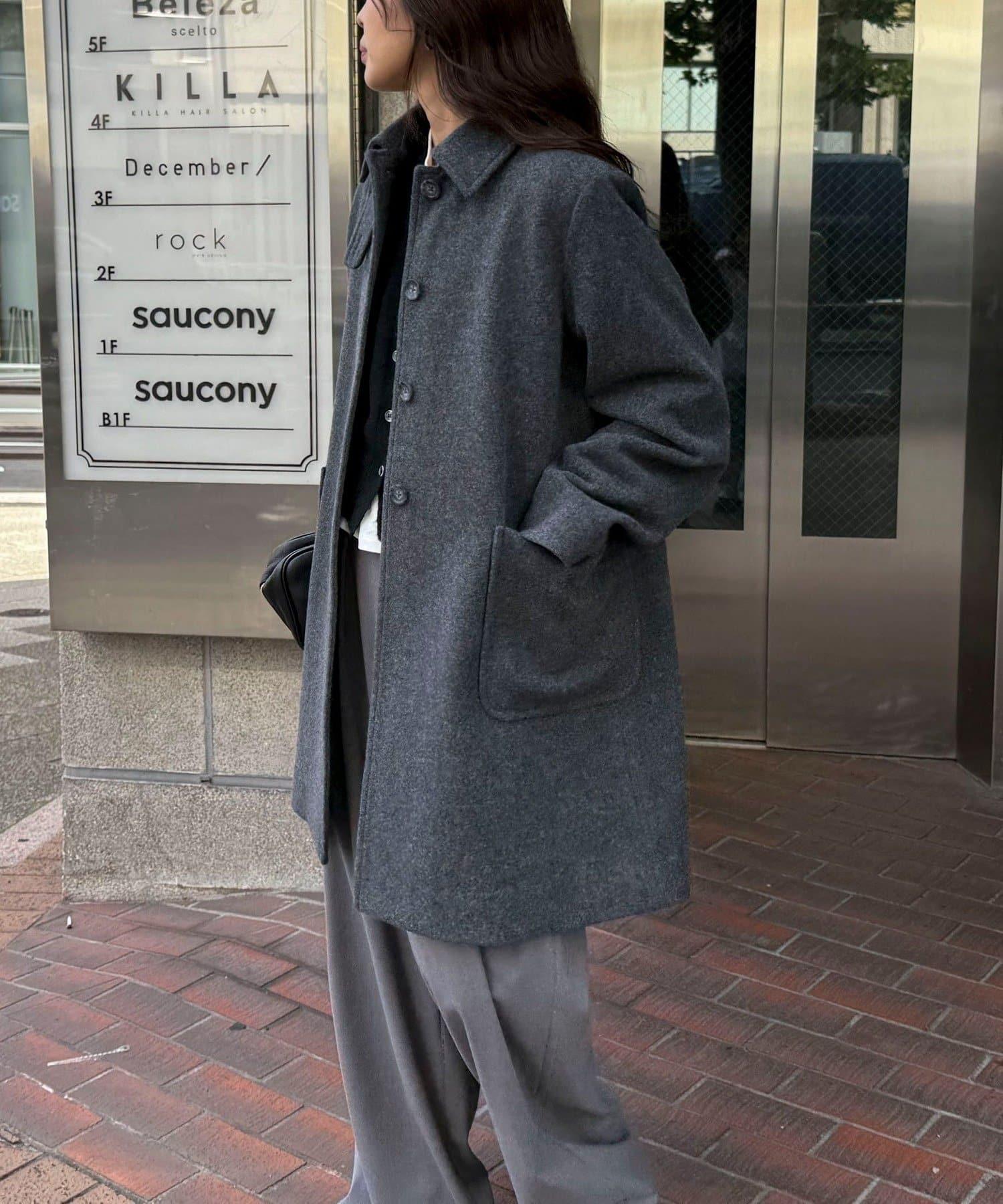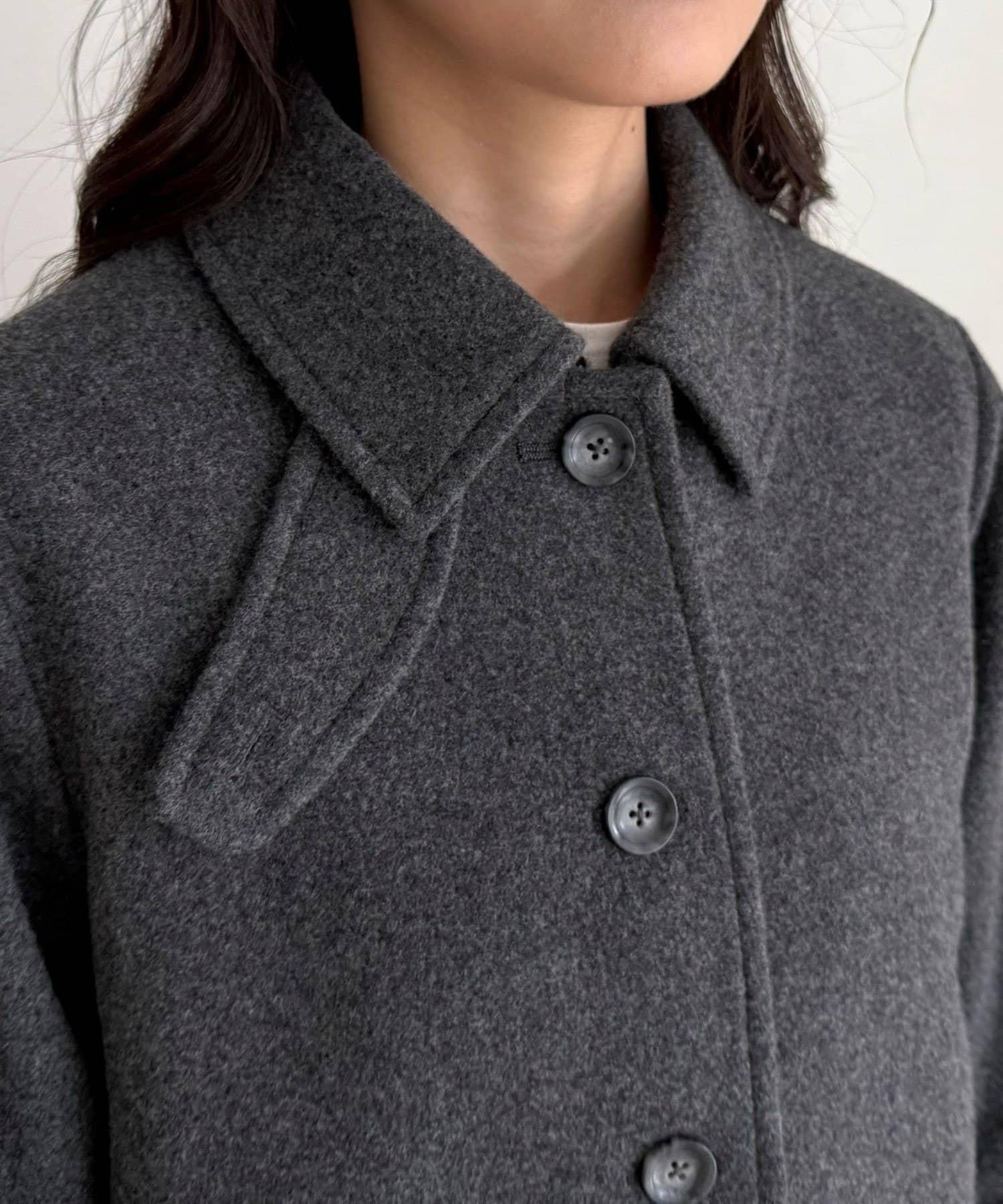 使用質地柔軟的 100%羊毛面料的高品質不鏽鋼中層大衣。
