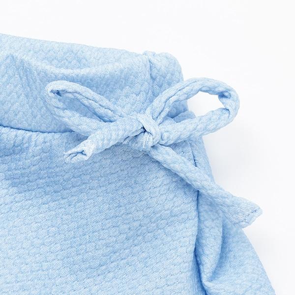 下身是喇叭裙款式,帶有裝飾性絲帶點綴。