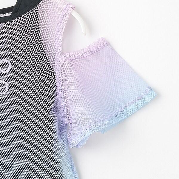 短款 T 恤採用網眼材料製成,印有漸變圖案。