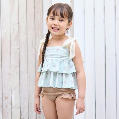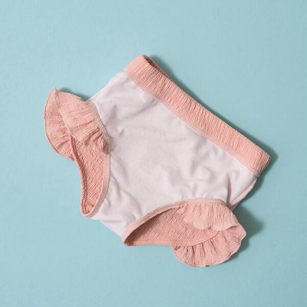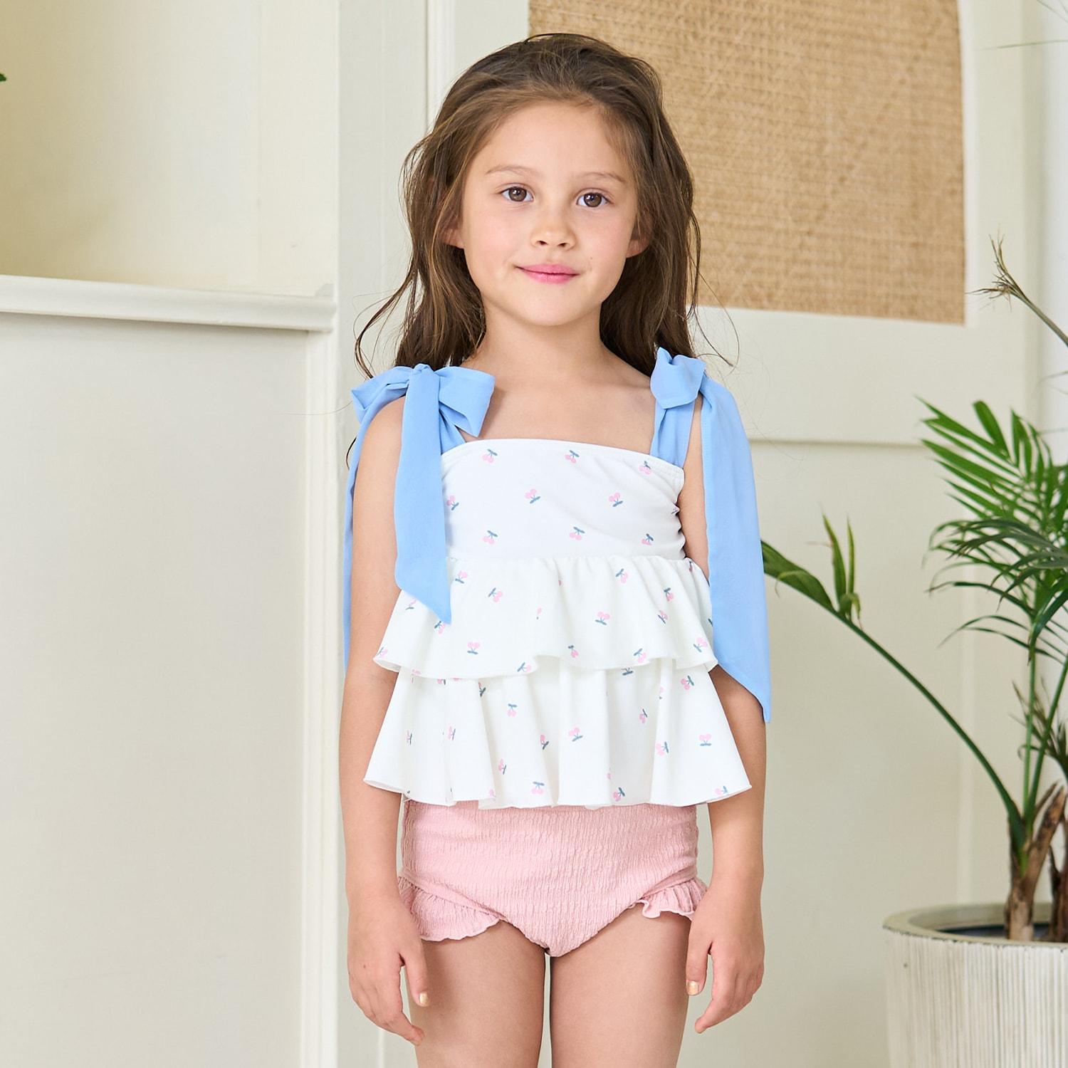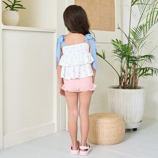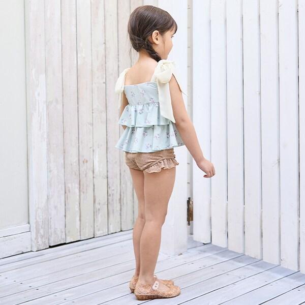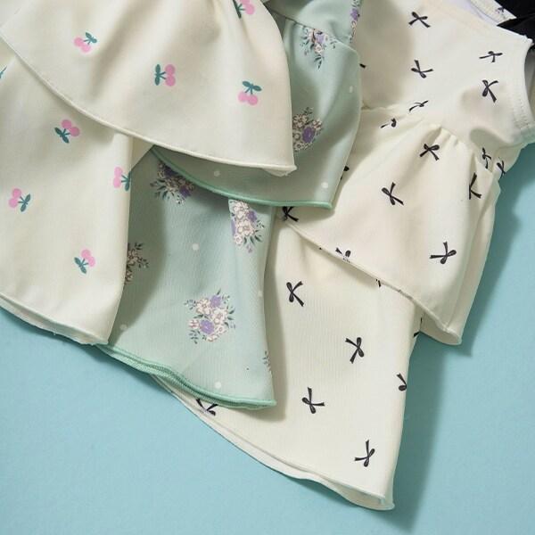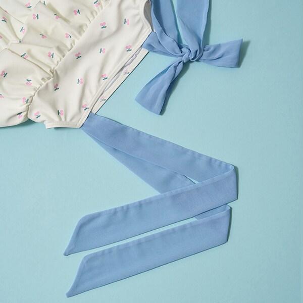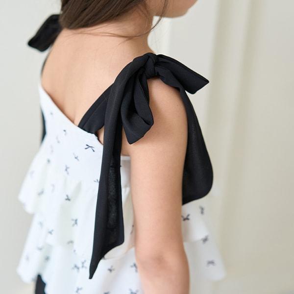 肩部的雪紡褶邊營造出少女的可愛和略帶成熟的氣息。