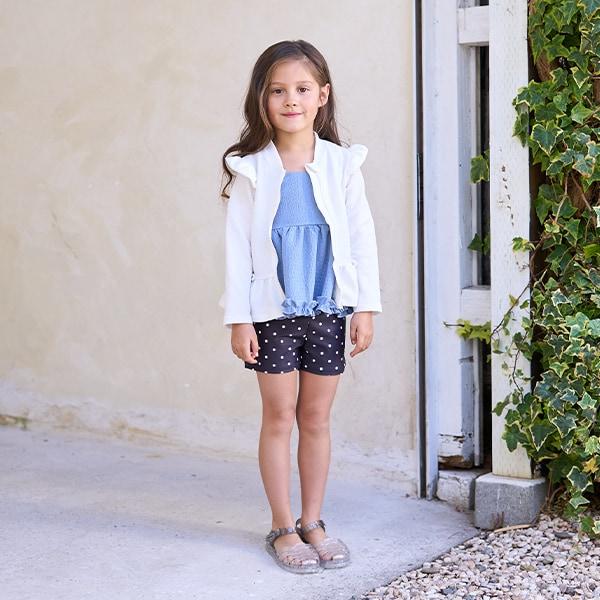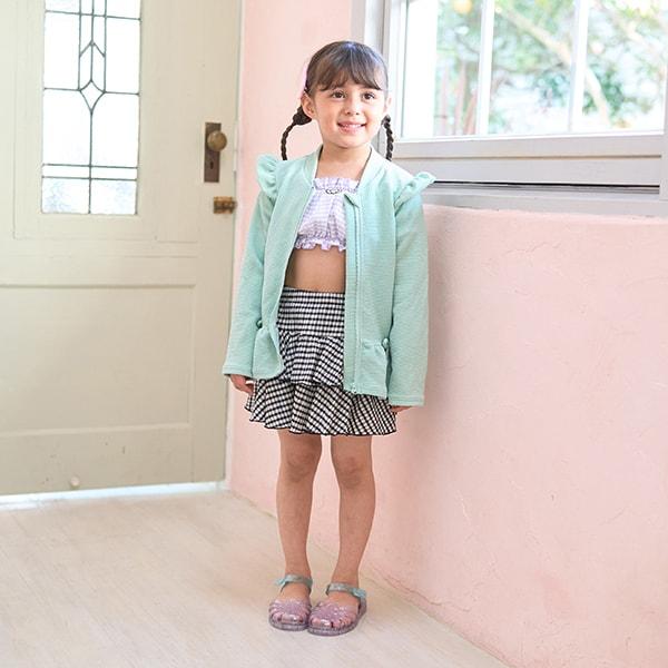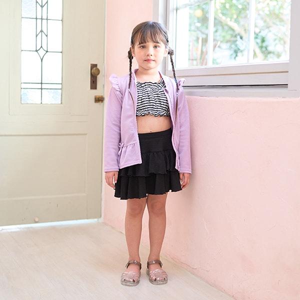 肩部的荷葉邊給人精緻的印象,下襬的荷葉邊則增添了少女的氣息。