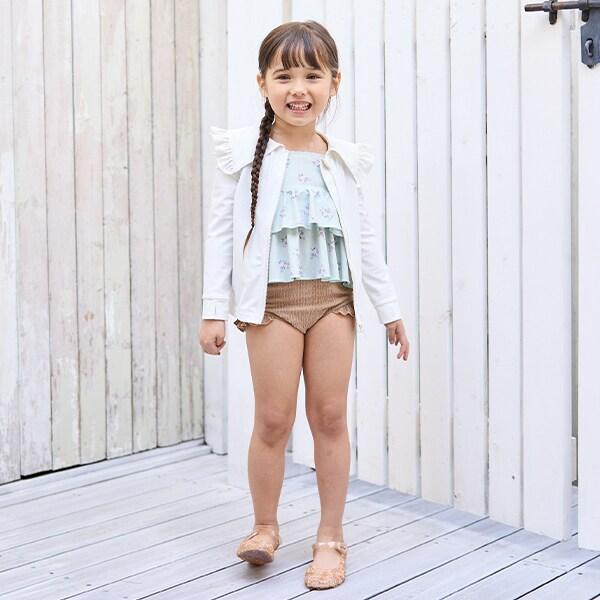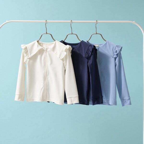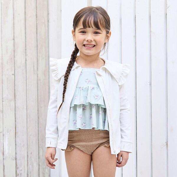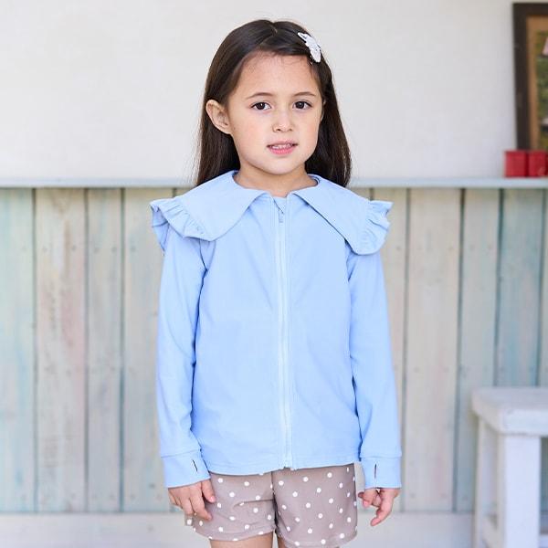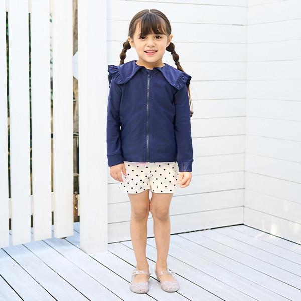【SWIM】【UV加工】水手風荷葉邊領防曬泳衣