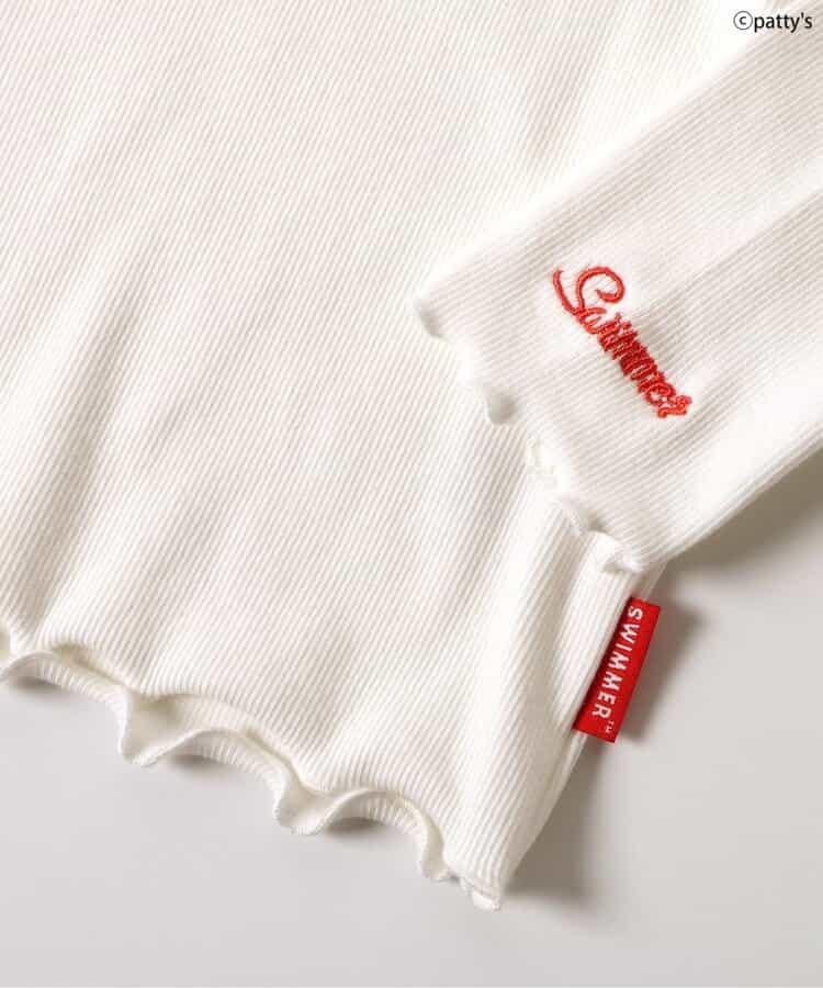 T 恤胸前印有 SWIMMER 復古流行印花,即使單穿也是全場焦點。