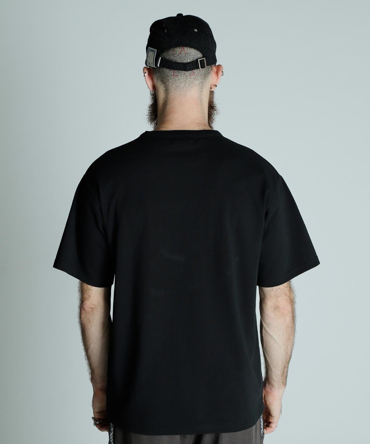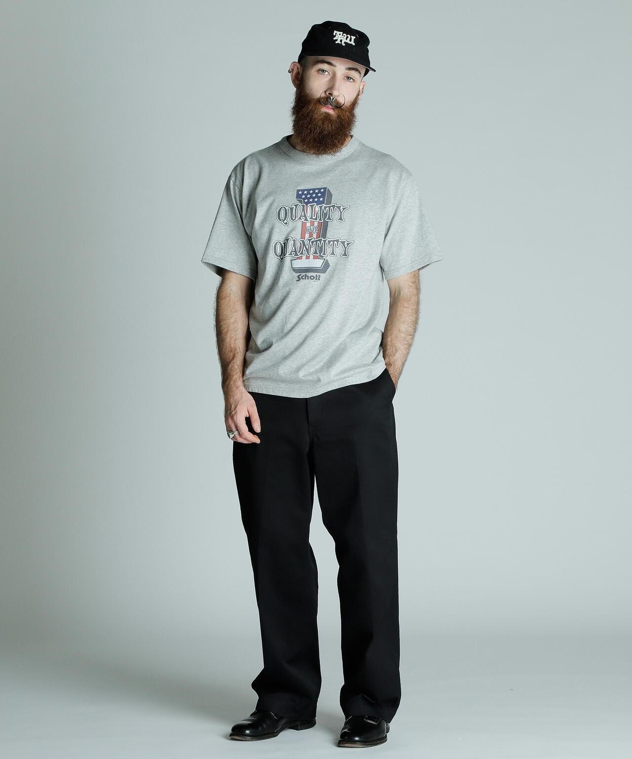 採用堅實厚實的 7 盎司紗體。硬、幹、粗糙的質地,加上只有開口紗才能帶來的蓬鬆、豐滿的手感,給人一種美國品牌的印象。採用捆綁式領口,縫製時將帶狀領口部分包裹在主體上。這樣的規格既能滿足大量使用,又不失厚實的衣身。大膽壓制白色,採用噴墨印花,在不影響衣身顏色的前提下,實現了與衣身顏色自然融合的印花效果。這種技術既能讓設計脫穎而出,又能利用 T 恤的原色。由於沒有留白,印花的顏色與身體的顏色融為一體,使其看起來就像是身體不可分割的一部分。面料:100% 棉 原產地:中國 [Scho