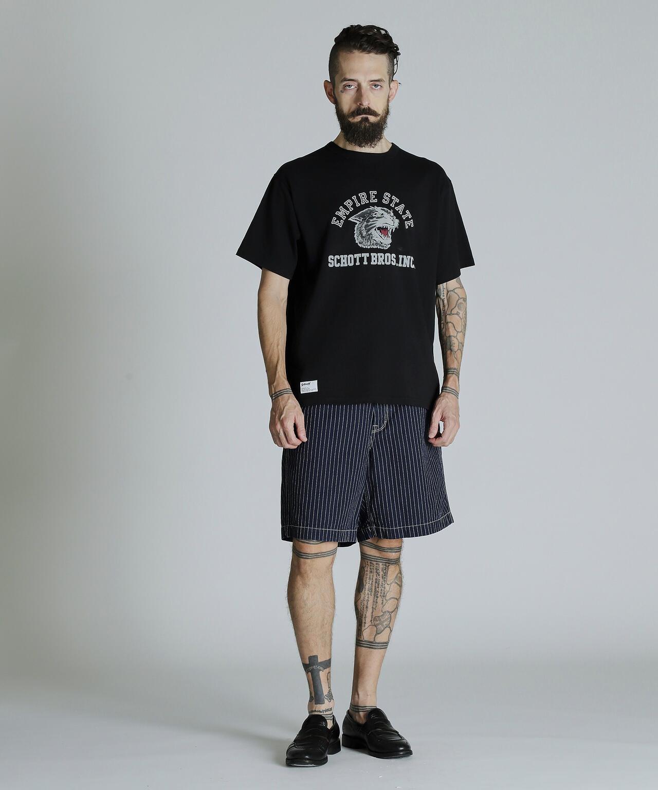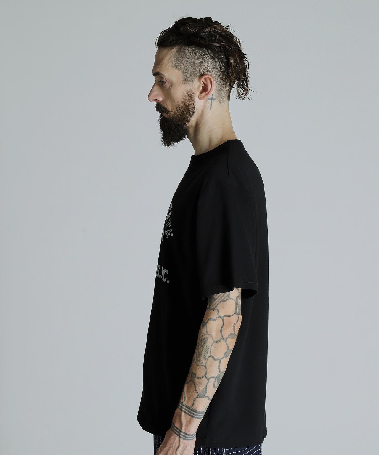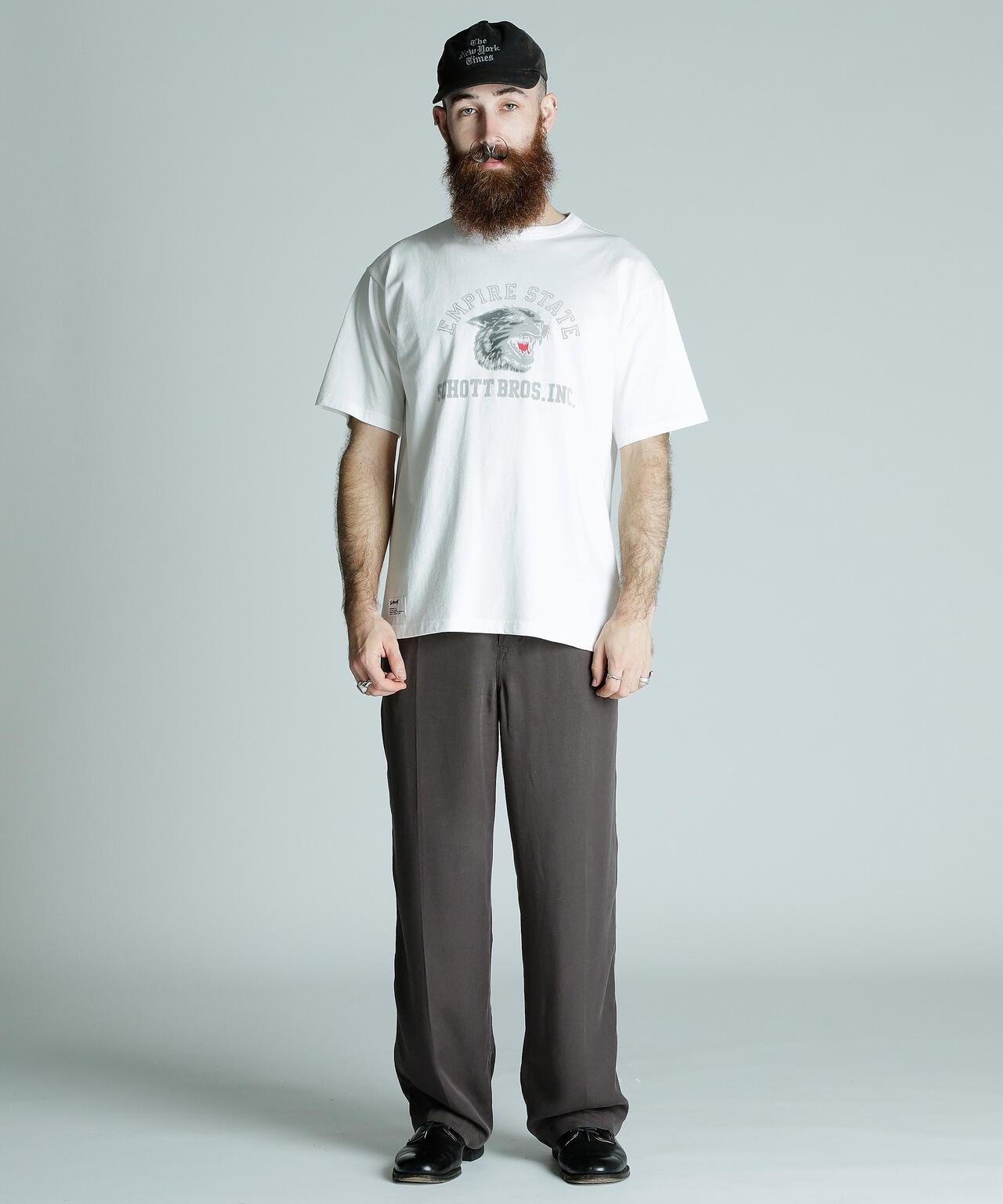 採用堅實厚實的 7 盎司紗體。硬、幹、粗糙的質地,加上只有開口紗才能帶來的蓬鬆、豐滿的手感,給人一種美國品牌的印象。採用捆綁式領口,縫製時將帶狀領口部分包裹在主體上。這樣的規格既能滿足大量使用,又不失厚實的衣身。植絨印花是經典的印花技術之一,但植絨噴繪印花是一種更先進、更奢華的技術。在這種技術中,氣刷印花被用來為難以印製多種顏色的植絨印花添加色彩,工匠們煞費苦心地為每件作品添加色彩。👍終,一件👍、類似復古 T 恤的產品就完成了。材質